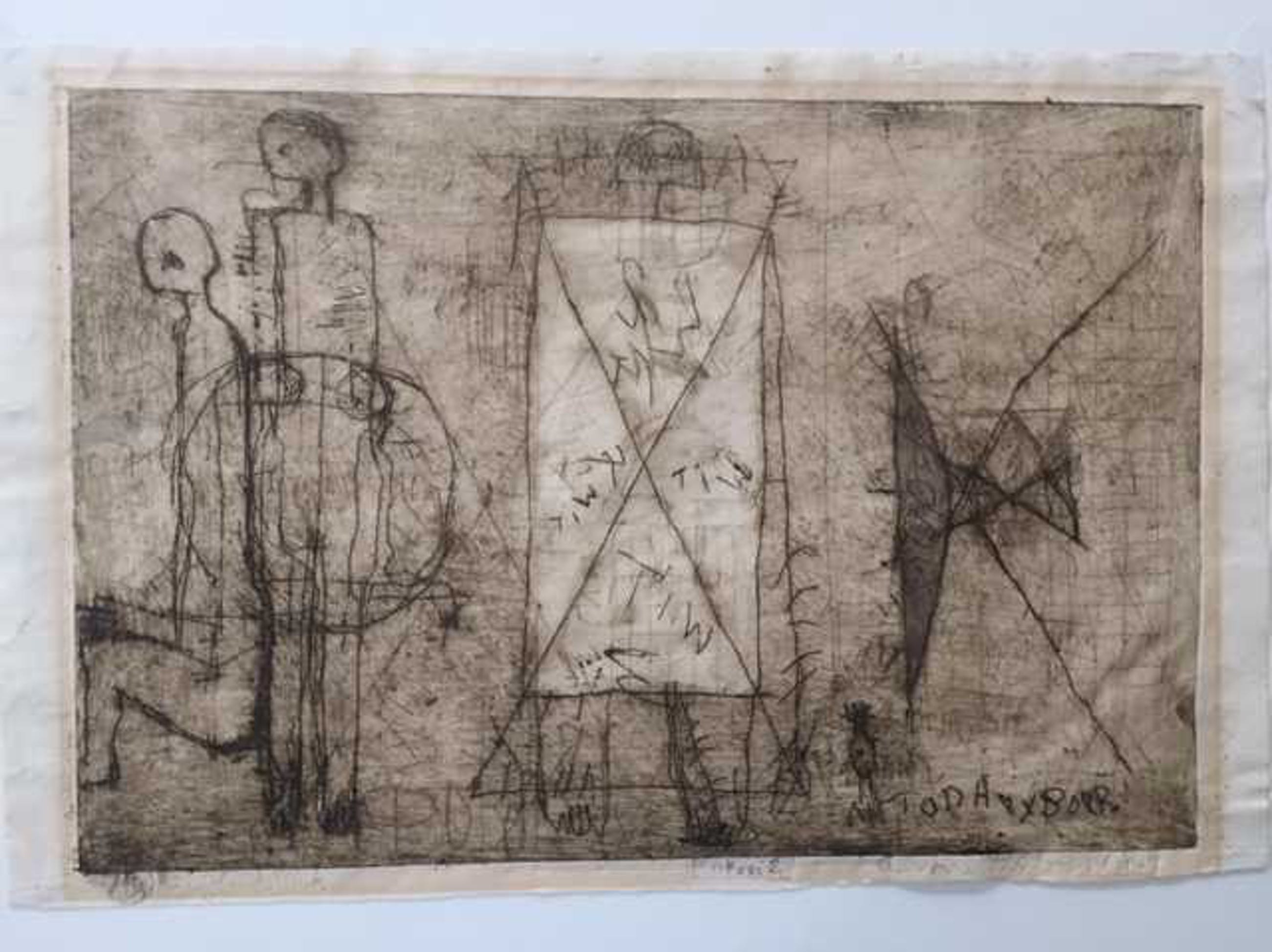 De titel kan niet worden ontcijferd. Schitterende persoonlijke afdruk van de ets.