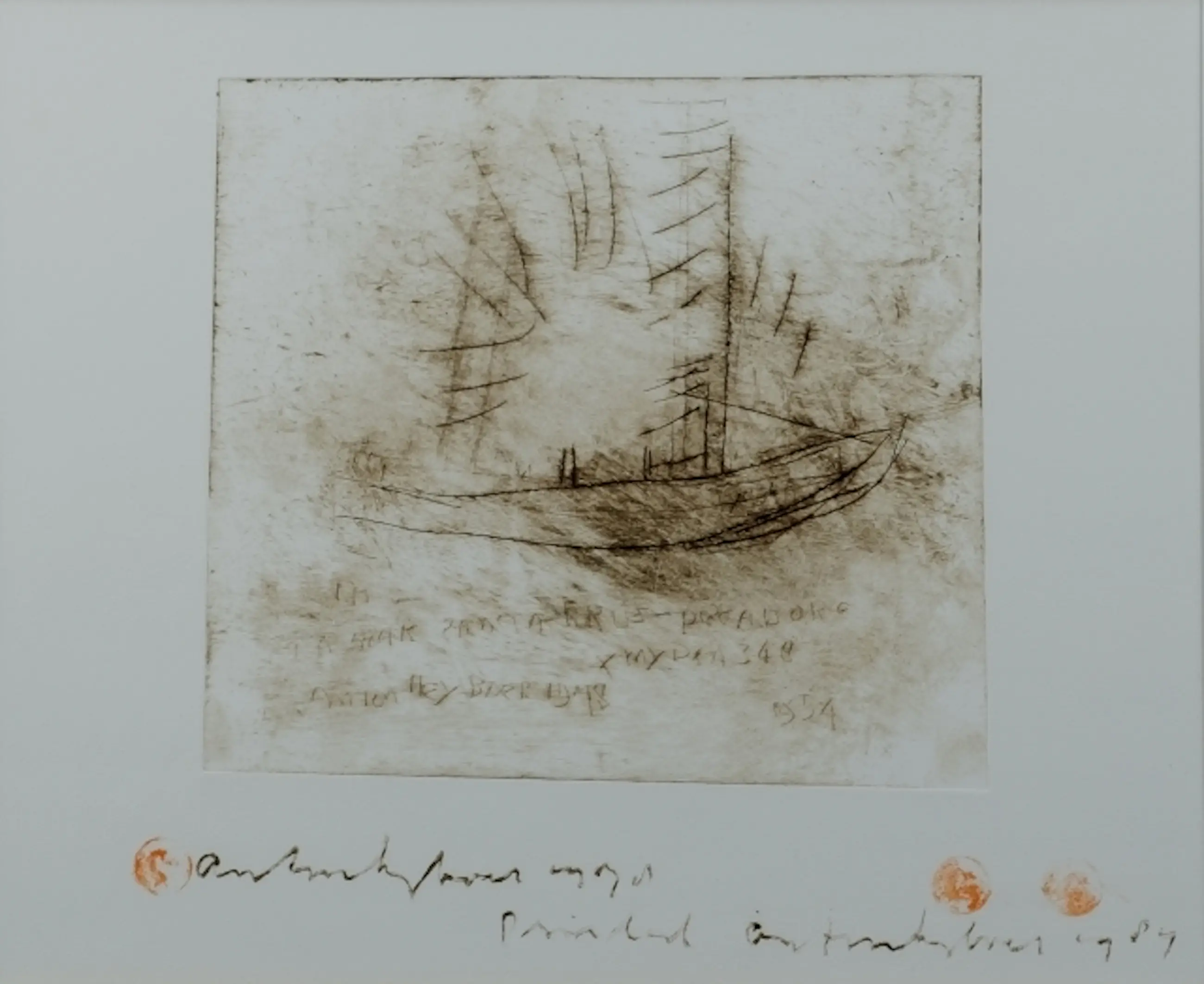 Ingelijste ets van Anton Heyboer. Voorstelling van een boot. Jaar: 1984. Afmetingen incl lijst: H61.5 x b65cm. Afmetingen voorstelling: H41 x b50cm. Het werk is onderaan gesigneerd door de kunstenaar. De authenticiteit van het aangeboden werk wordt volledig gegarandeerd. Een certificaat van echtheid kan, op aanvraag, worden gemaild.