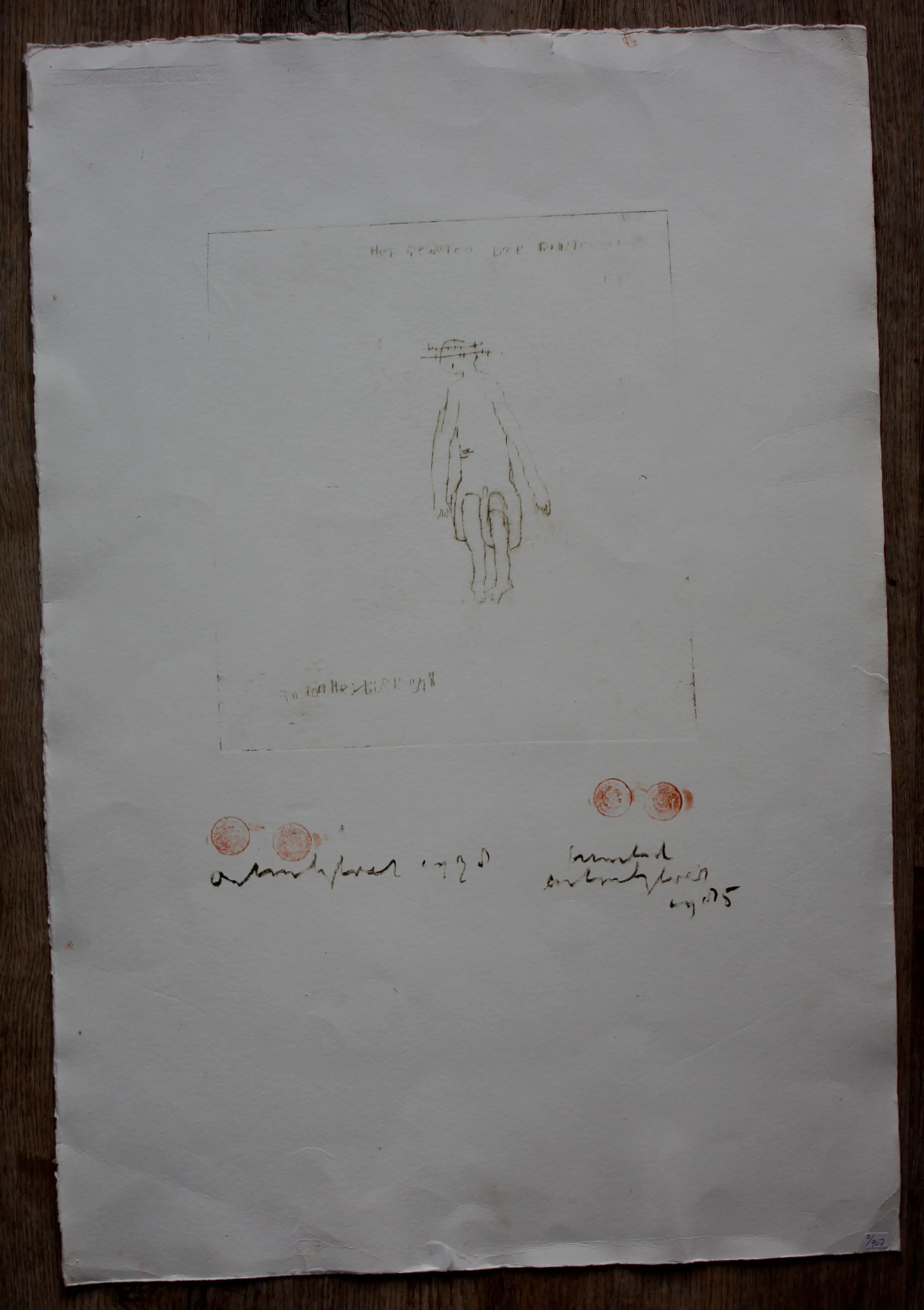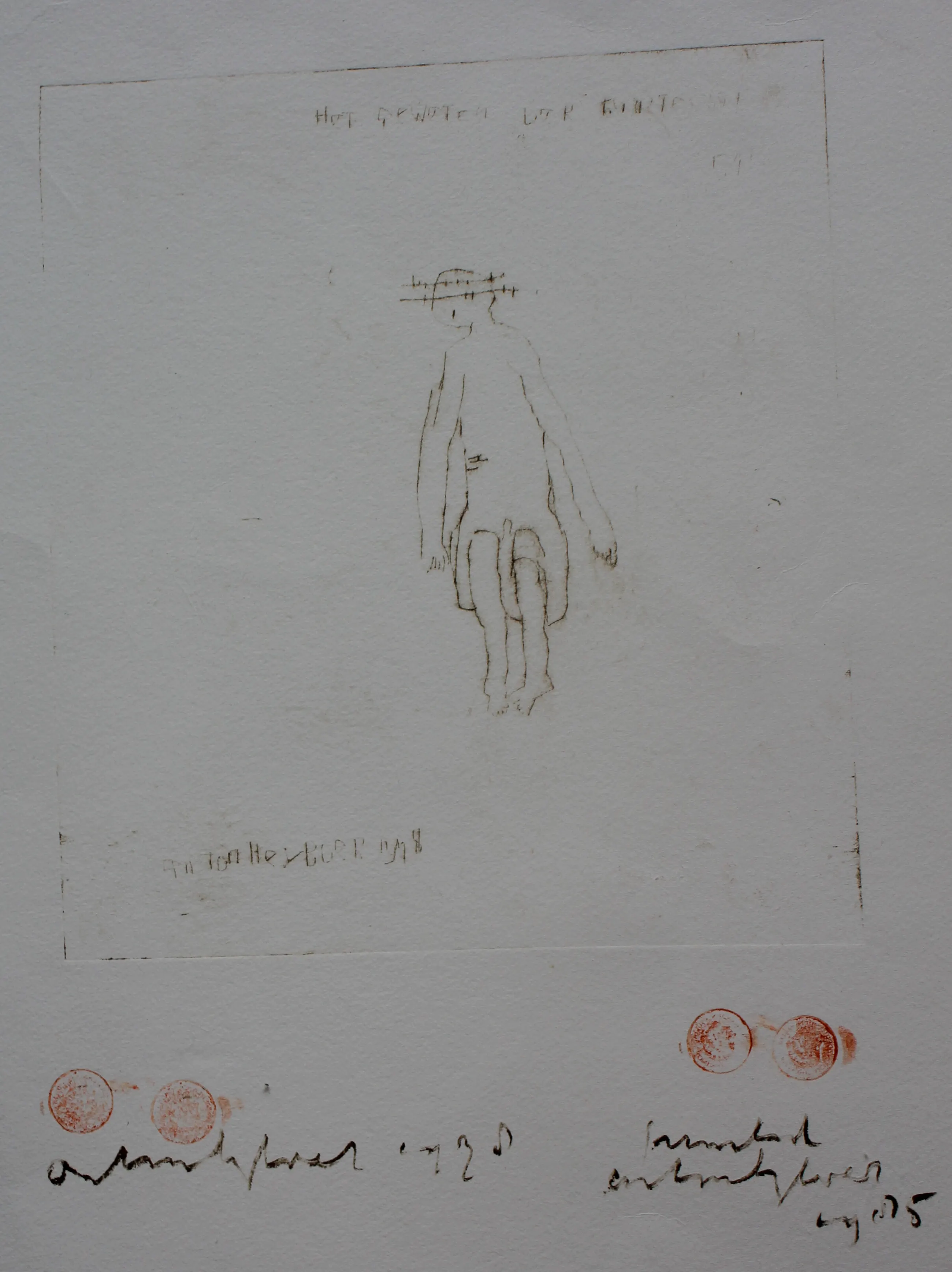 Ets van Anton Heyboer. Titel: 'Geweten'. Afmetingen blad: H78 x b53cm. Afmetingen voorstelling: H33 x b30cm. Het werk is onderaan gesigneerd door de kunstenaar. De authenticiteit van het, aangeboden, werk wordt volledig gegarandeerd. Een certificaat van echtheid kan, op aanvraag, worden gemaild.