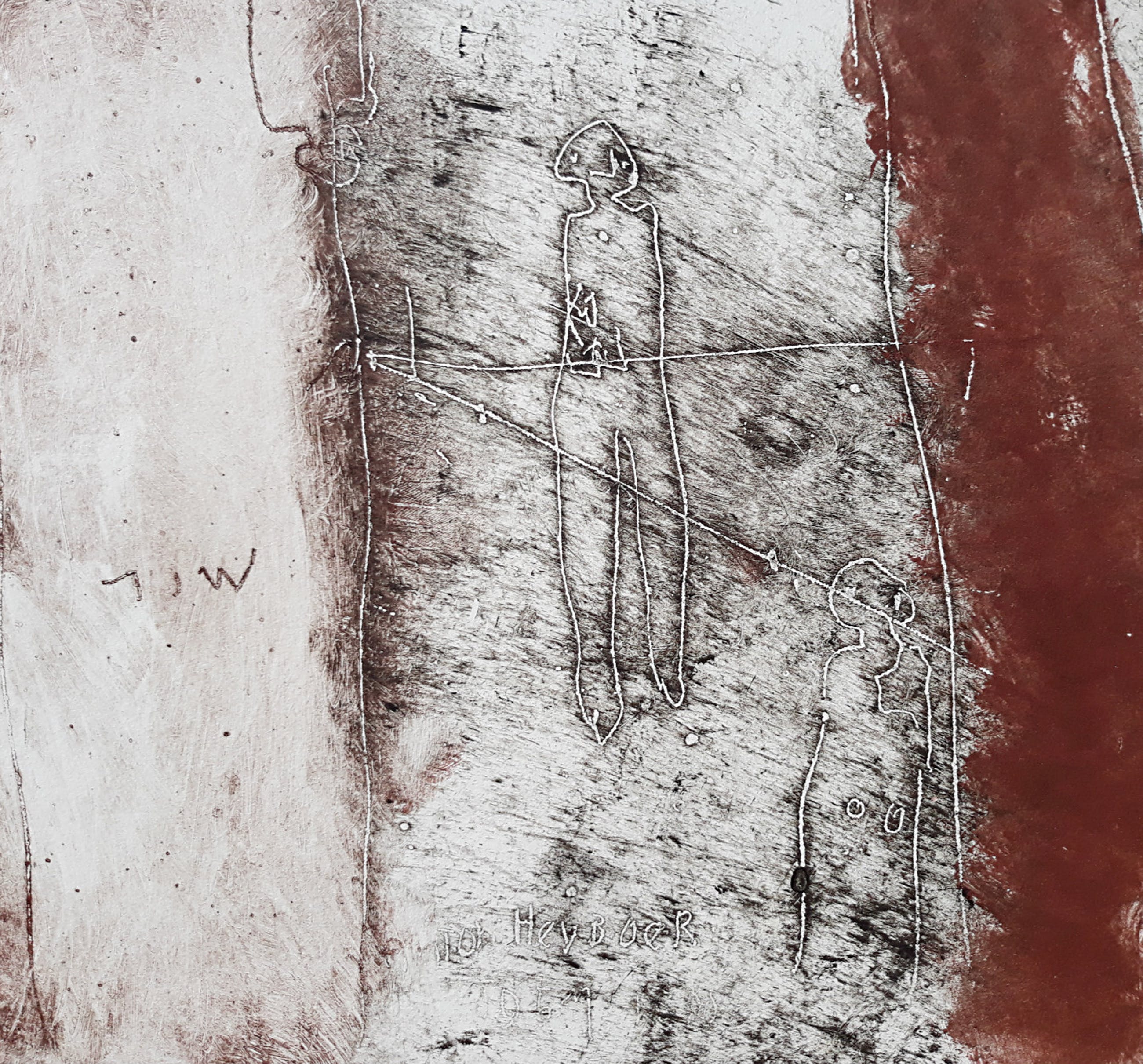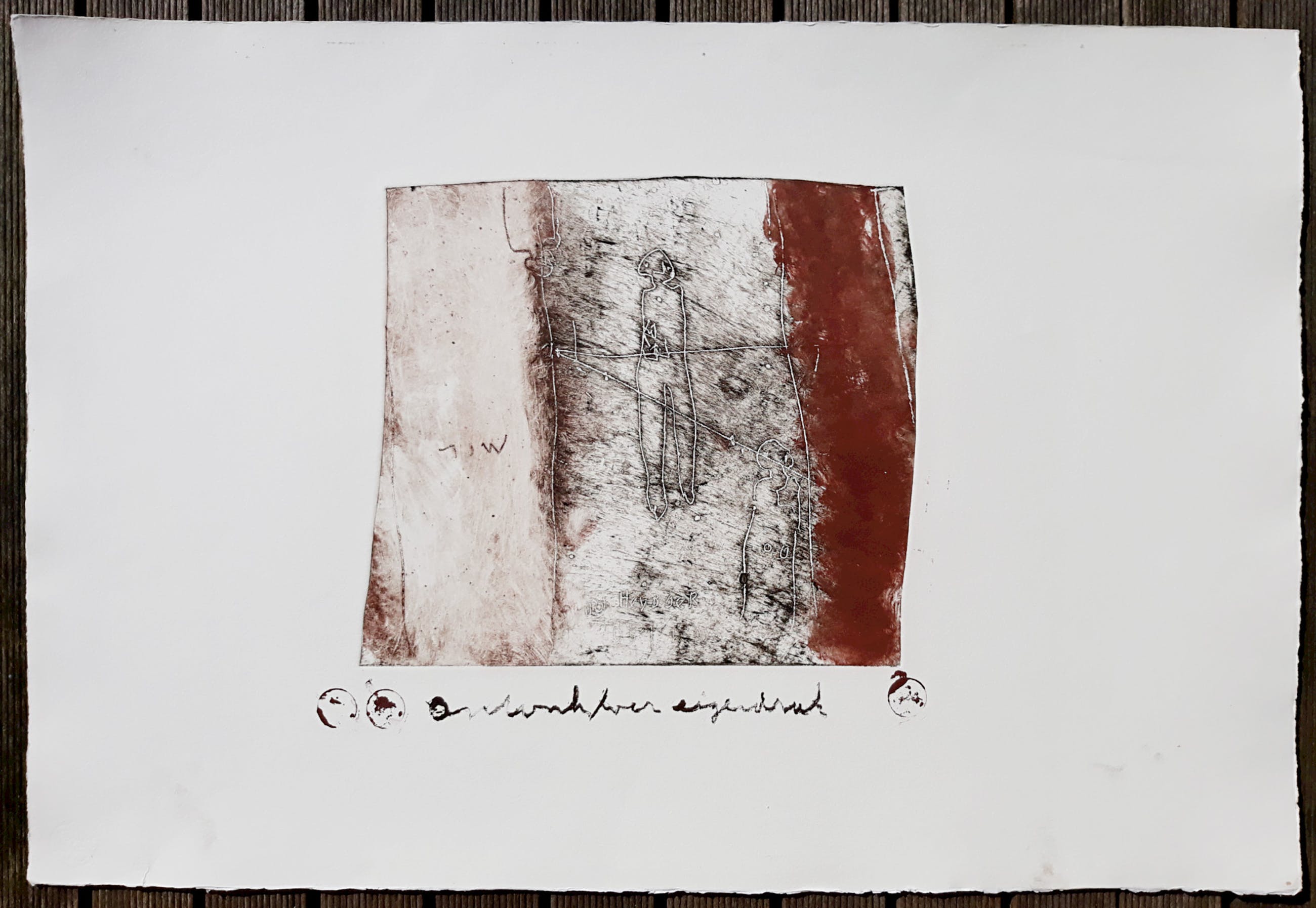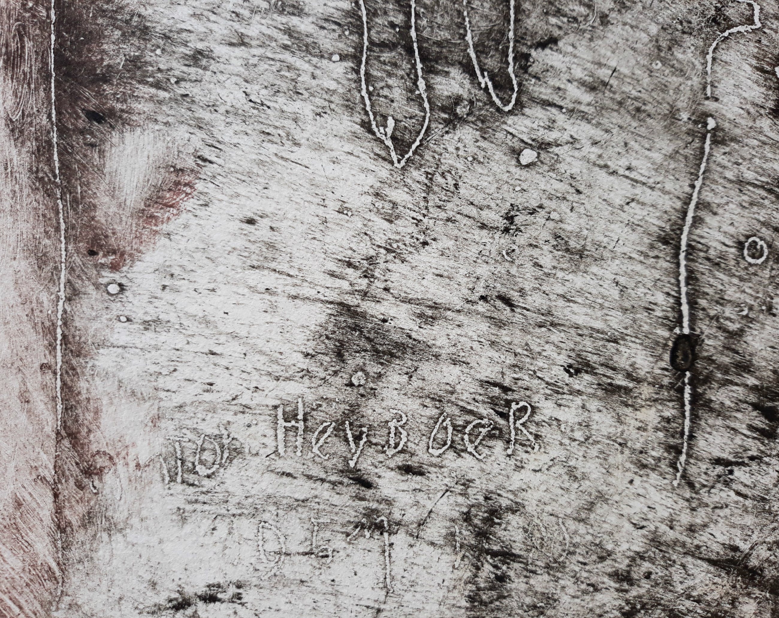Karakteristiek werk van Anton Heyboer. Ets gedrukt met inkt en rode menie op geschept papier, handgesigneerd en met guldenstempels, in de plaat gedateerd (onduidelijk) en nogmaals gesigneerd. In zeer goede conditie. Herkomst: de nalatenschap van Jaap Buitenhuis, één van de beste vrienden van Anton Heyboer.