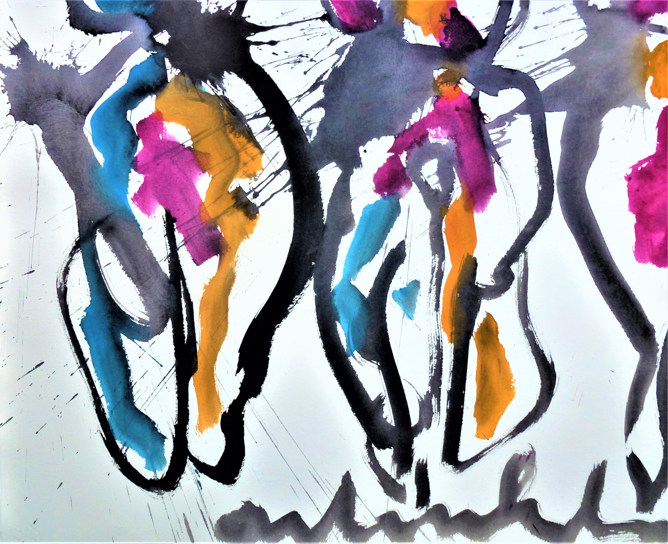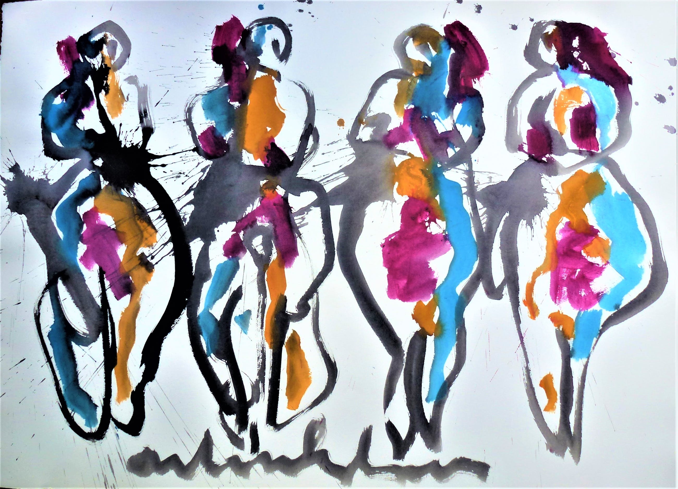 Geschilderd door Anton Heyboer in 1988 met acrylverf en oostindische inkt op op Hahnemühle papier . Afmetingen : 78 cm x 108 cm . Voorstelling : 4 vrouwen . krachtige kleurige sierlijke schildering. Conditie : Zo goed als nieuw . Herkomst : Gekocht in 1988 van Anton Heyboer .