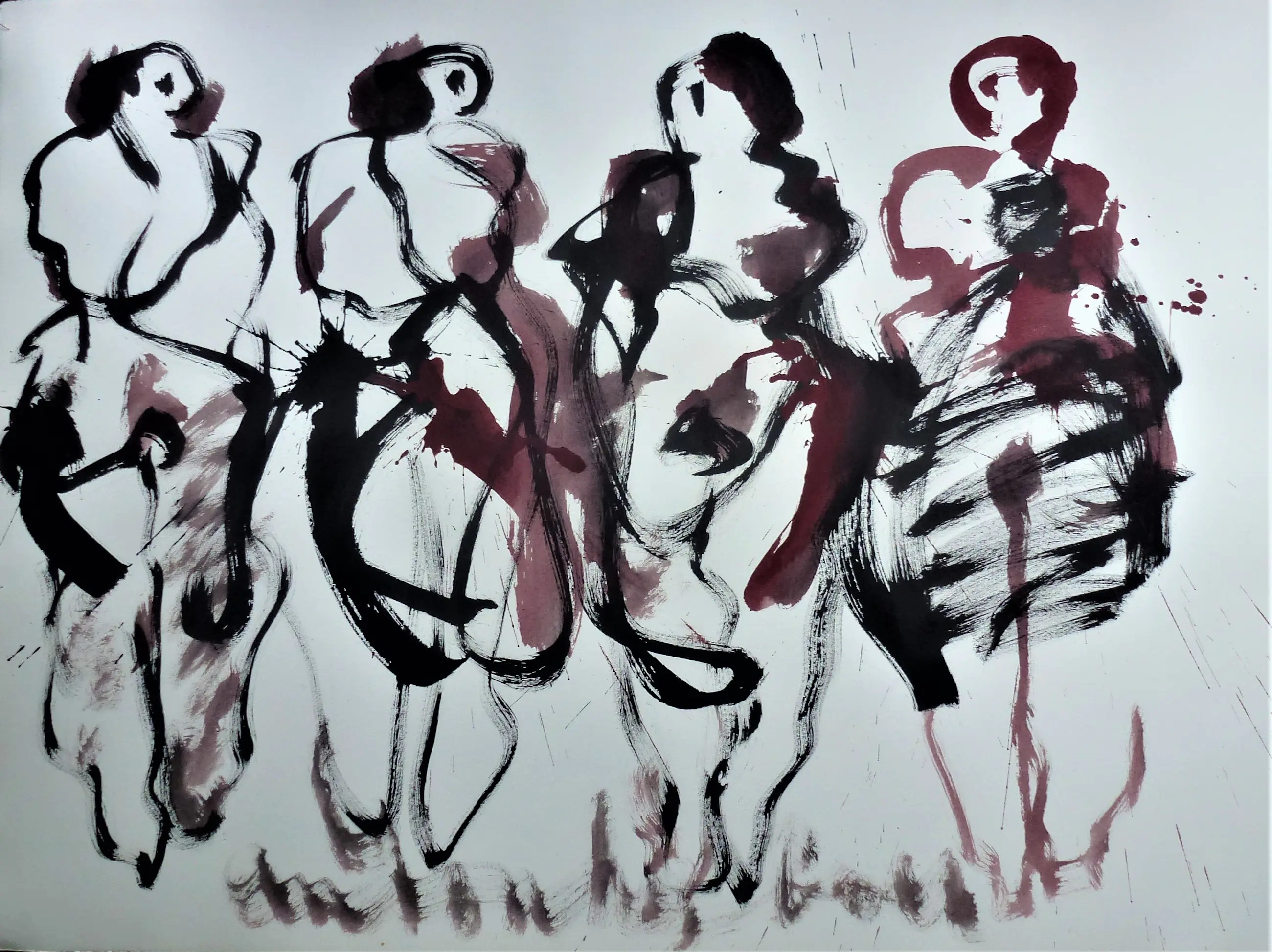 Geschilderd door Anton Heyboer in 1988 met acrylverf en oostindische inkt op op Hahnemühle papier . Afmetingen : 78 cm x 108 cm . Voorstelling : 4 vrouwen . Krachtige sierlijke schildering. prettig om naar te kijken . Conditie : Zo goed als nieuw . Herkomst : Gekocht in 1988 van Anton Heyboer .
