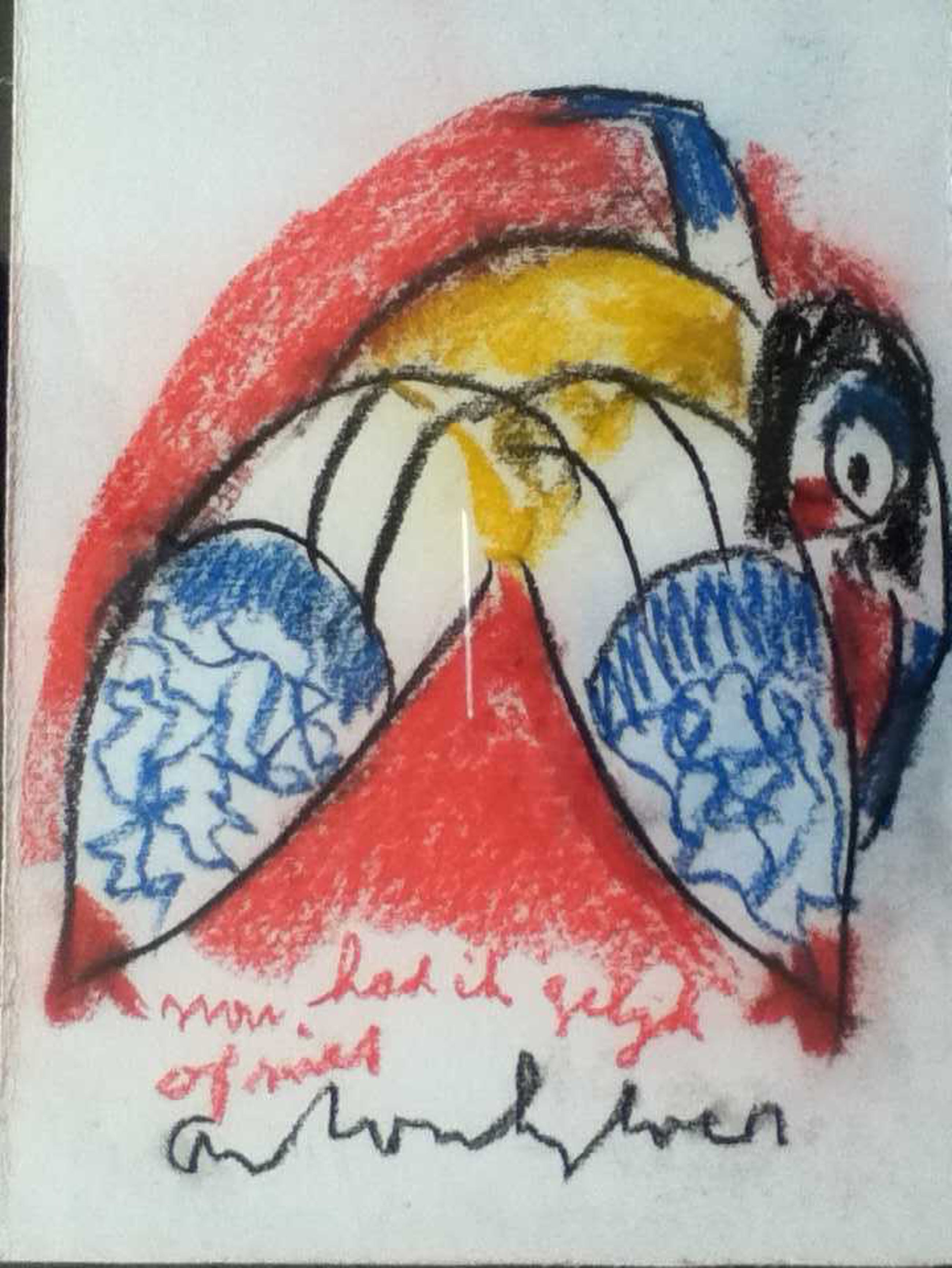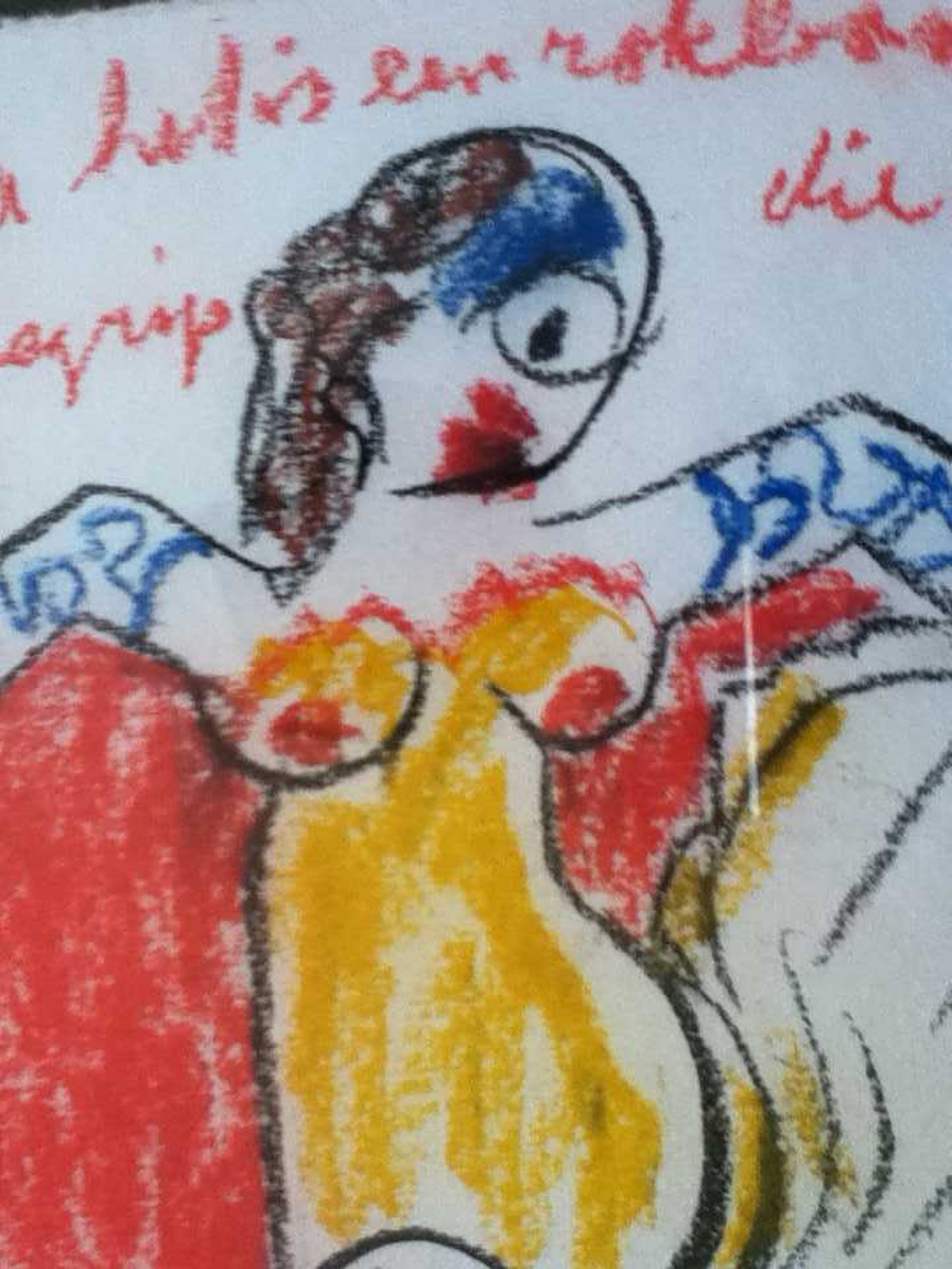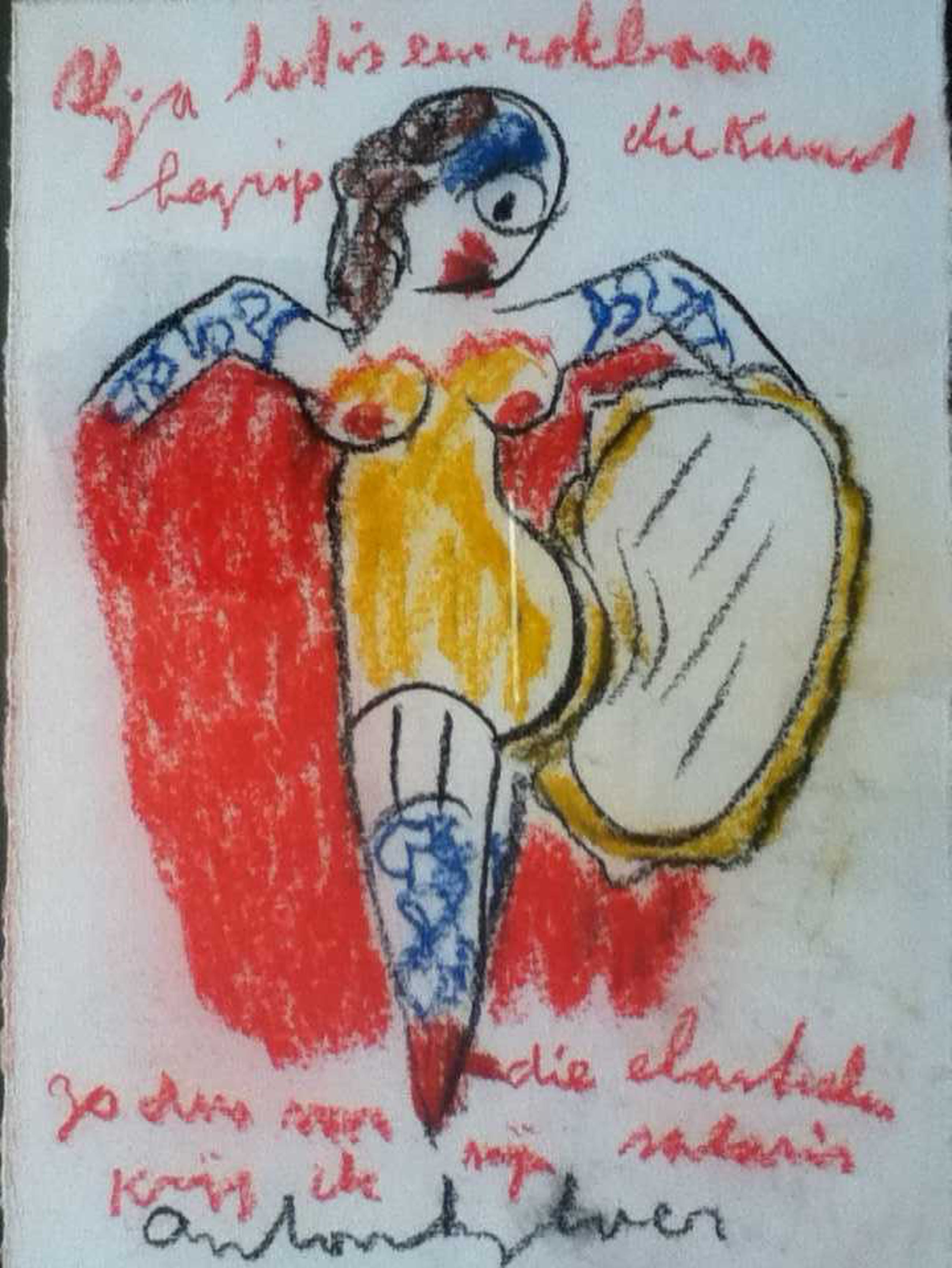 2 Prachtige gekleurde tekeningen van deze bekende artiest. De plexi-omlijsting die rond deze twee kunstwerken zit en waarmee u deze kan ophangen, krijgt u er gratis bij.
