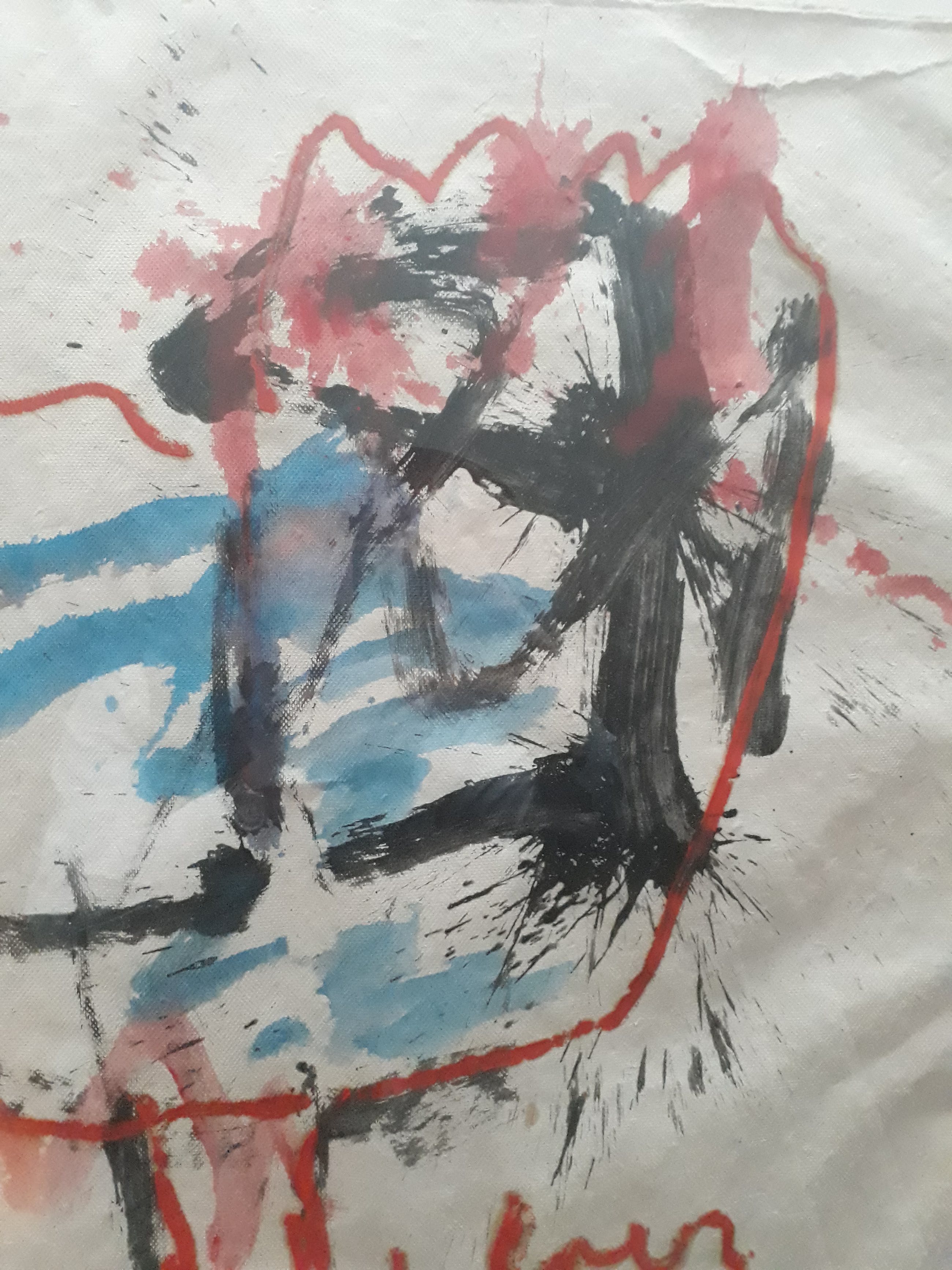 fraaie groot werk van aquarel en olieverf op "zaans bord" van Heyboer zaans bord werd van lompen gemaakt handgesigneerd