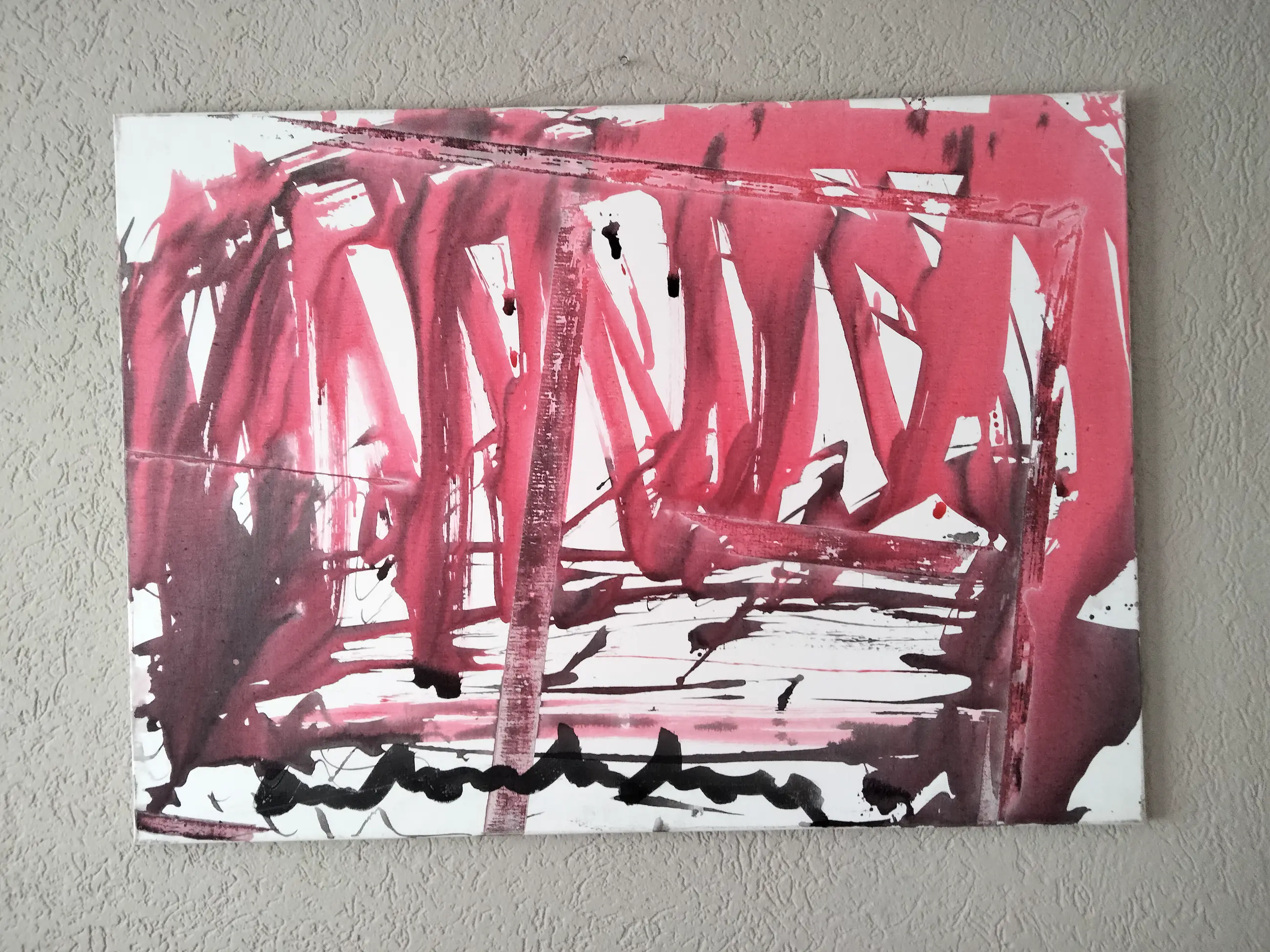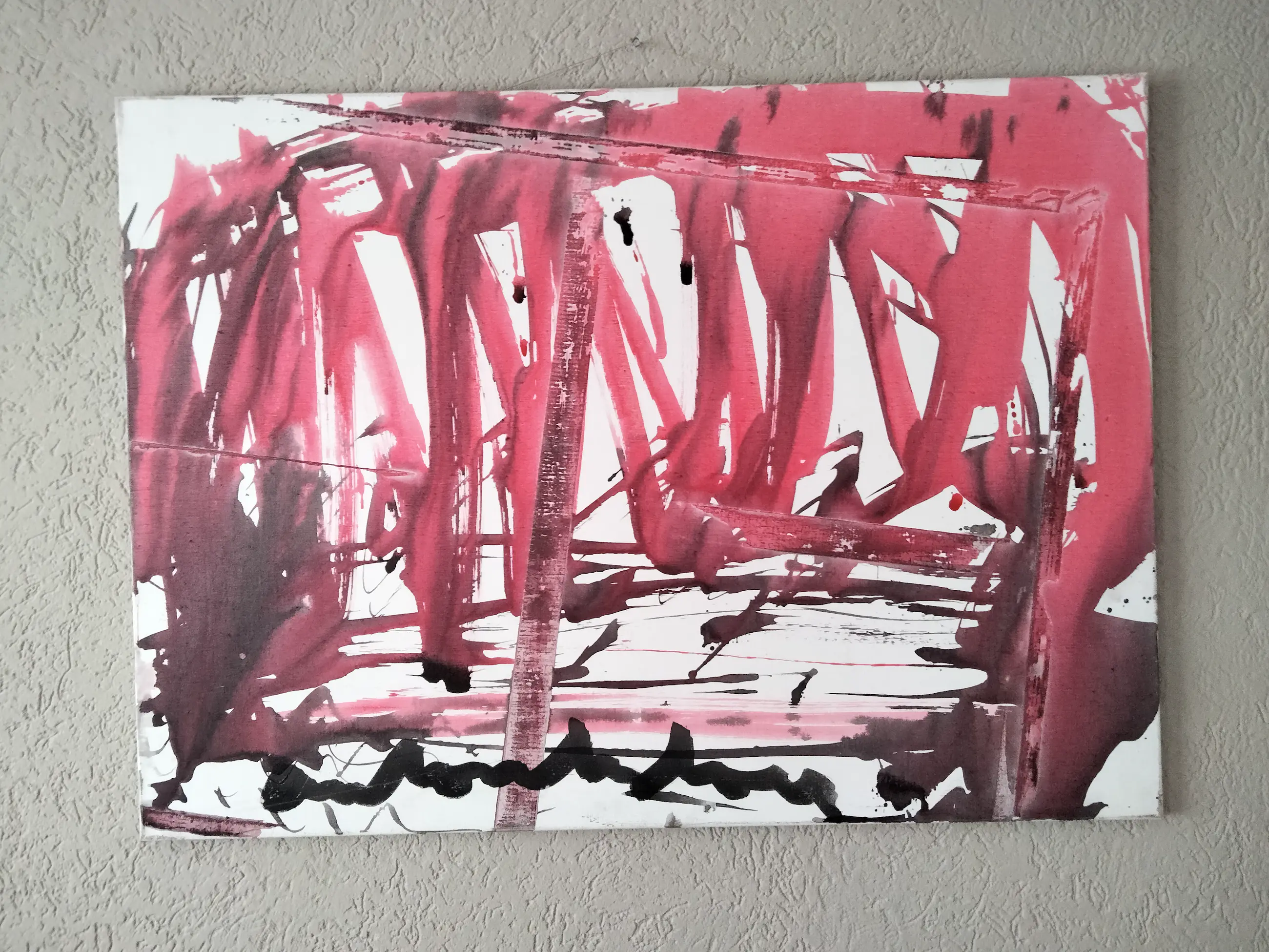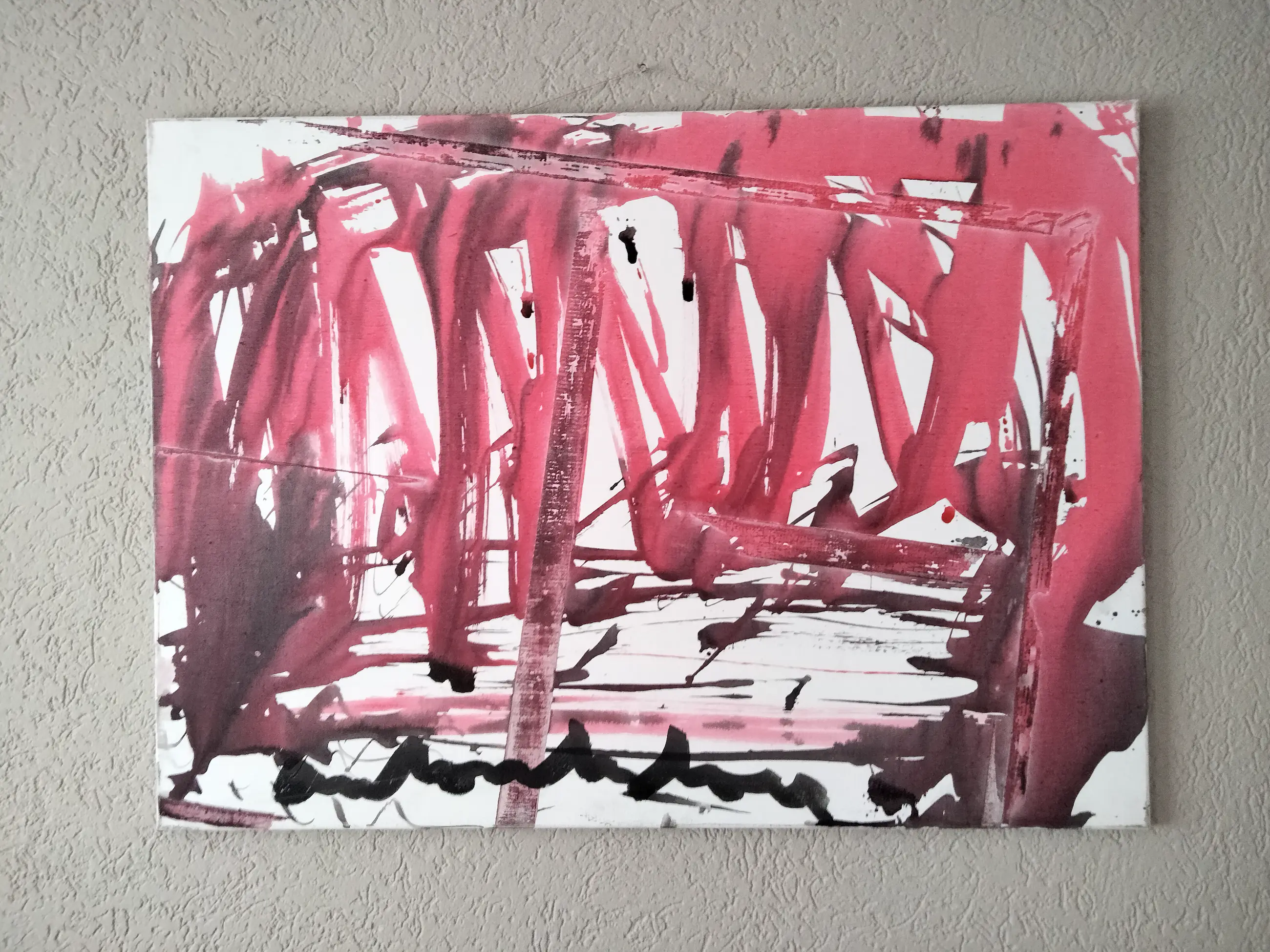 Groot abstract schilderij op canvas doek. Uiteraard gesigneerd door anton heyboer. Het geheel verkeerd in goede staat.