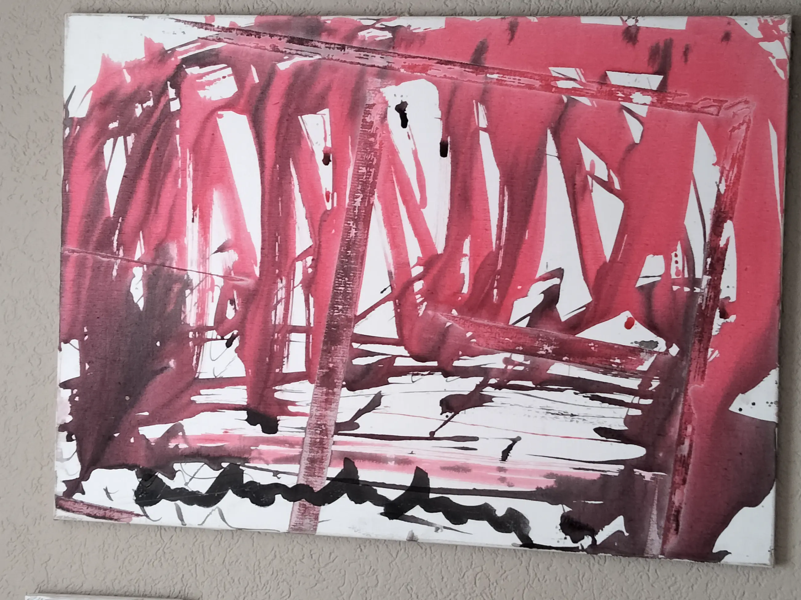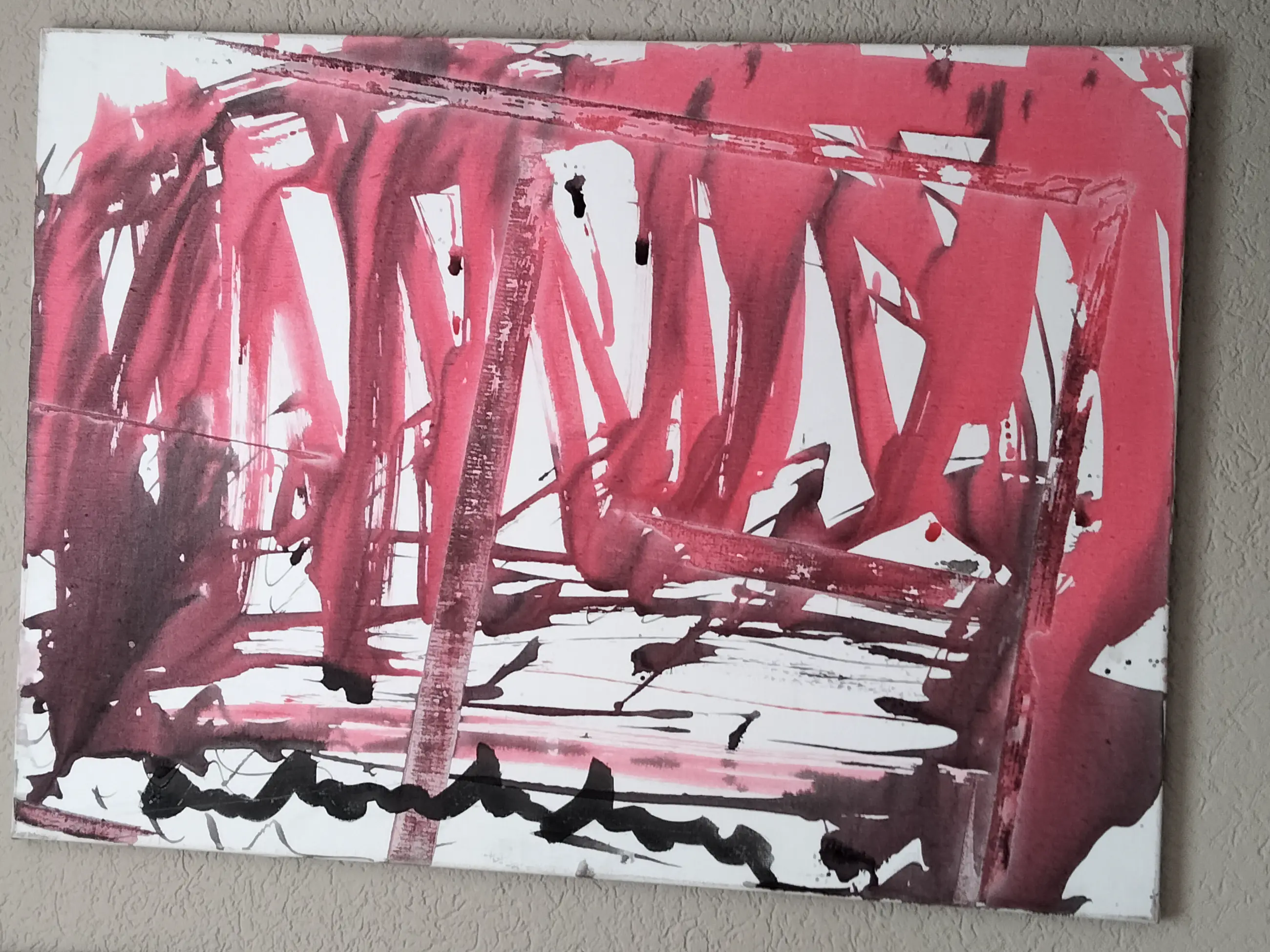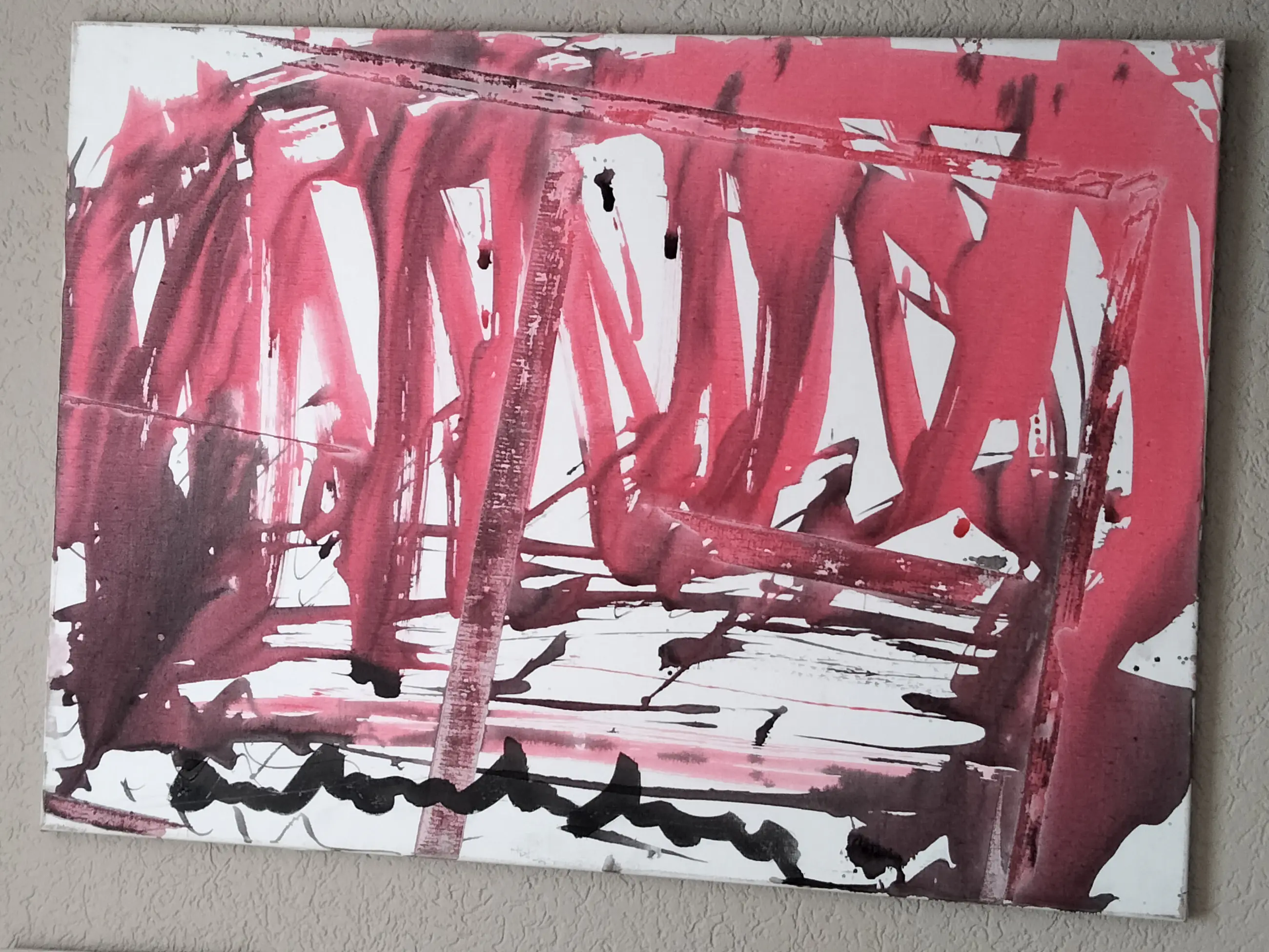 Groot abstract schilderij op canvas doek. Uiteraard gesigneerd door anton heyboer. Het geheel verkeerd in goede staat.