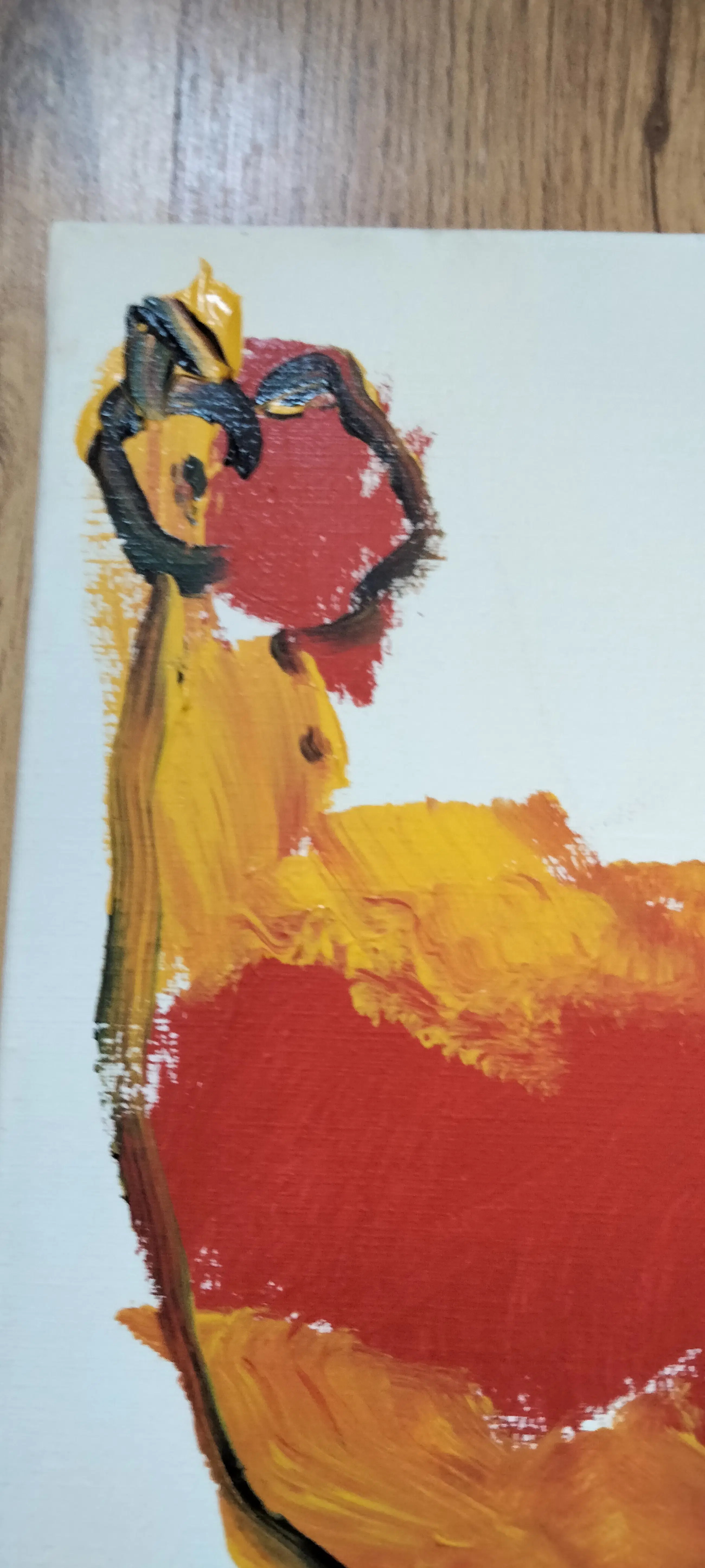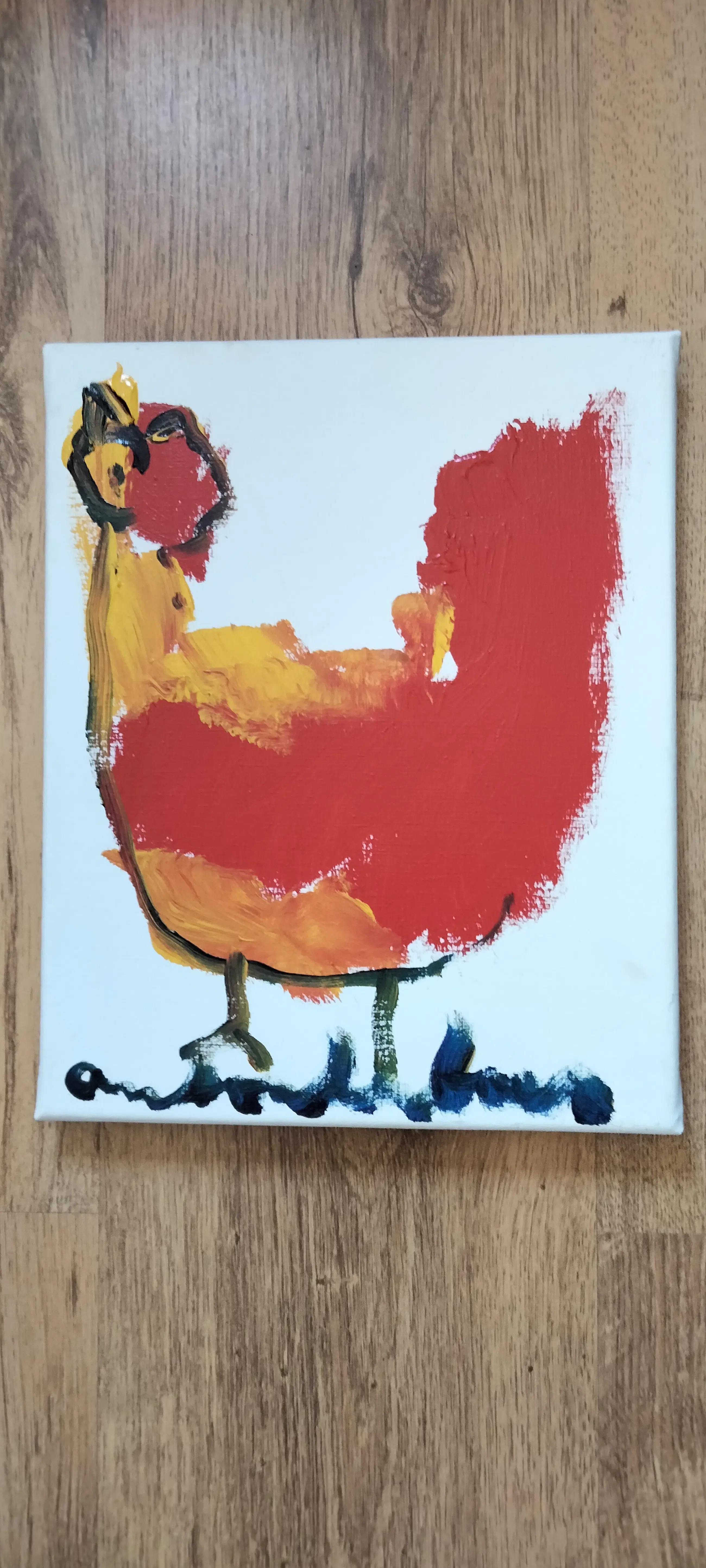 Kleurrijk zeer fraai schilderij van Anton Heyboer voorstellend kip. Origineel olieverf op doek. Netjes en strak opgespannen op een spieraam. Uiteraard handgesigneerd door Heyboer. In nieuwstaat