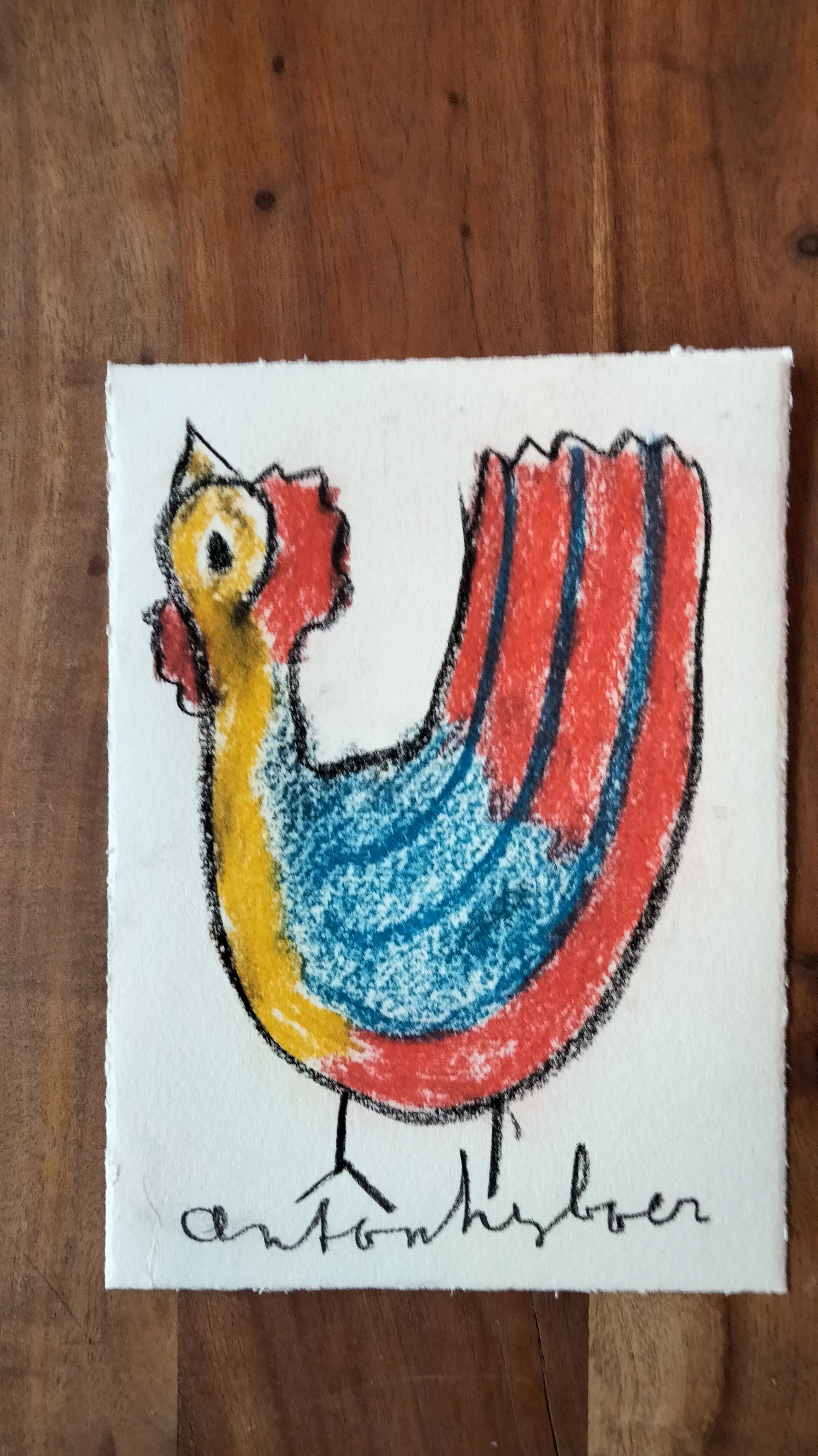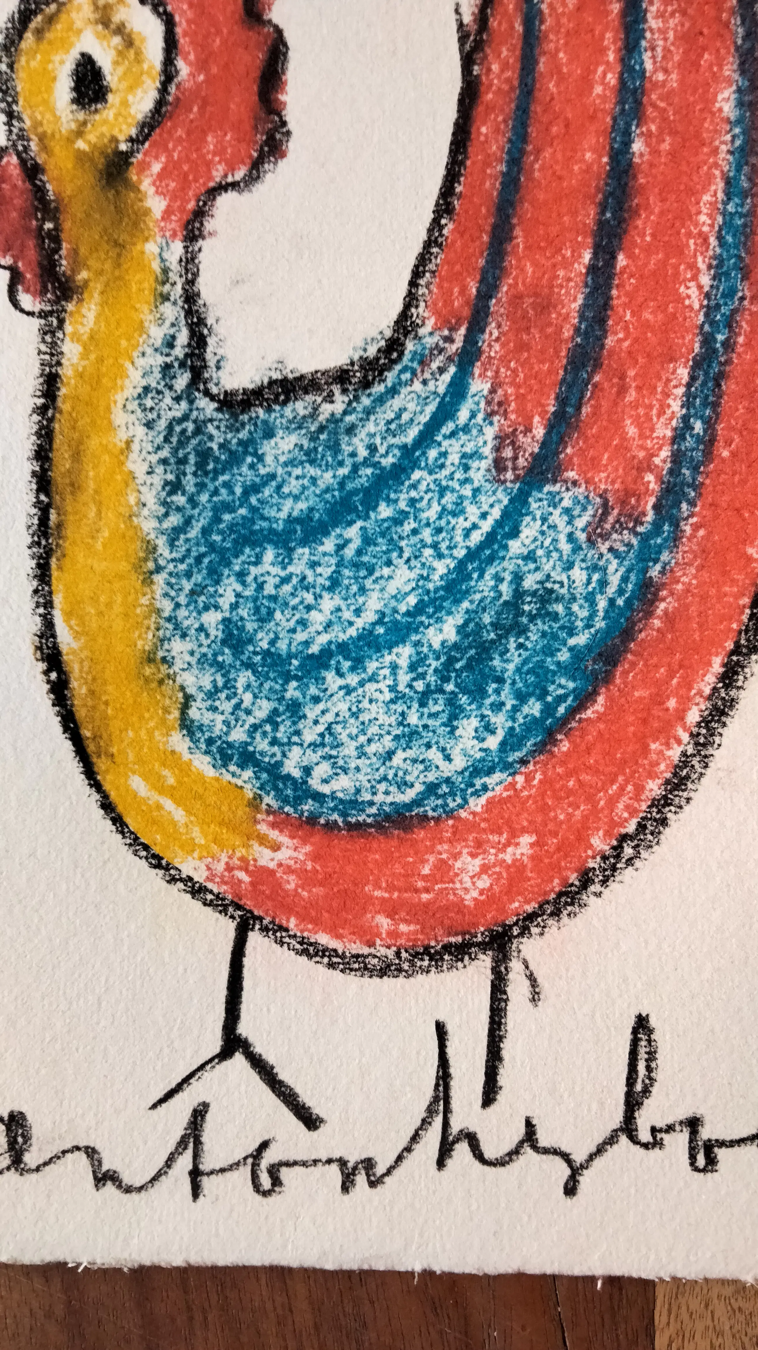 Fraai originele kleurrijke tekening van Anton Heyboer uit de jaren 80. Afkomstig uit Heyboer galerie. Nog nooit ingelijst geweest. Uiteraard handgesigneerd door Heyboer. Het werk is gemaakt met pastel krijt op hahnemule papier. Het werk kan worden afgehaald of worden verzonden. Verzending is gratis.