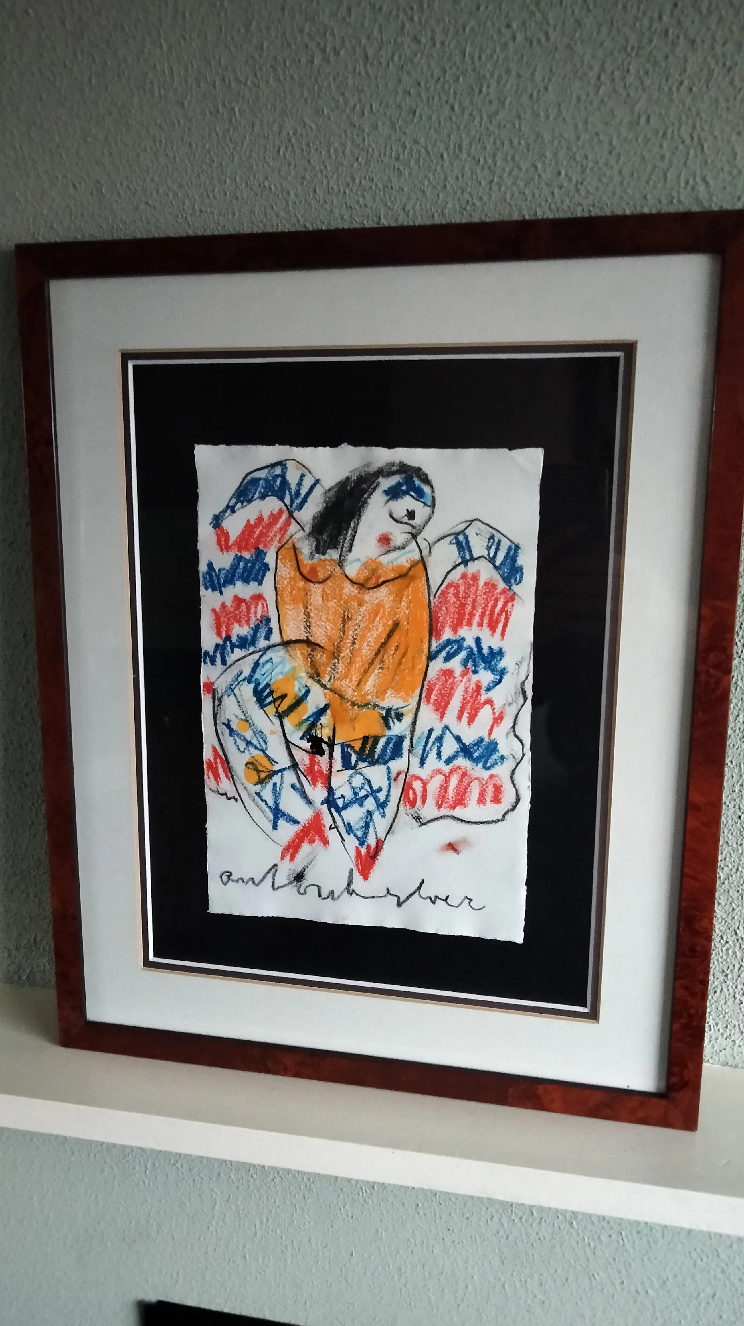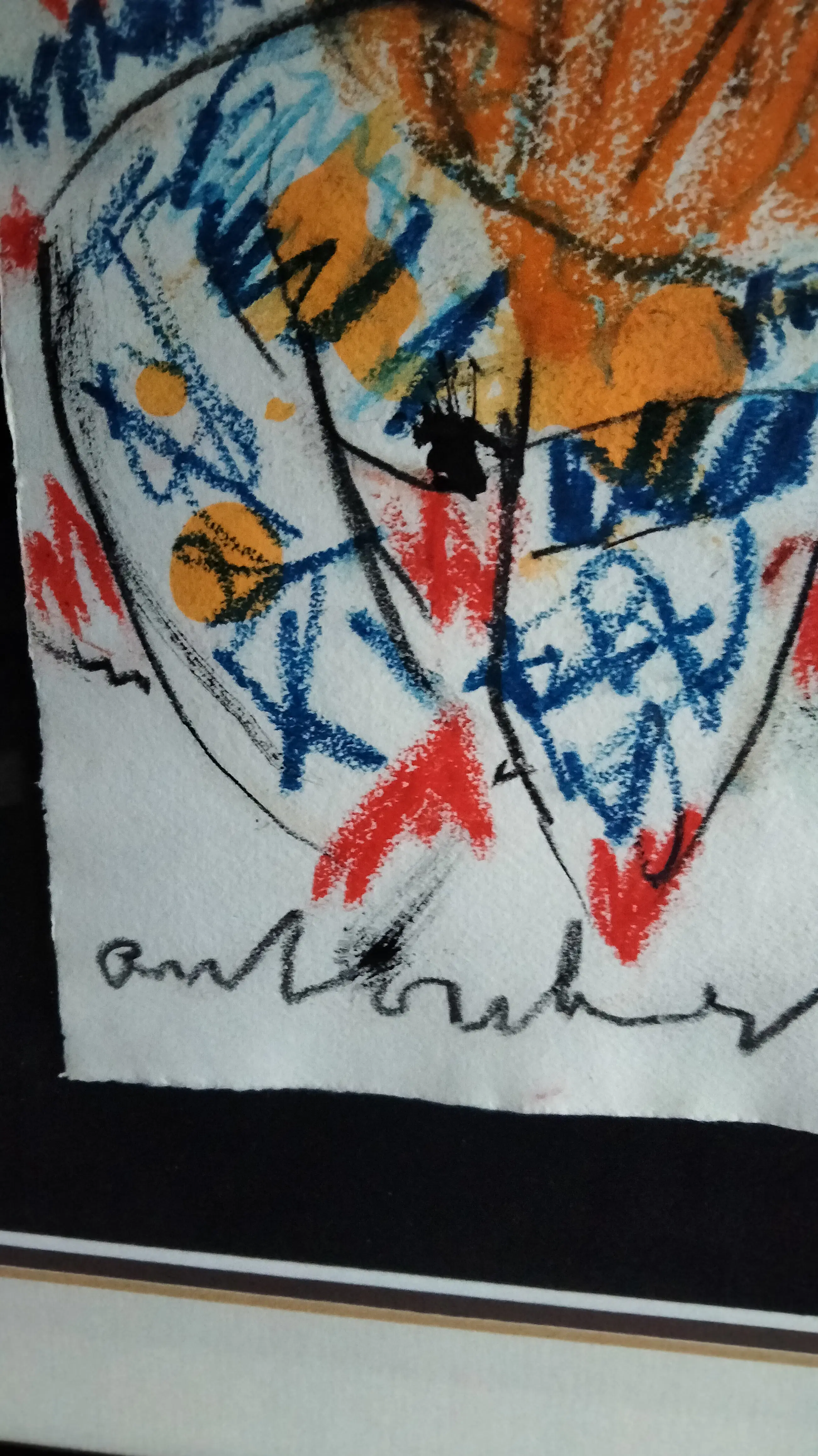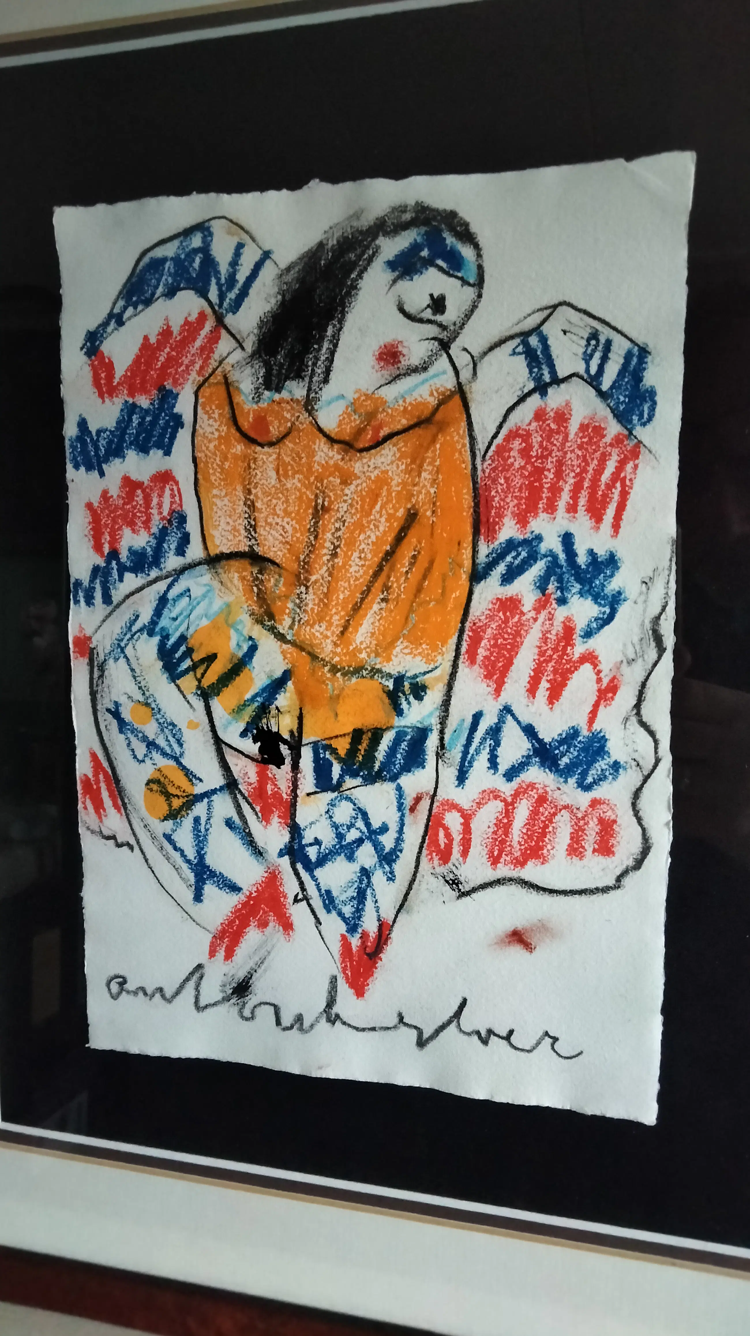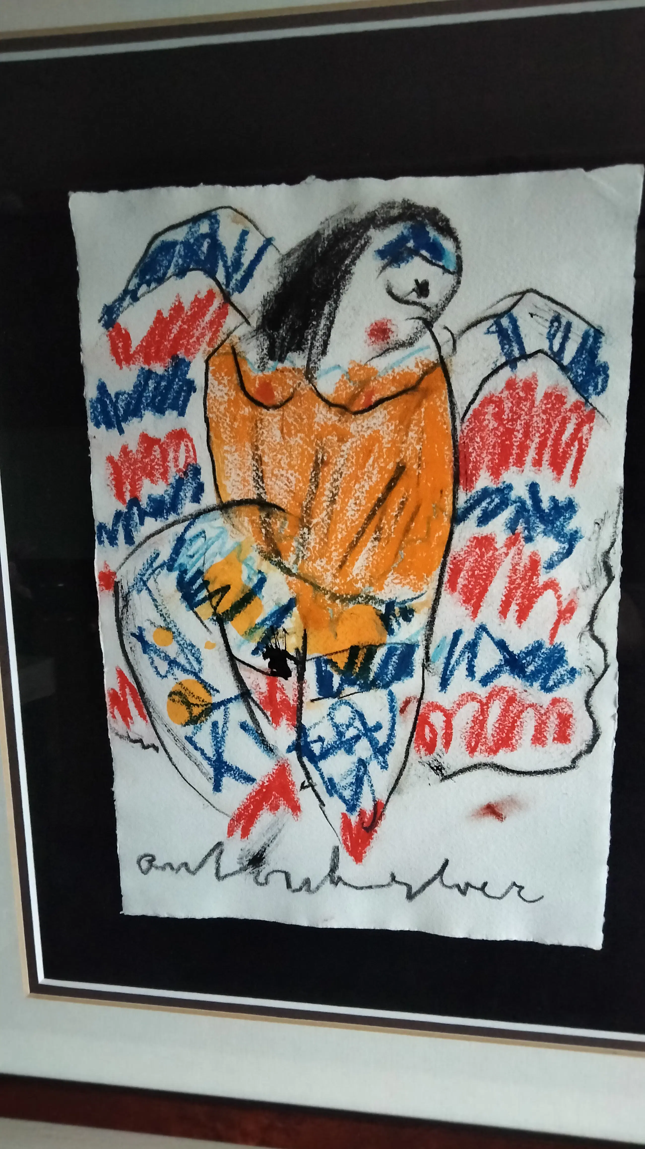 Fraaie kleurrijke pastel krijt tekening van Anton Heyboer op hahnemule papier. Uit de jaren 80 zg can- can danseres.