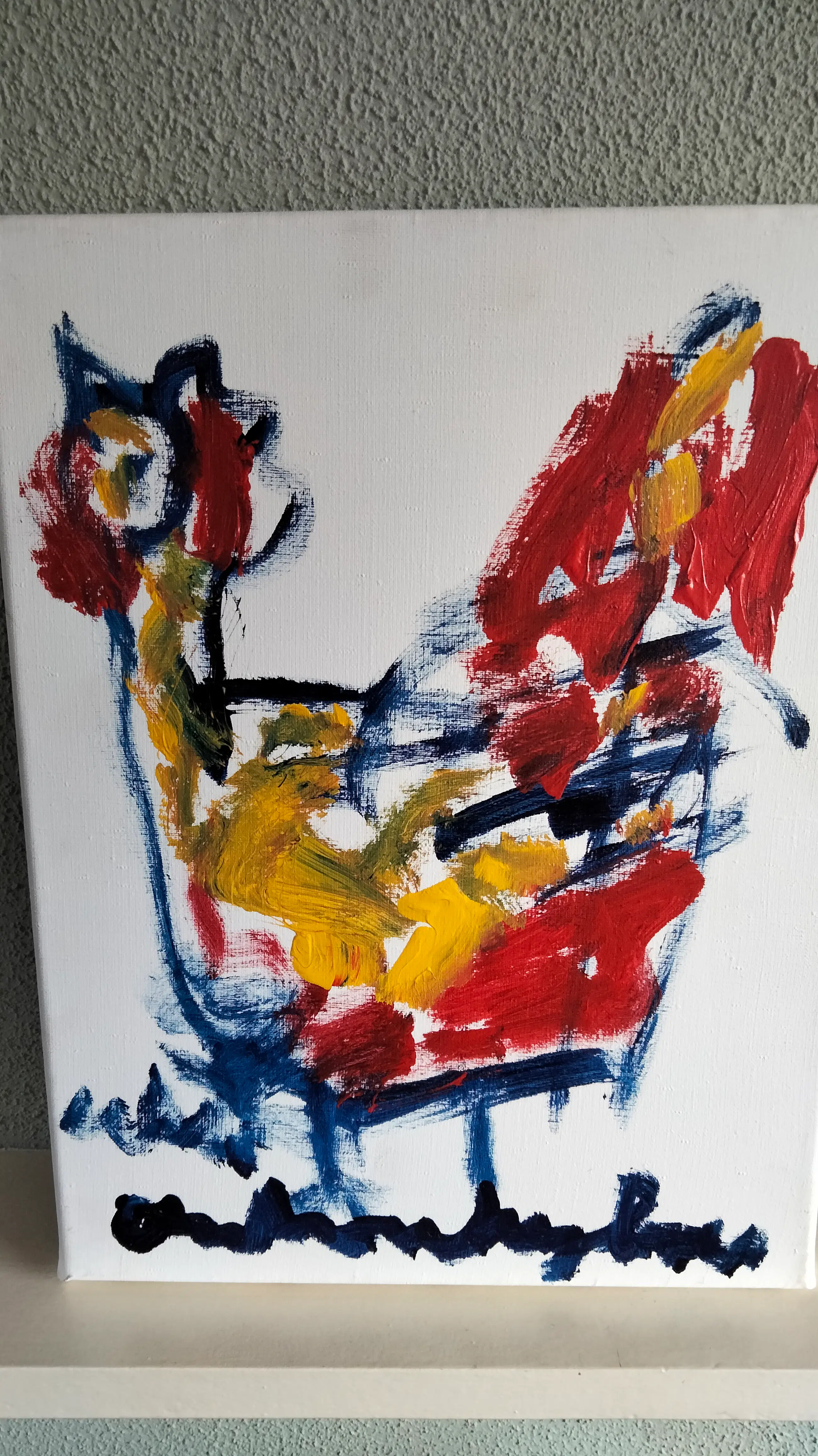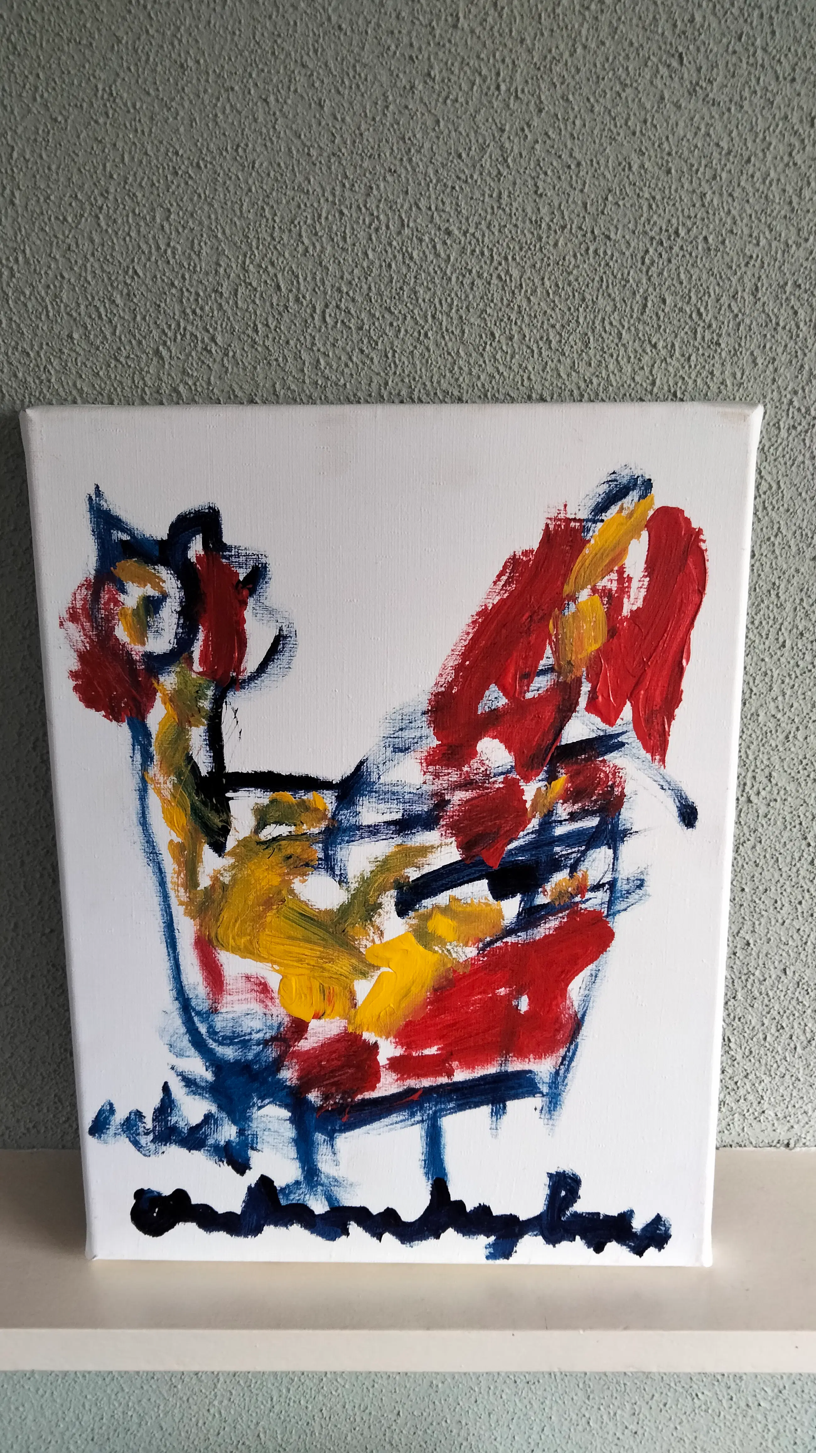 fraai schilderij van Anton Heyboer uit de jaren 80. Gemaakt met olieverf op doek. Uiteraard handgesigneerd door Heyboer.met daarbij het woord..echt...erbij geschilderd Netjes opgespannen op spieraam. Zeer fraai en kleurrijk geheel.uniek. Wordt gratis verzonden. In nieuwstaat, afkomstig van Anton Heyboer galerie.