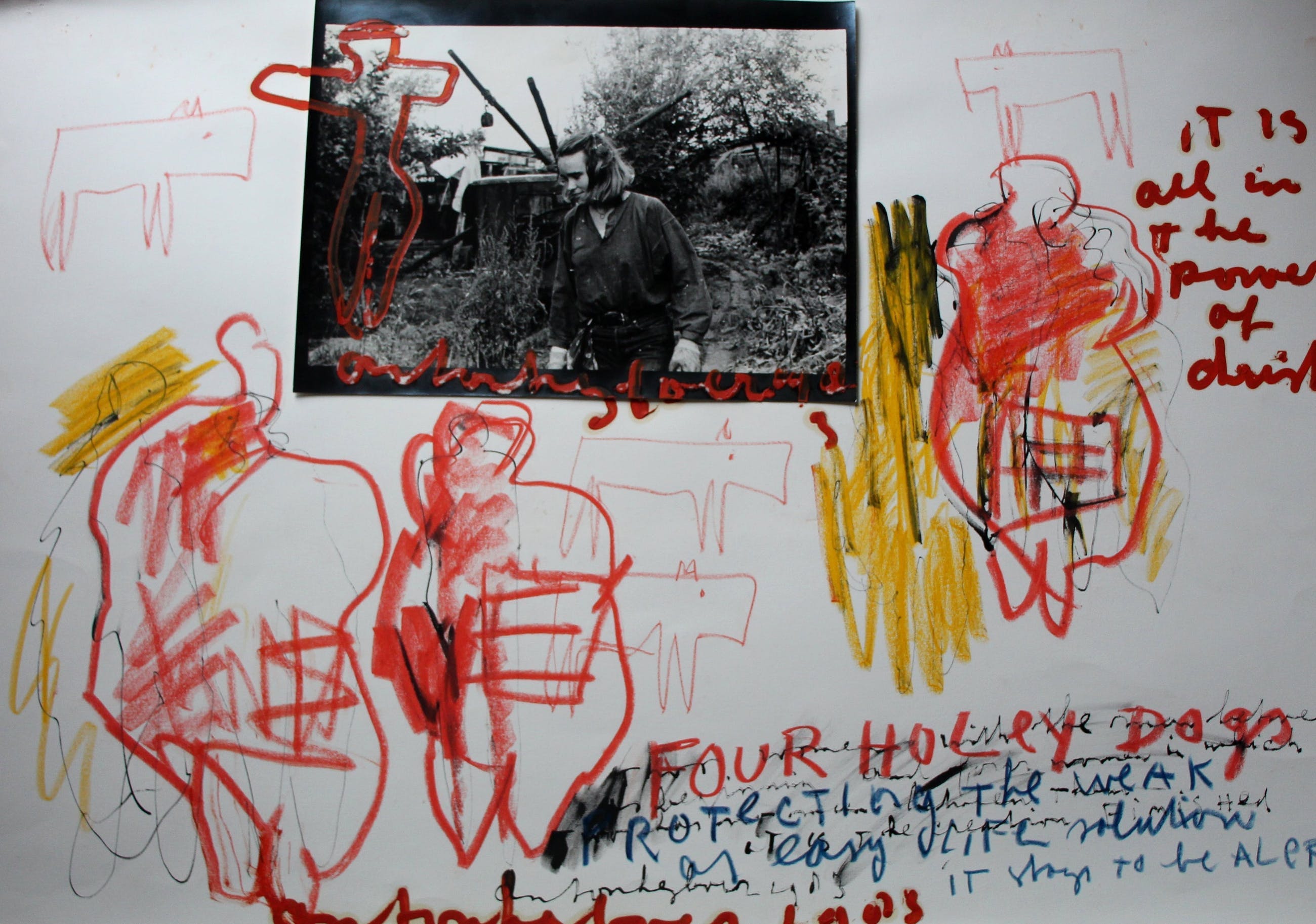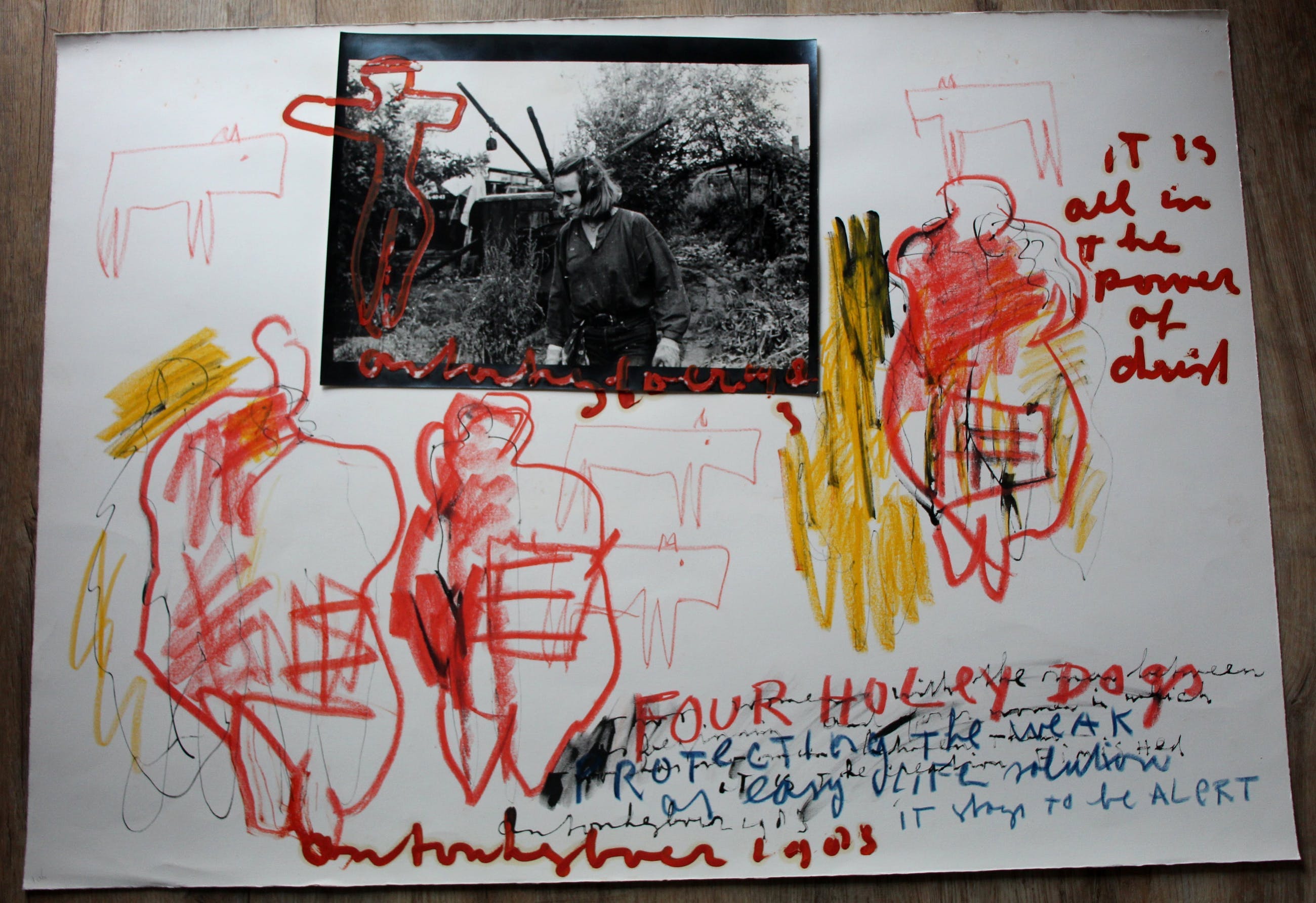 Gemengde techniek en fotocollage op papier van Anton Heyboer. Het werk is tweemaal gesigneerd en gedateerd (1983) aan de bovenzijde onder de fotocollage en aan de onderzijde. Op de fotocollage ziet u één van Heyboer zijn vrouwen. De authenticiteit van het aangeboden werk wordt voor 100% gegarandeerd. Een certificaat van echtheid kan, op aanvraag, worden meegestuurd. De verzendkosten zijn iets hoger omdat het werk in een grote koker of plat verzonden moet worden i.v.m. de dikte van het papier.