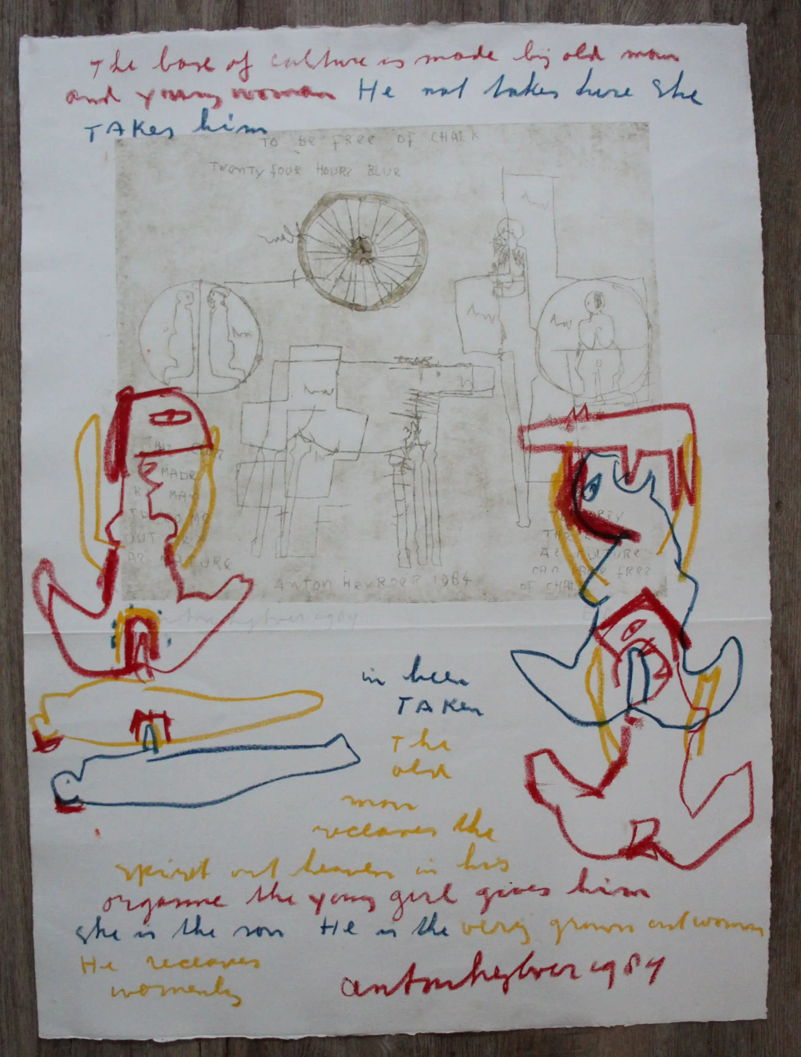 Gemengde techniek(vetkrijt en potloodtekening met ets) van Anton Heijboer. Oplage: E.A. Jaar: 1984. Afmetingen blad: H107 x b78cm. Afmetingen voorstelling: H49 x b52cm. Het werk is links onderaan, met potlood, gesigneerd "Anton Heyboer" in potlood. De authenticiteit van het aangeboden werk wordt volledig gegarandeerd. Een certificaat van echtheid kan, op aanvraag, worden gemaild.