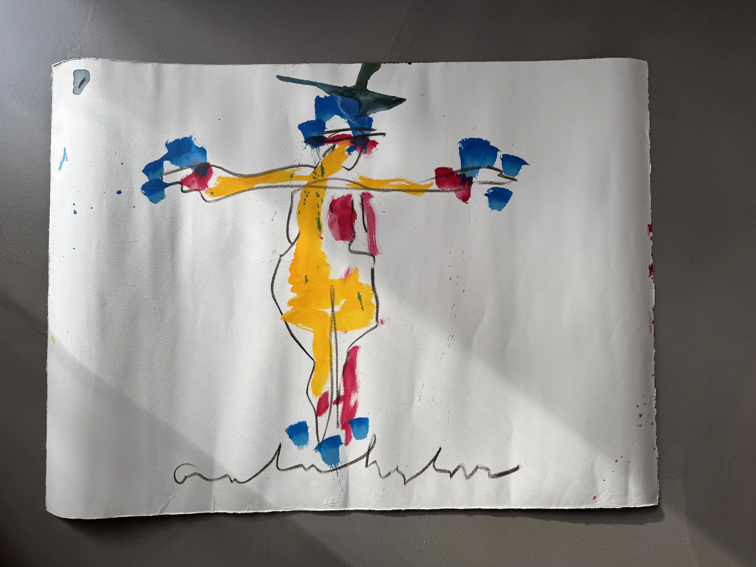 Aangeboden: een originele, handgesigneerde aquarel/gouache van Anton Heyboer (1924–2005), direct door mij aangekocht bij de kunstenaar zelf in zijn atelier in Den Ilp.