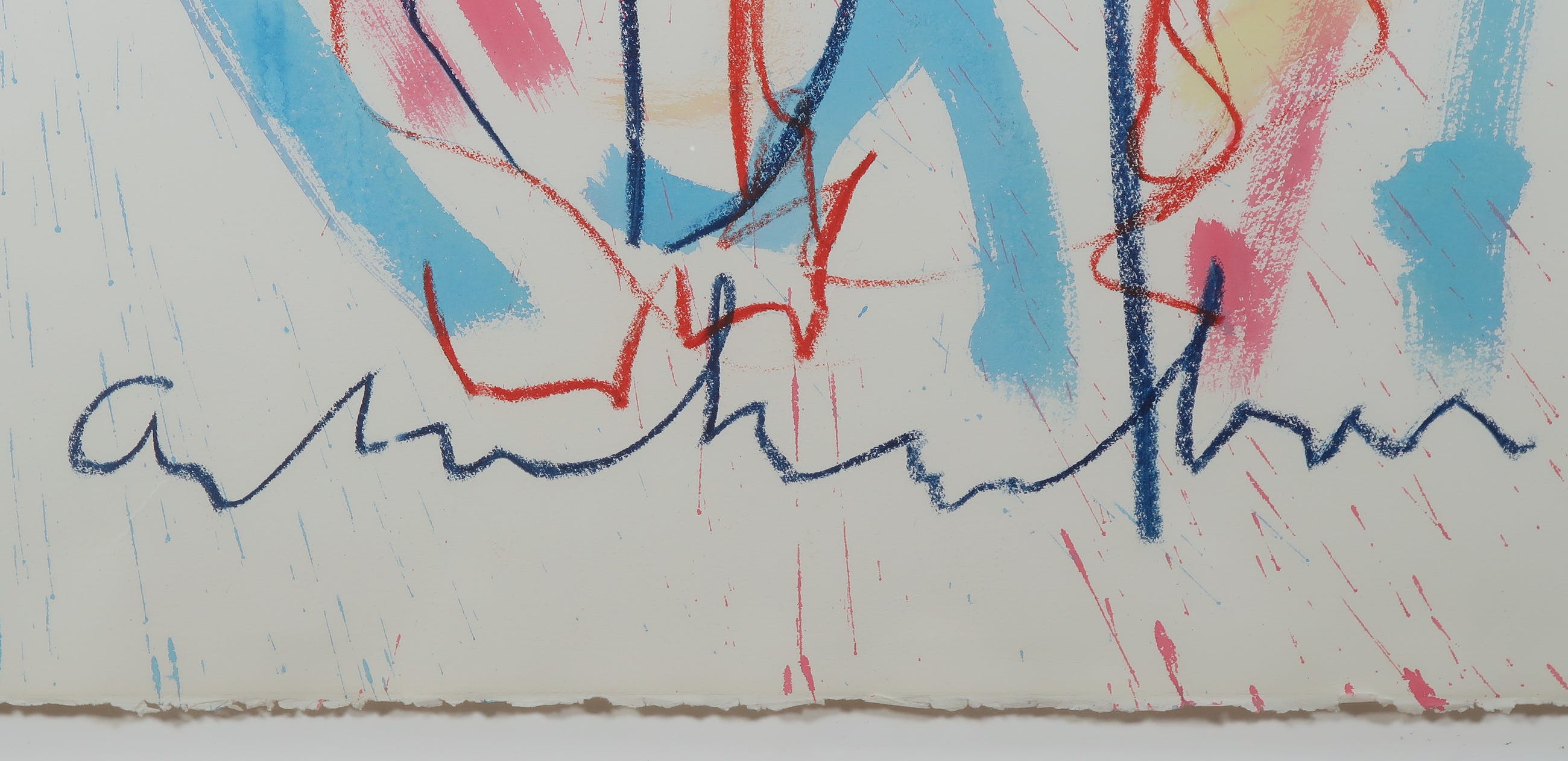 | Lichte kreuken in het blad en langs de uiterste randen zeer lichte verkleuring, maar deze oneffenheden zijn typerend voor de werkwijze van Anton Heyboer en dus inherent aan het kunstwerk. | |