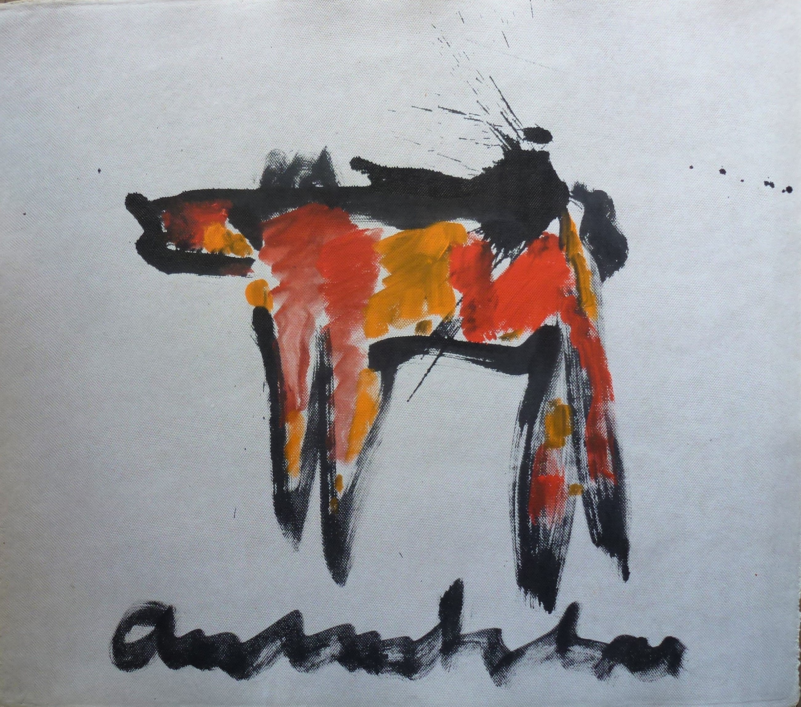 Geschilderd door Anton Heyboer in 1988 met acrylverf en oostindische inkt op hand geschept papier . Papier gemaakt door papiermolen de Schoolmeester te Westzaan van lompen . Herkomst : Gekoct in 1988 van Anton Heyboer . Wordt aangetekend verzonden .