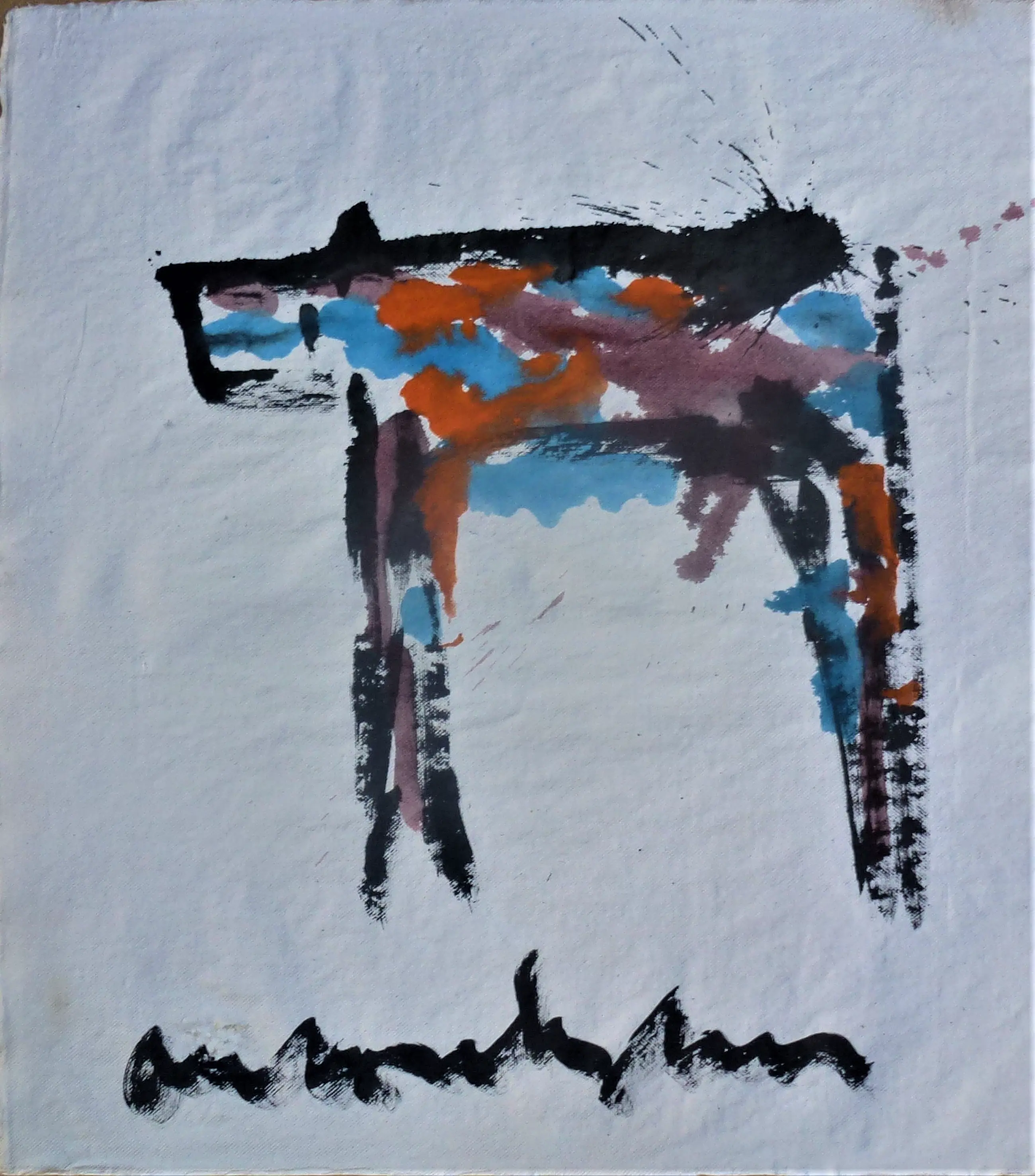 Geschilderd door Anton Heyboer in 1988 met acrylverf en oostindische inkt op handgeschept papier . Papier gemaakt door papiermolen de Schoolmeester te Westzaan van lompen . Afmetingen : 68 cm x 60,5 cm . Voorstelling : Het dier . Conditie : Zo goed als nieuw . Herkomst : Gekocht in 1988 van Anton Heyboer . Wordt aangetekend verzonden .