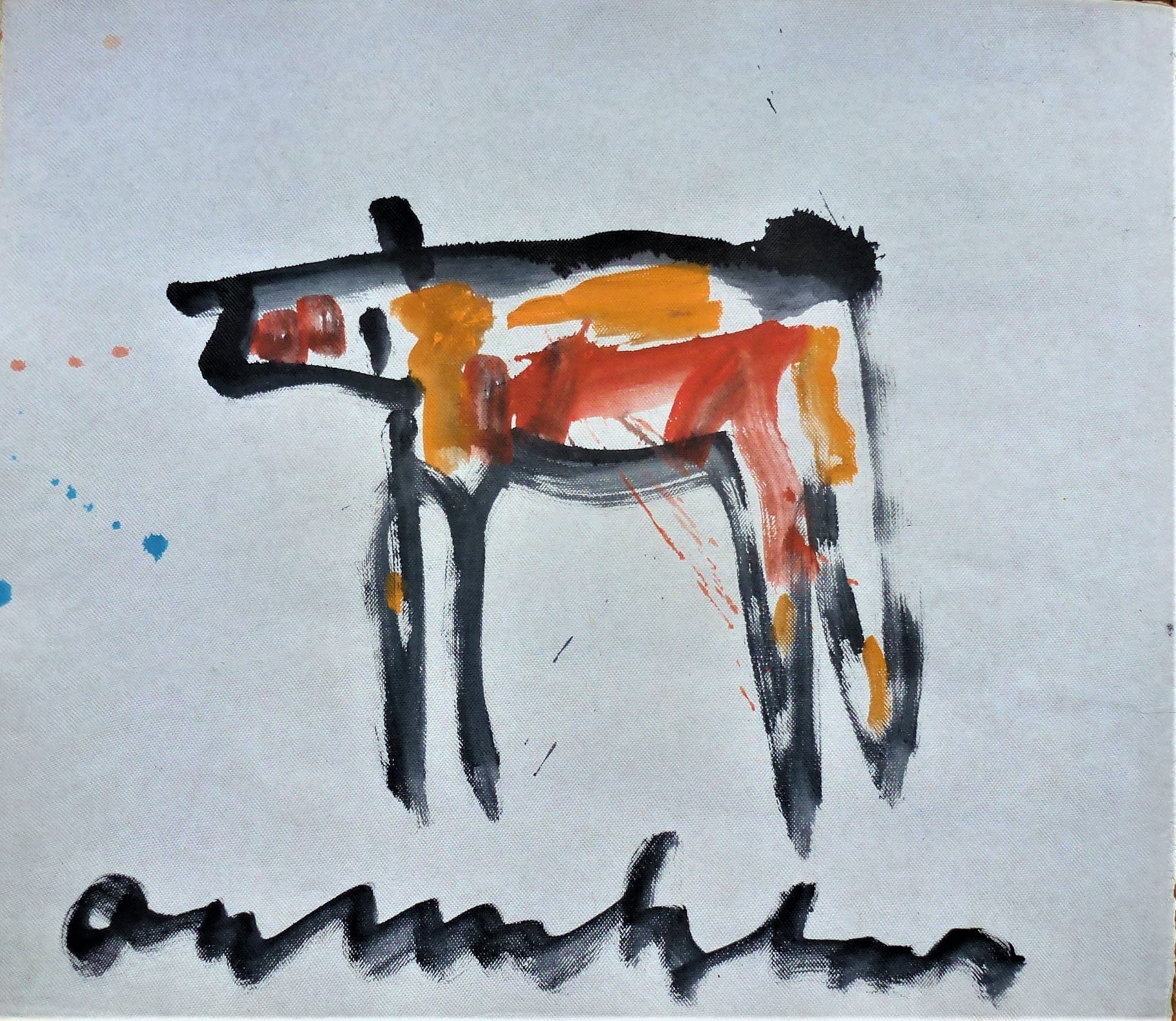 Geschilderd door Anton Heyboer in 1988 met acrylverf en oostindische inkt op handgeschept papier. Papier gemaakt door papiermolen de Schoolmeester te Westzaan van lompen . Afmetingen : 62 cm x 71,5 cm . Voorstelling : Het dier . Krachtige schildering van het dier . Conditie : Zo goed als nieuw . Herkomst : Gekocht in 1988 van Anton Heyboer . Wordt aangetekend verzonden .