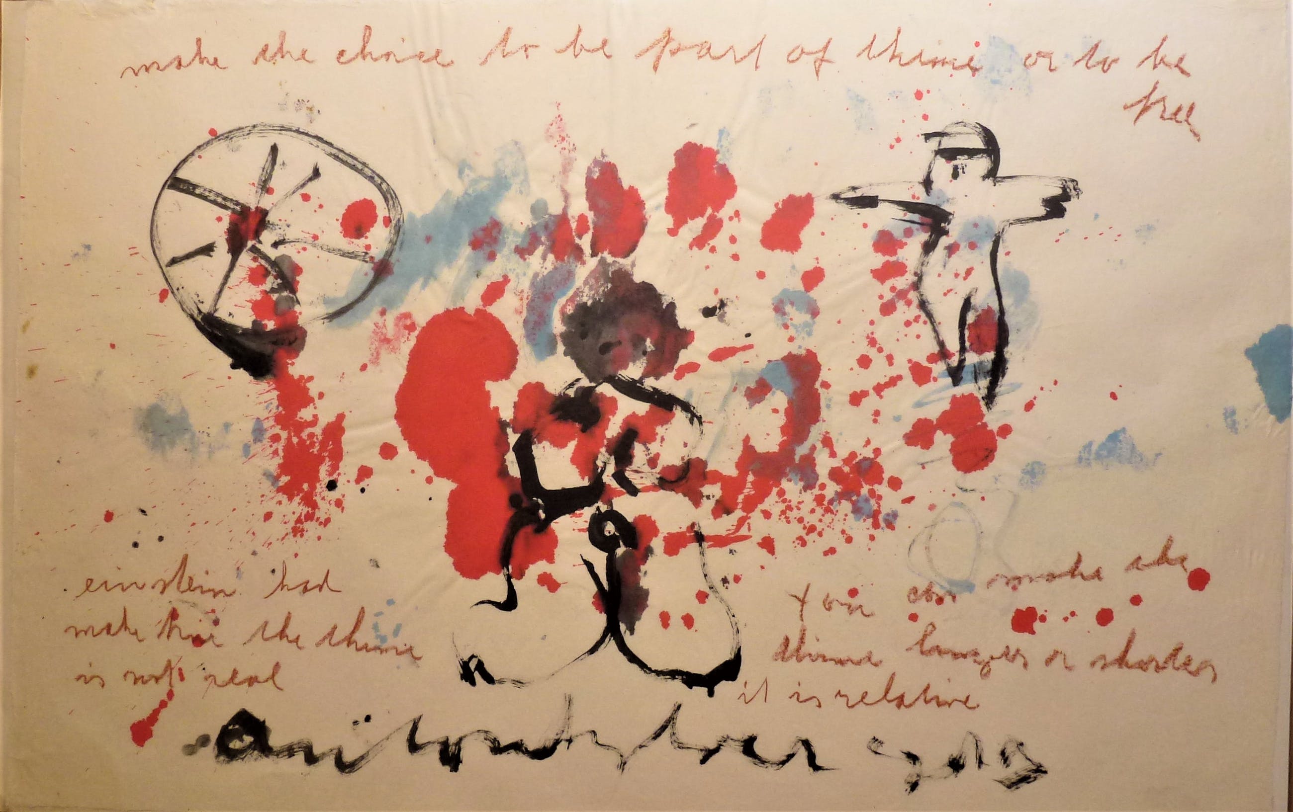 Geschilderd door Anton Heyboer in 1989 met acrylverf en ooostindische inkt en geteken met conté krijt op japans rijstpapier . Afmetingen : 64 cm x 97 cm . Voorstelling : Het symbool van de onschuld met de verlossing Tekst : make the choice to be past of time or to be free . Conditie : Zo goed als nieuw . Herkomst : Gekocht in 1989 van Anton Heyboer . Word aangetekend verzonden .