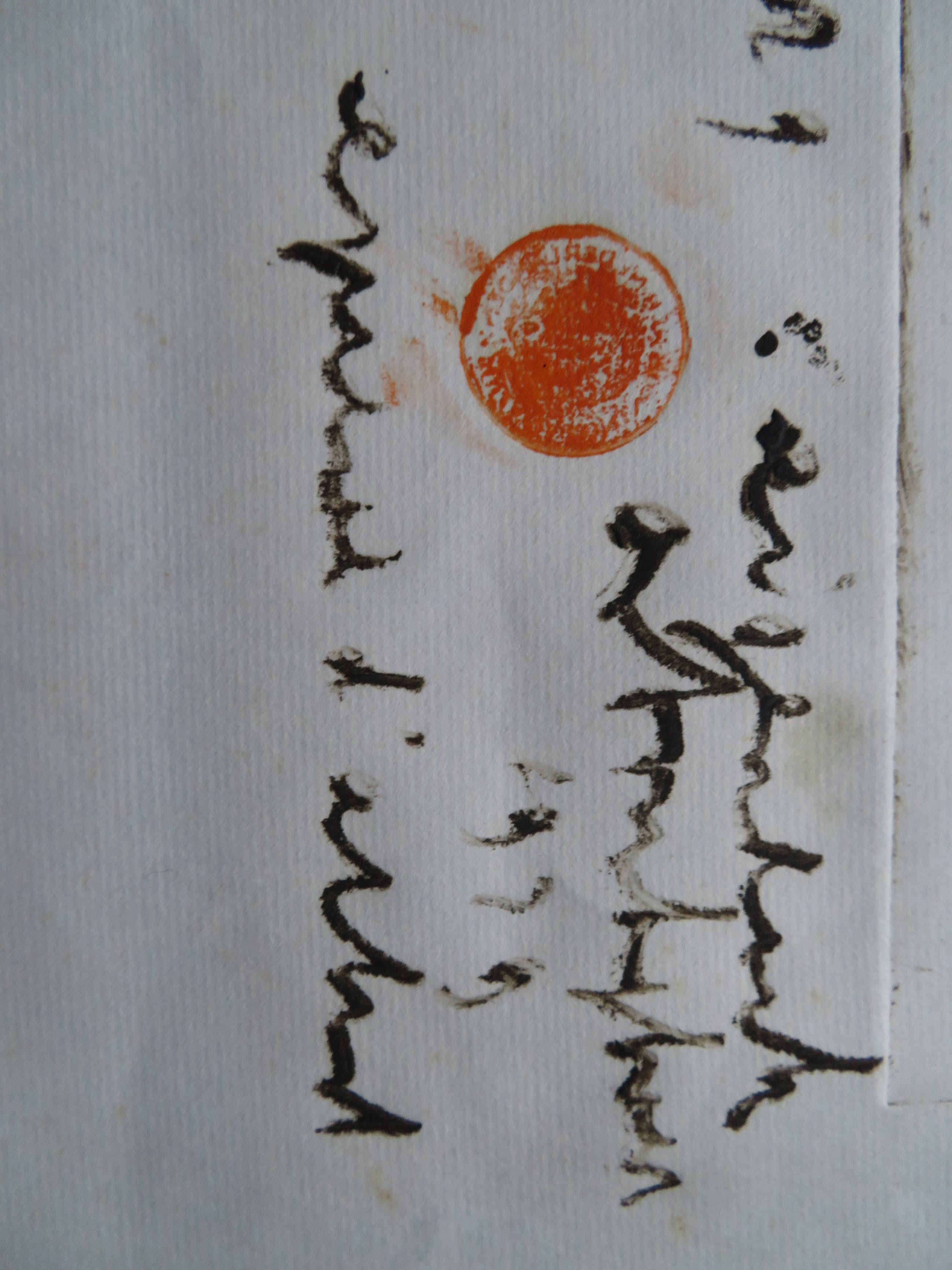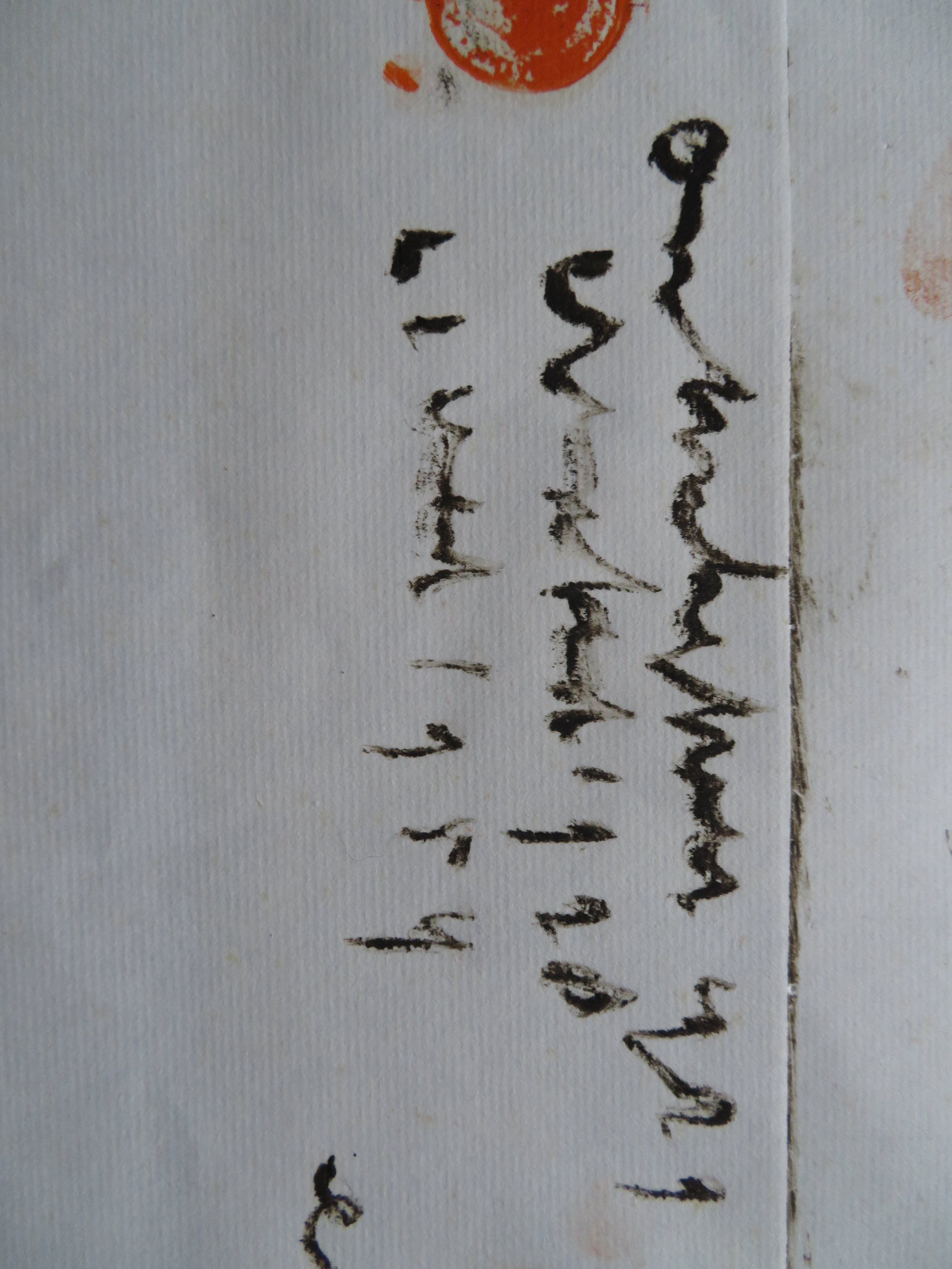 Klein scheurtje in de rand van het papier (valt bij inlijsting helemaal weg).