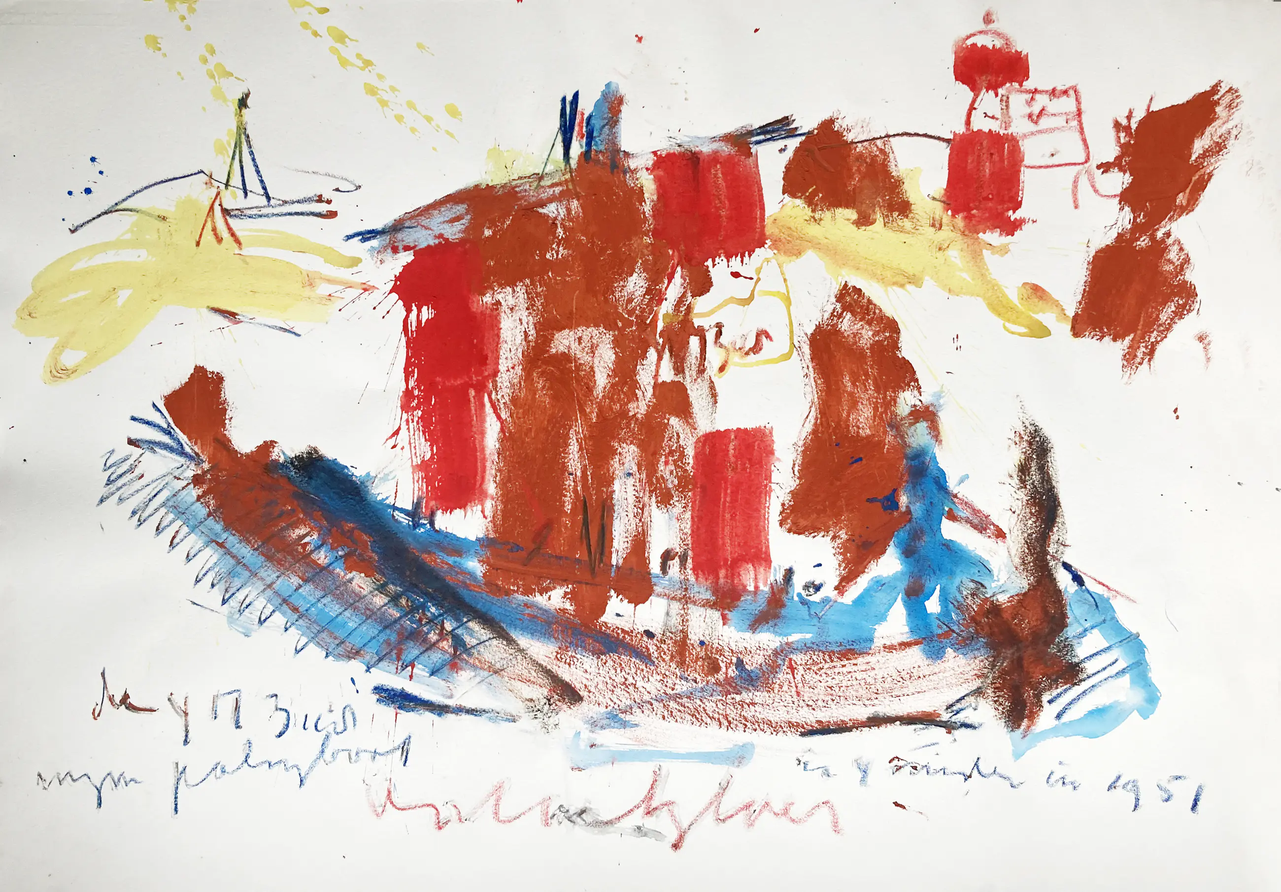 Rond 1951 verbleef Heyboer in IJmuiden met zijn. toenmalige echtgenoot Erna Kramer. Hij viste er met zijn vriend de Haarlemse schilder Frans Verpoorten op paling. Het werk is uitgevoerd acryl op zwaar Hahnemuhler en handgesigneerd. Een certificaat van echtheid met afbeelding van het werk, een atelierstempel en ondertekend door Lotti Heyboer bijgeleverd! Helaas vervelende schaduwen bij het fotograferen!