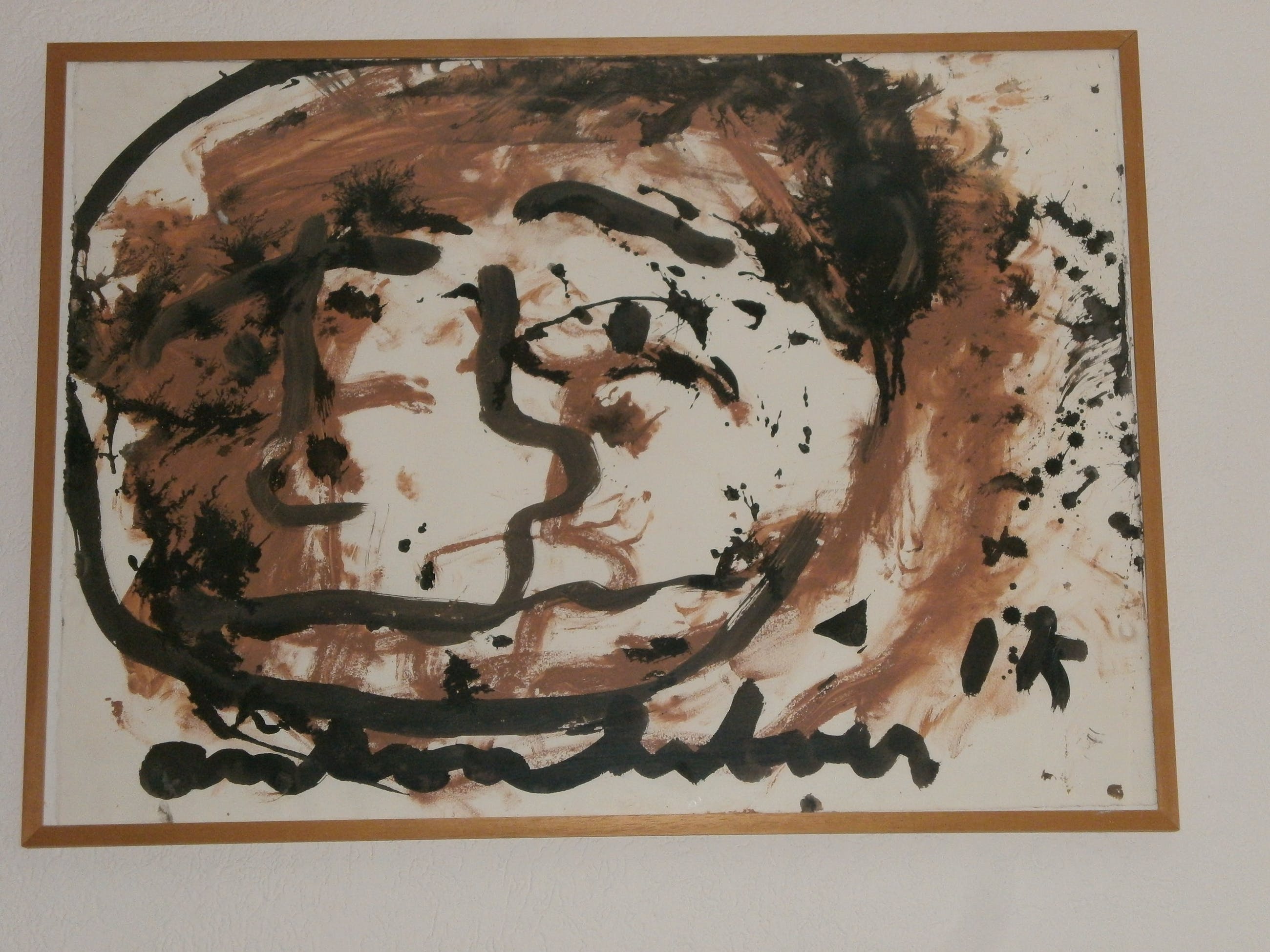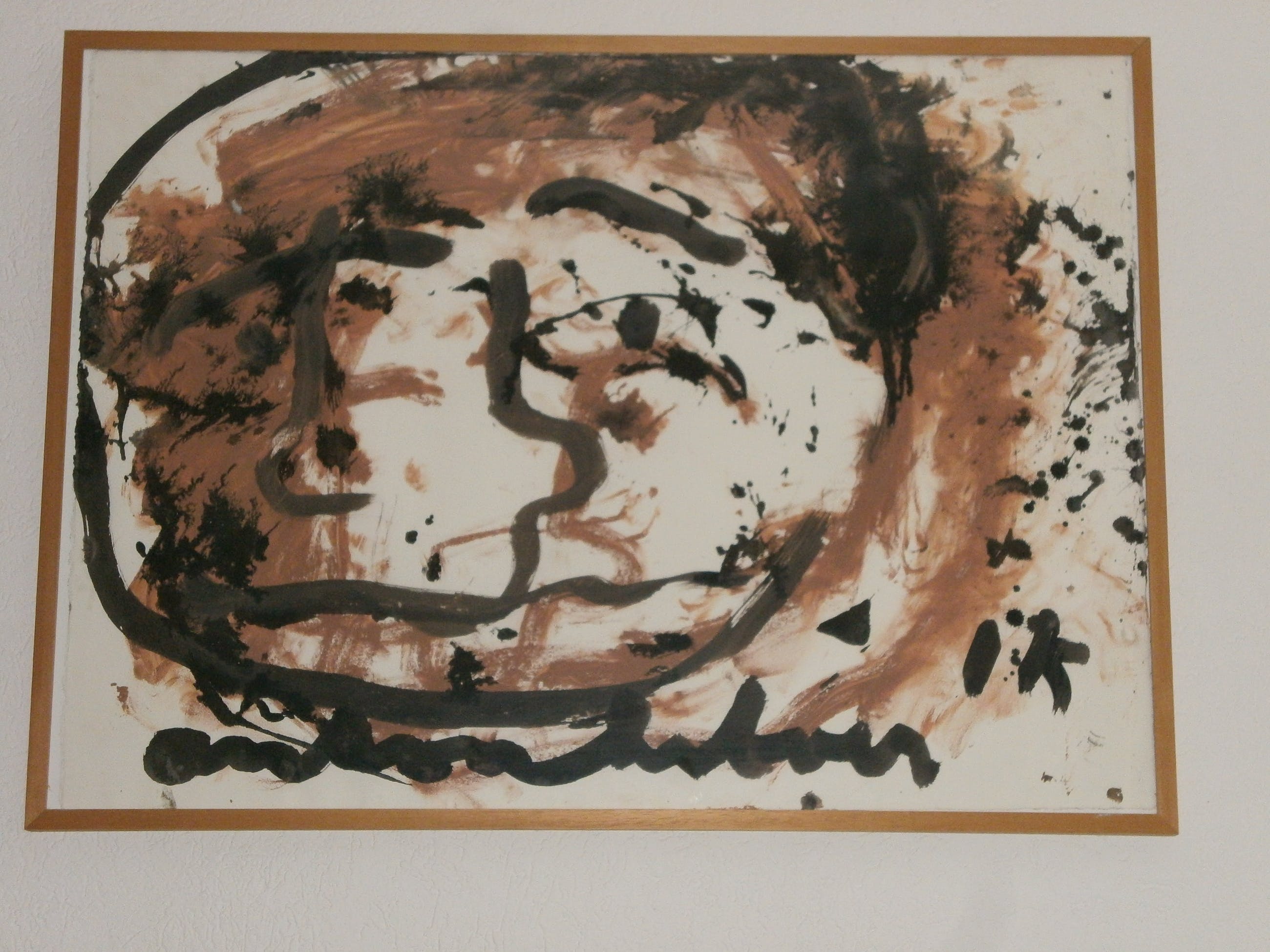 Zeer krachtig gemaakt schilderij door Anton Heyboer.....zelden getiteld:ik. Gemaakt van klei en acryl verf op bfk rives papier. Papier voorzien van watermerk bfk-rives. Prima strak ingelijst. Ophang klaar.