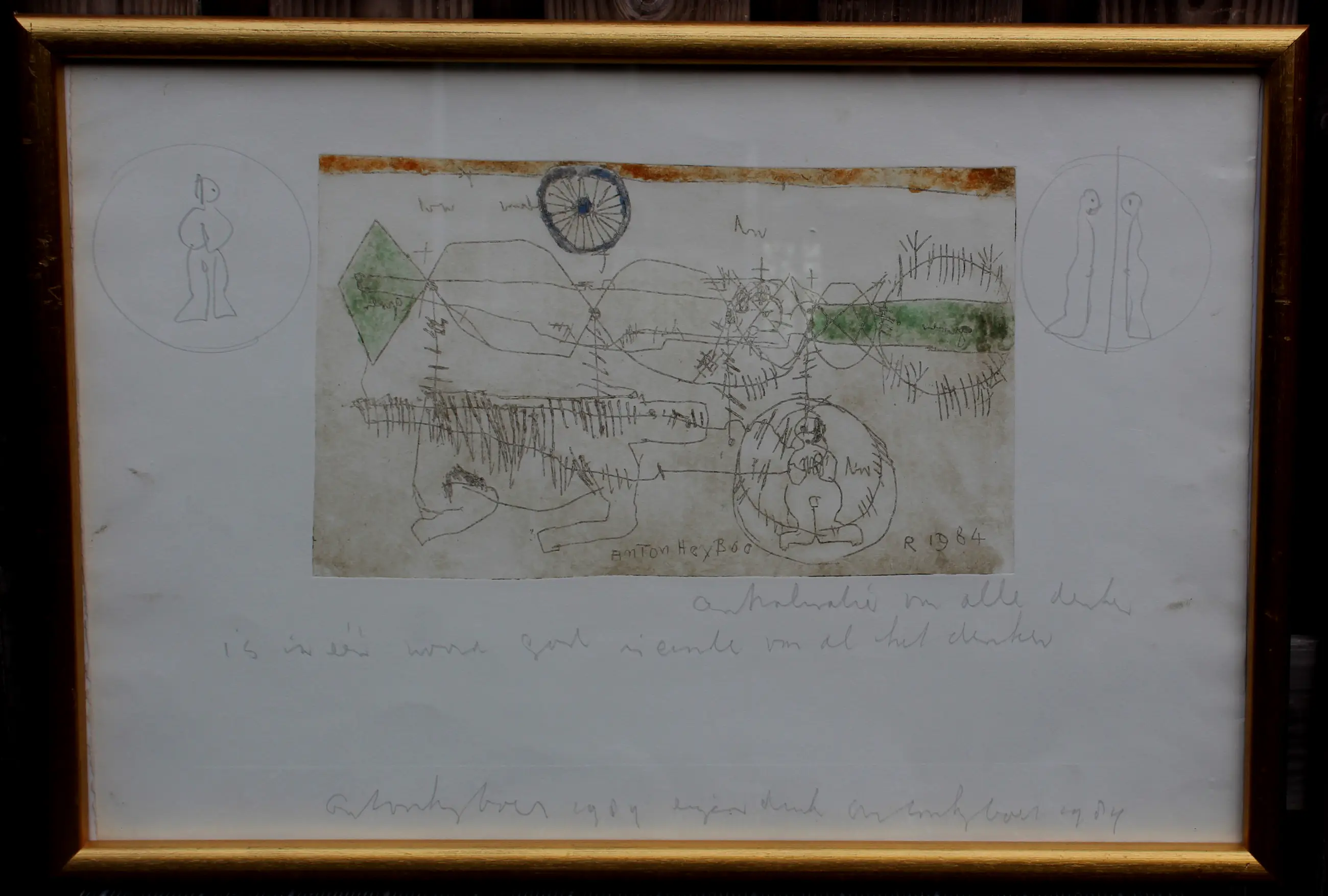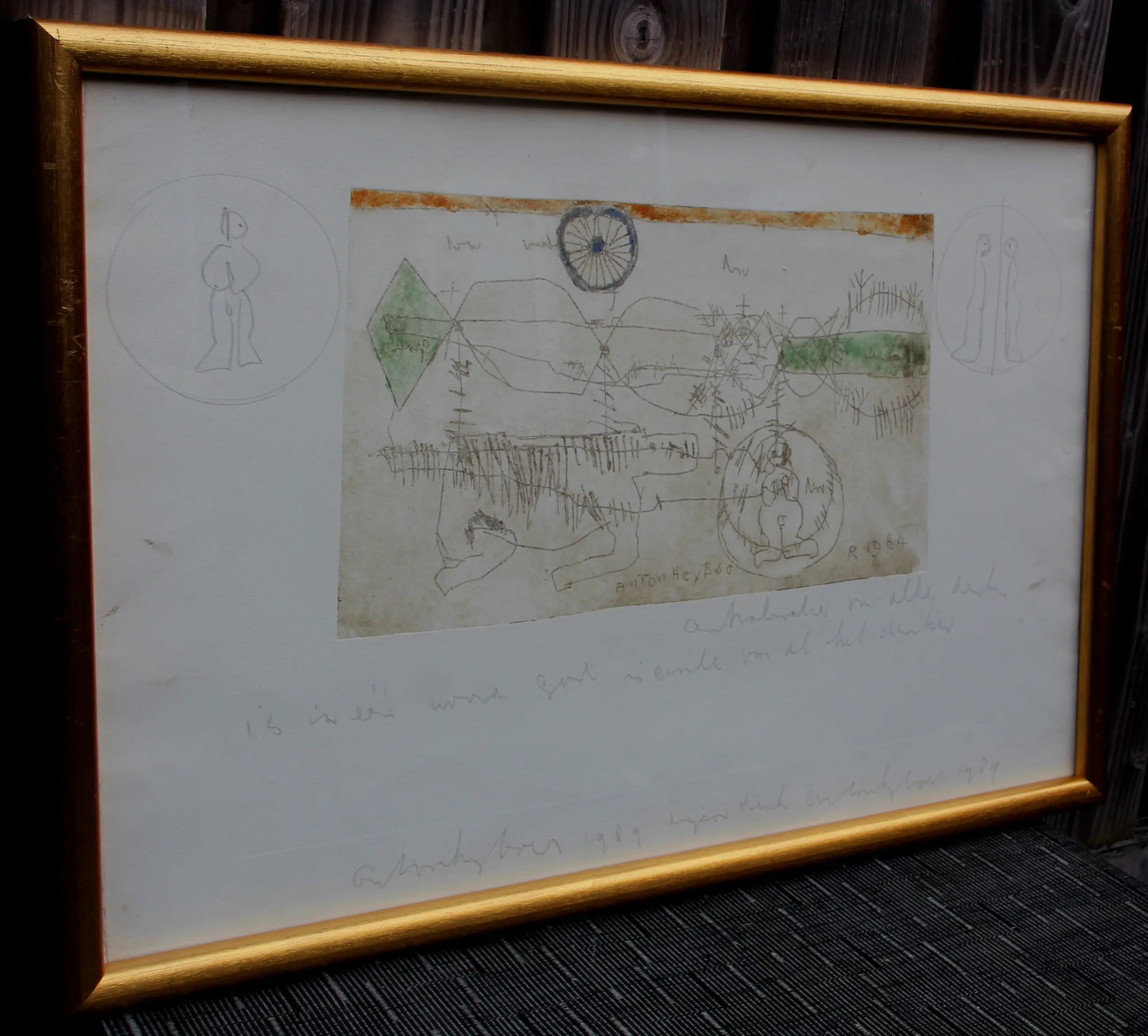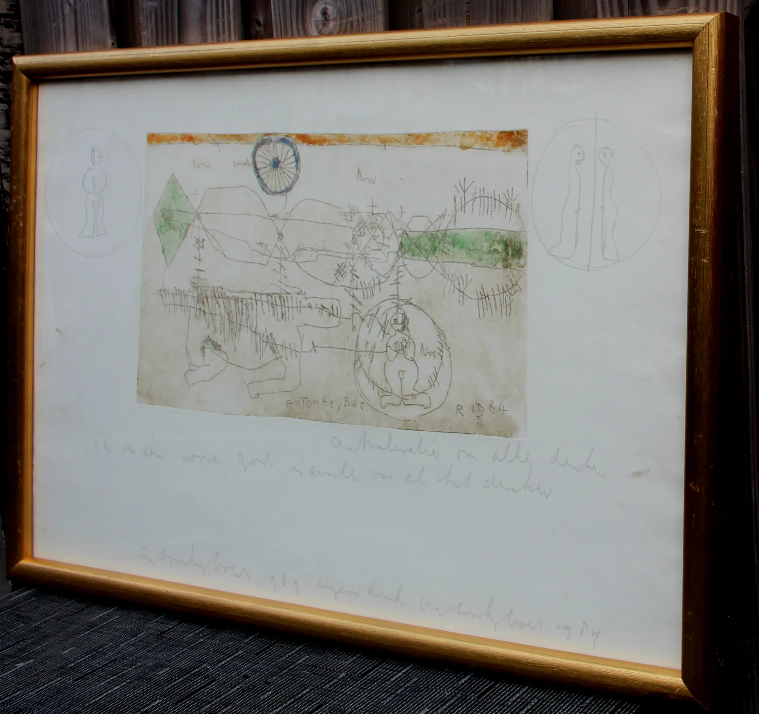 Ingelijste ets van Anton Heyboer. Jaar: 1984. Afmetingen incl lijst: H58cm x b84cm. Afmetingen voorstelling: H27cm x b46cm. De ets is, midden onderaan, gesigneerd door de kunstenaar. De authenticiteit van het aangeboden werk wordt volledig gegarandeerd. Een certificaat van echtheid kan, op aanvraag, worden gemaild.