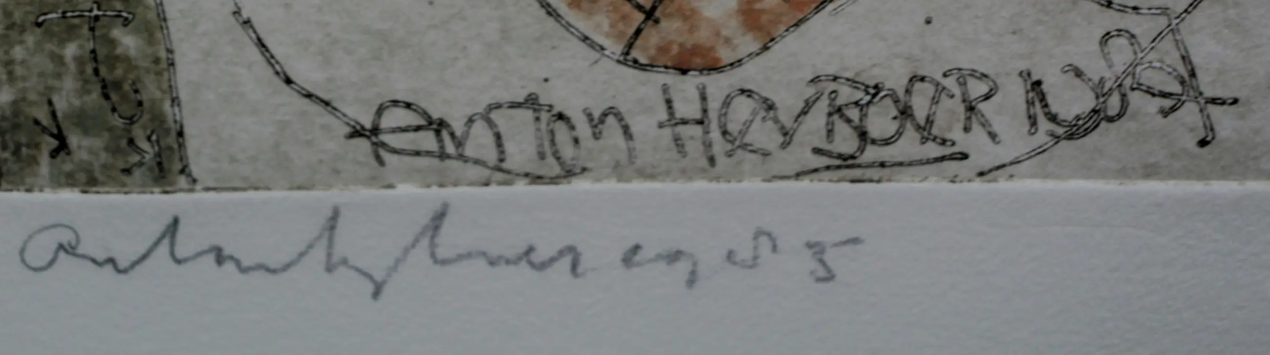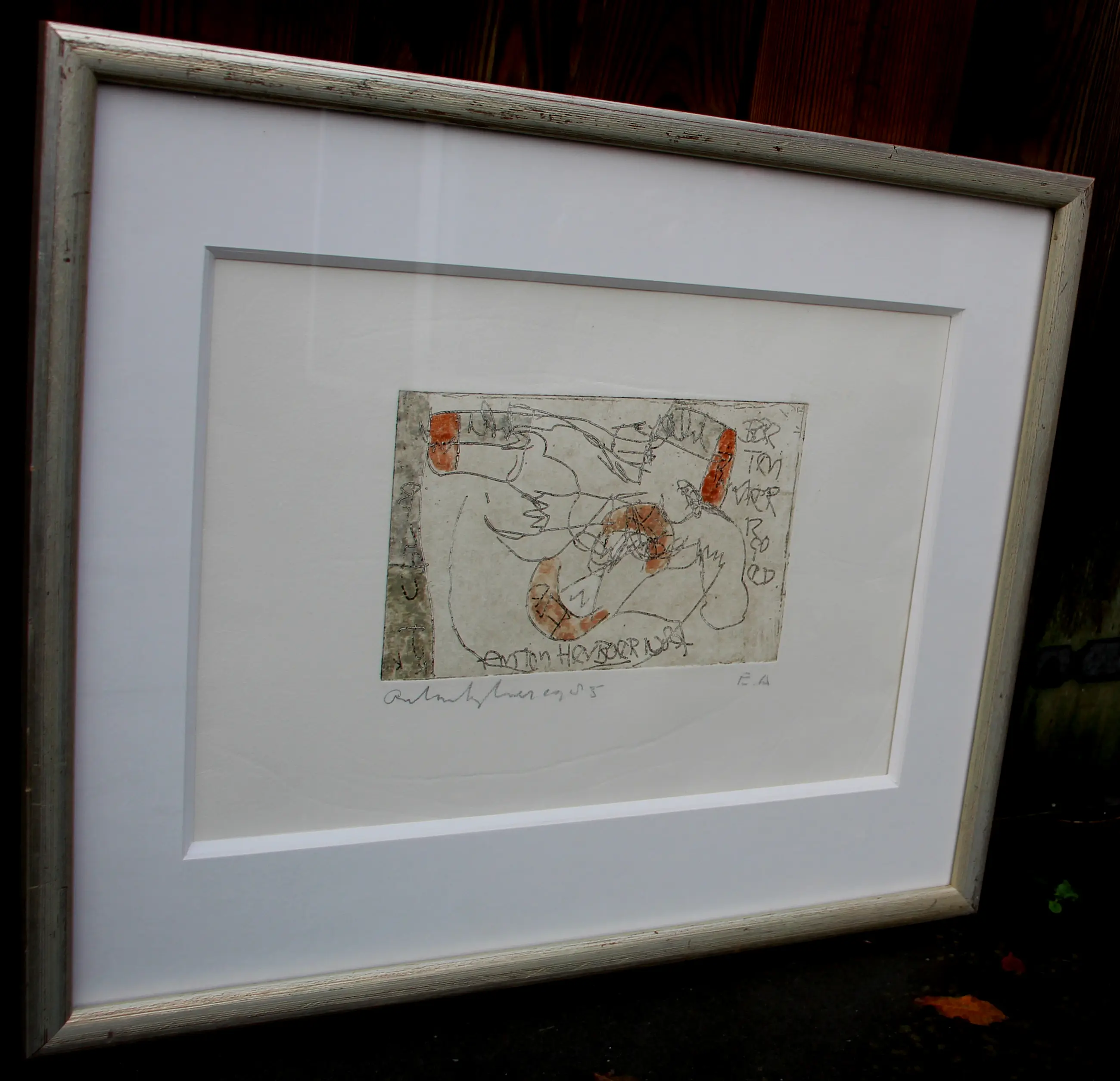 Ingelijste ets van Anton Heyboer. Jaar: 1984. Oplage: E.A. Afmetingen incl lijst: H50cm x b59cm. Afmetingen voorstelling: H30cm x b40cm. De ets is, links onderaan, gesigneerd door de kunstenaar. De authenticiteit van het aangeboden werk wordt volledig gegarandeerd. Een certificaat van echtheid kan, op aanvraag, worden gemaild.