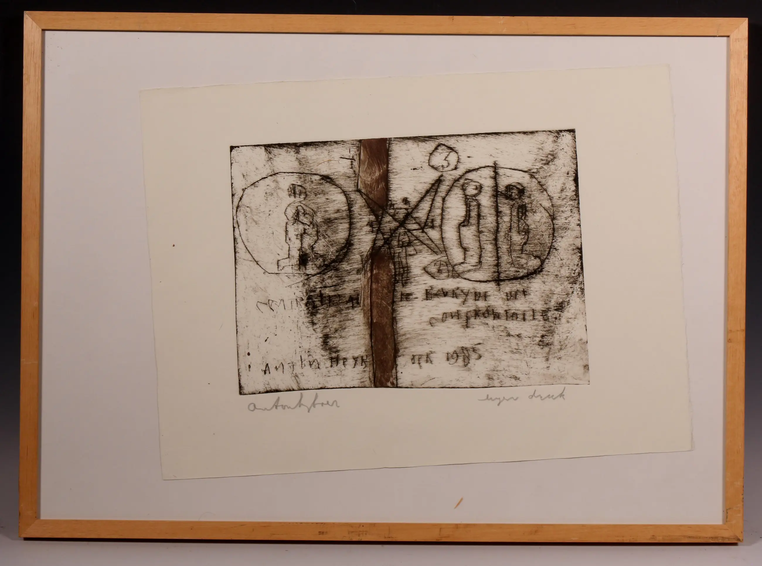 Ingelijste ets van Anton Heyboer. Oplage: Eigen druk. Afmetingen incl lijst: H63