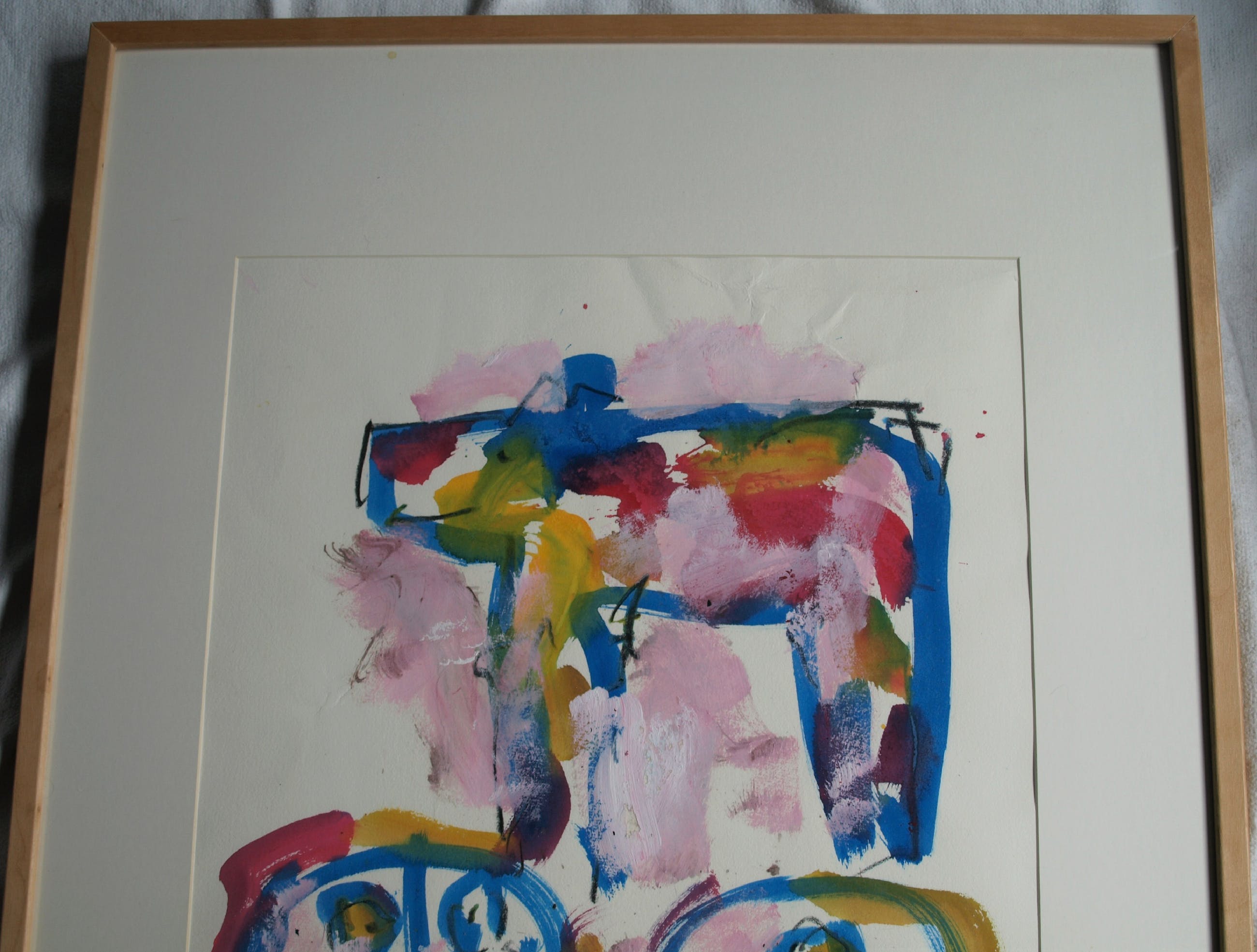 Een groot ingelijst werk uit ca. 1980 van de Nederlandse kunstenaar Anton Heyboer (1924-2005). -Gesigneerd middenonder. -Ingelijst in een eenvoudige houten lijst met passe-partout en plexiglasplaat. -Afmetingen: Lijst, 102 x 72 cm. Blad, 100 x 70 cm. Beeld, 69 x 49 cm. -Herkomst: Uit een nalatenschap. Het werk is destijds verkregen via de kunstenaar. -Conditie: In goede staat. Het papier heeft kreuk, m.n. aan de bovenrand. Zie ook alle foto’s voor een eigen indruk. Kan zo aan de muur.