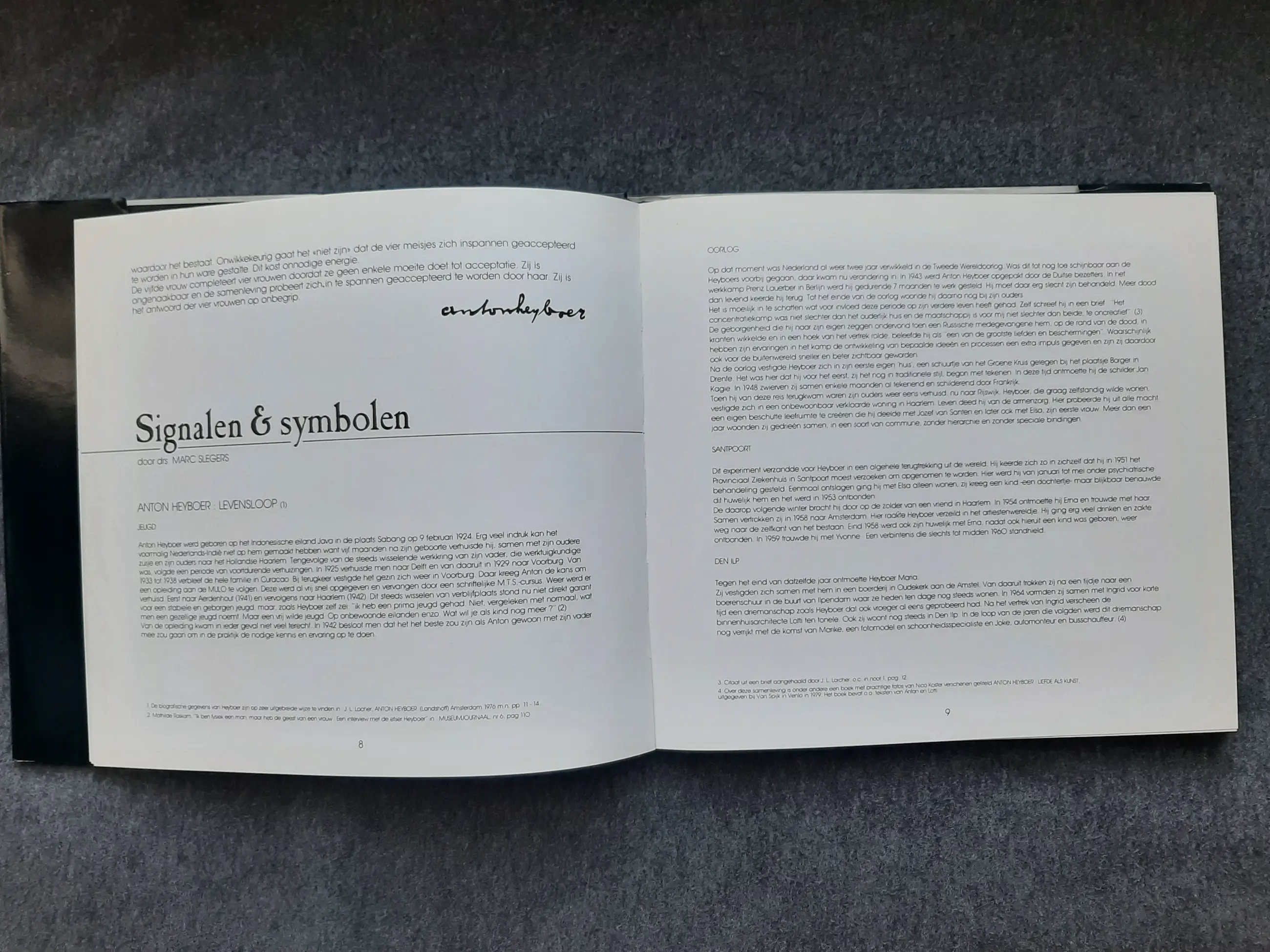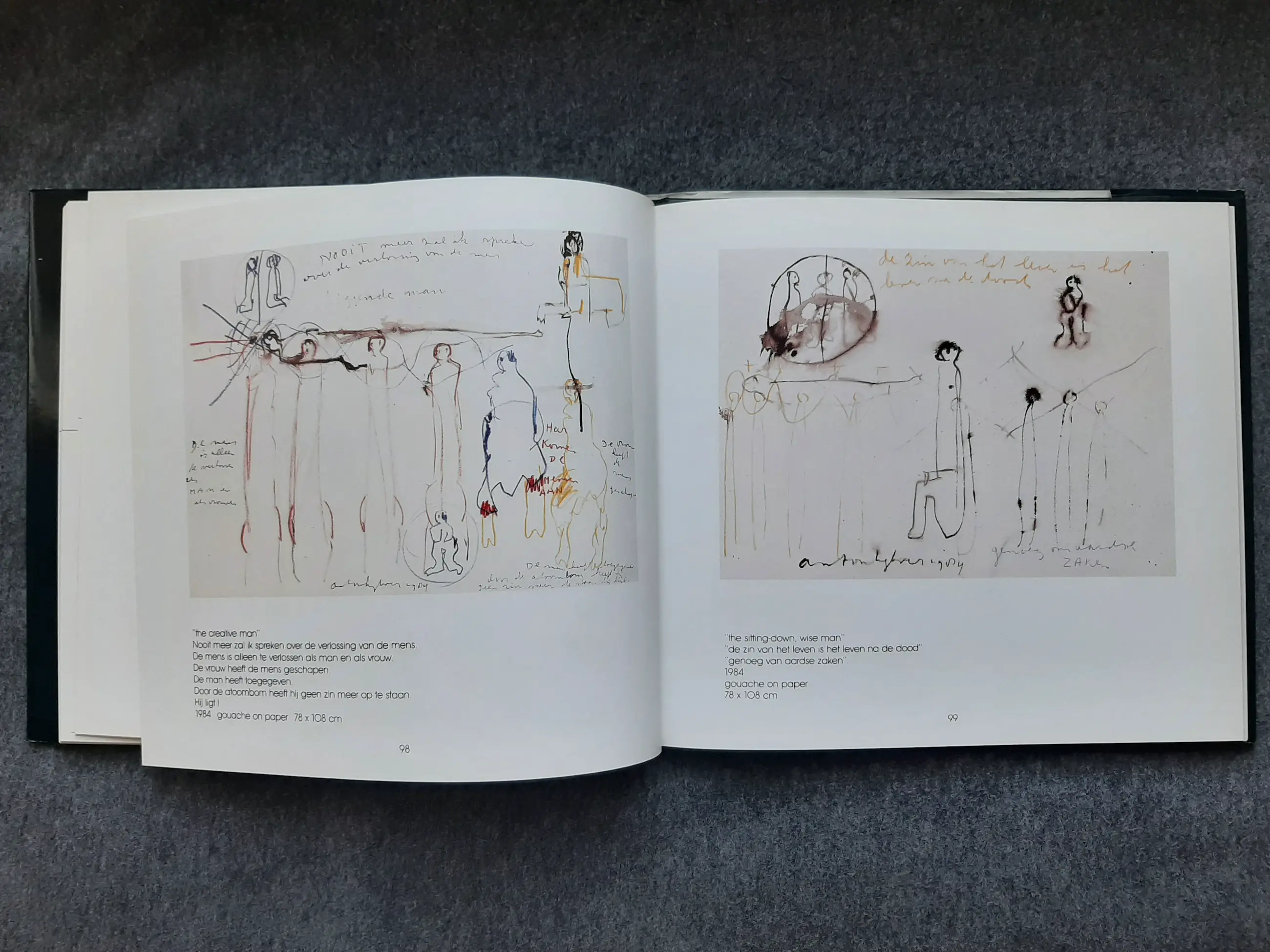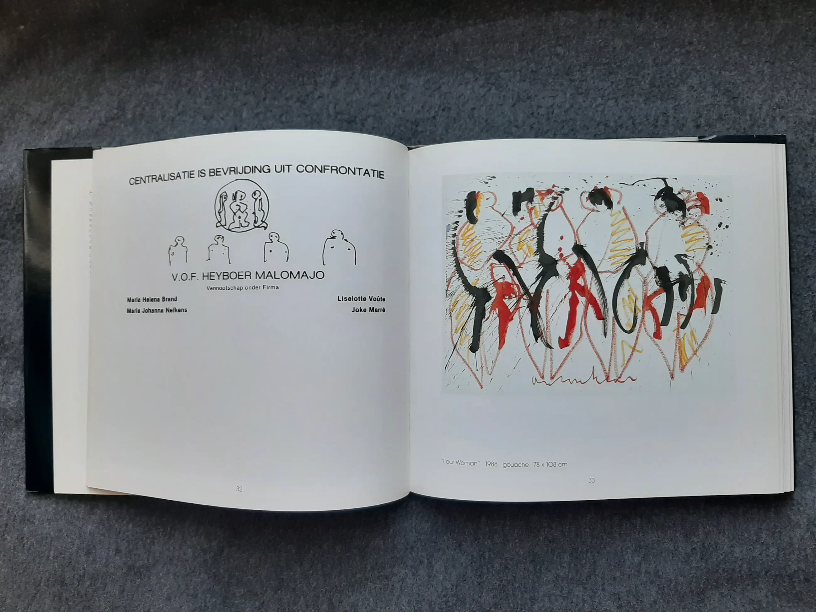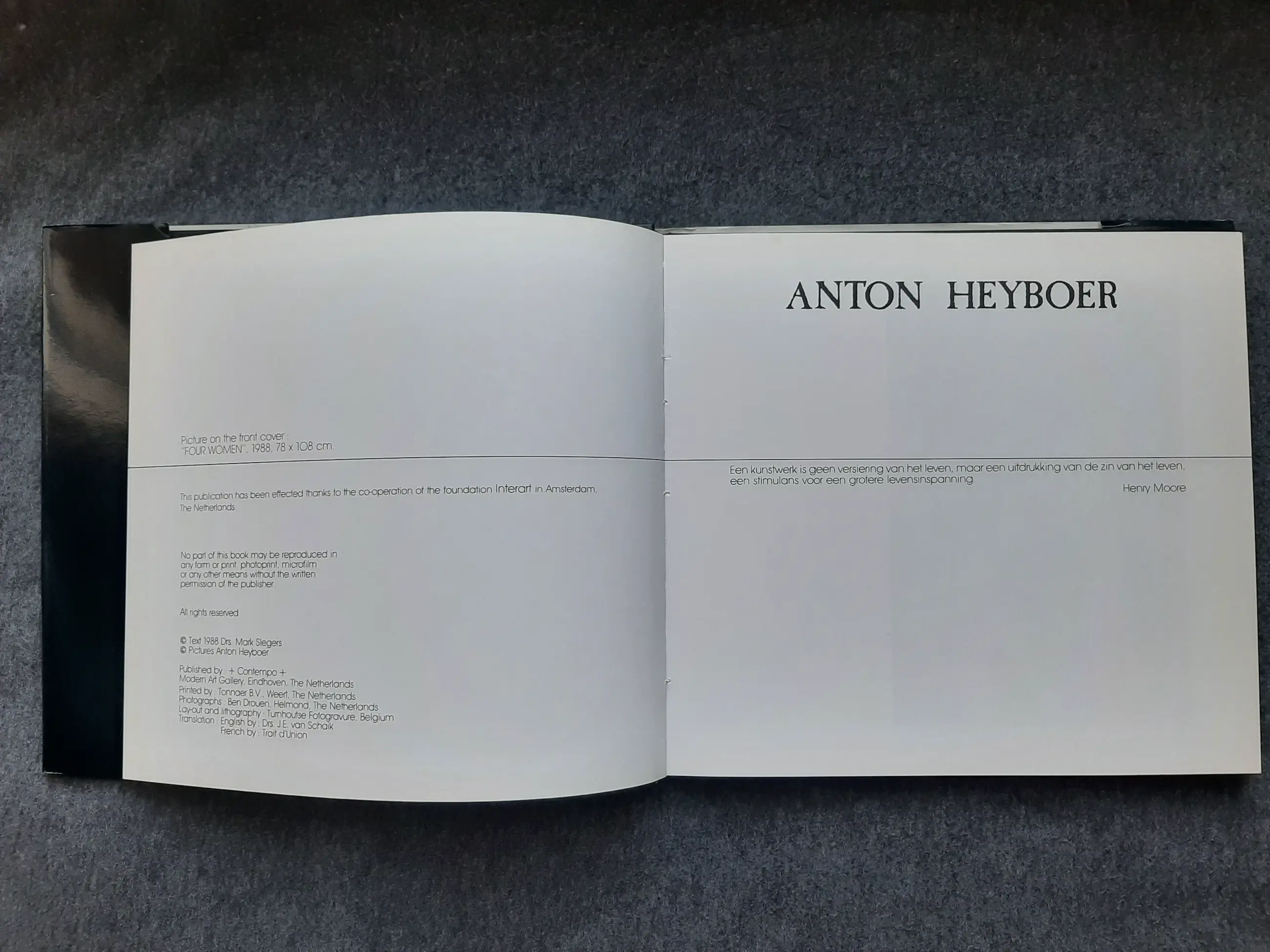 Mooie en handgesigneerde hardcover editie met stofomslag. Geschreven door Drs. Mark Slegers en uitgebracht door Contempo Modern Art Gallery Eindhoven. Het boek presenteert werk van Heyboer uit de periode 1984-1988, samen met begeleidende tekst van hem zelf. Naast foto's en reproducties is er ook een overzicht van tentoonstellingen uit de periode 1954-1988 en bibliografie-overzicht.