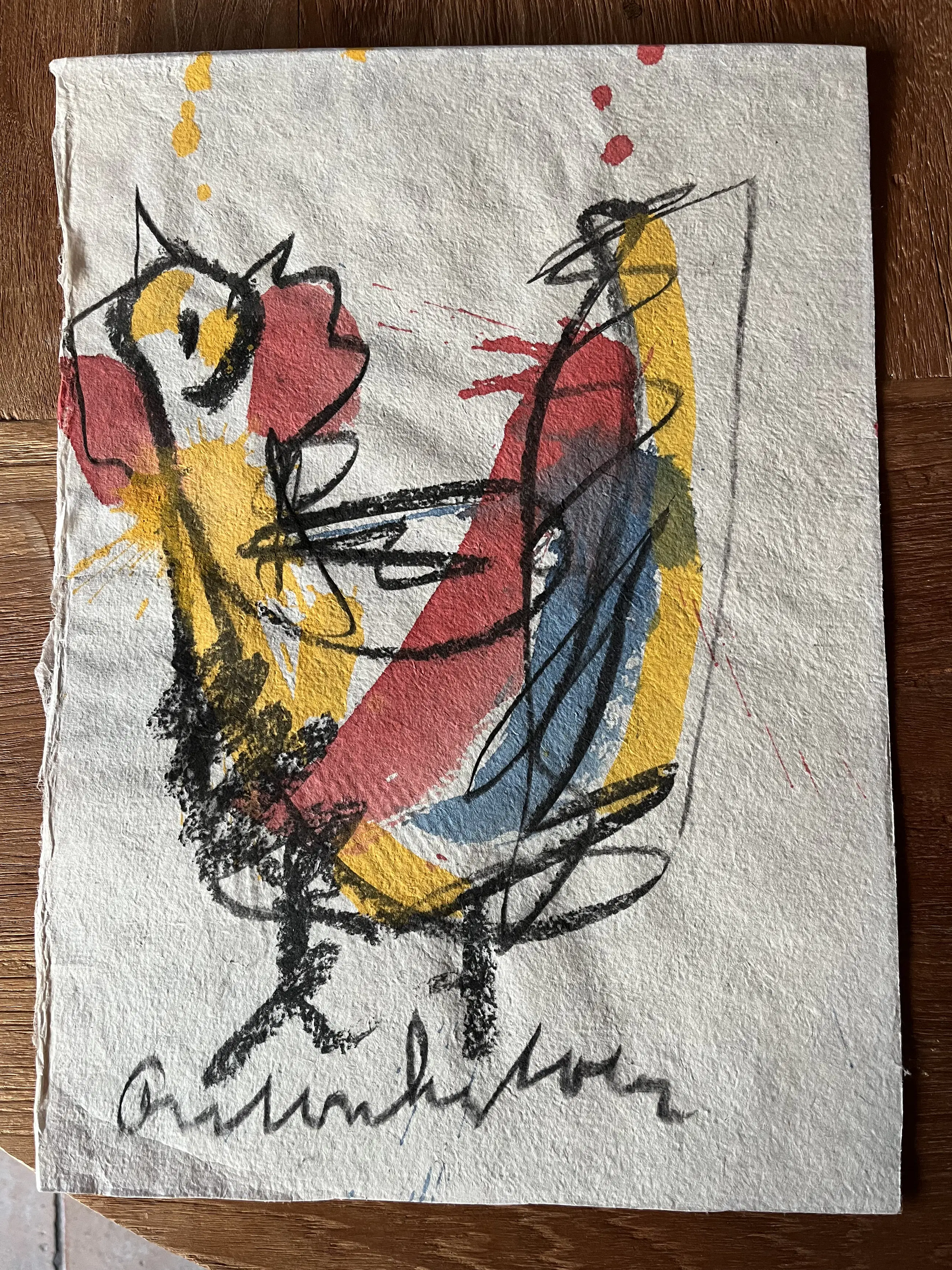 kenmerkende kleurrijke acquarel met kleurrijke kip