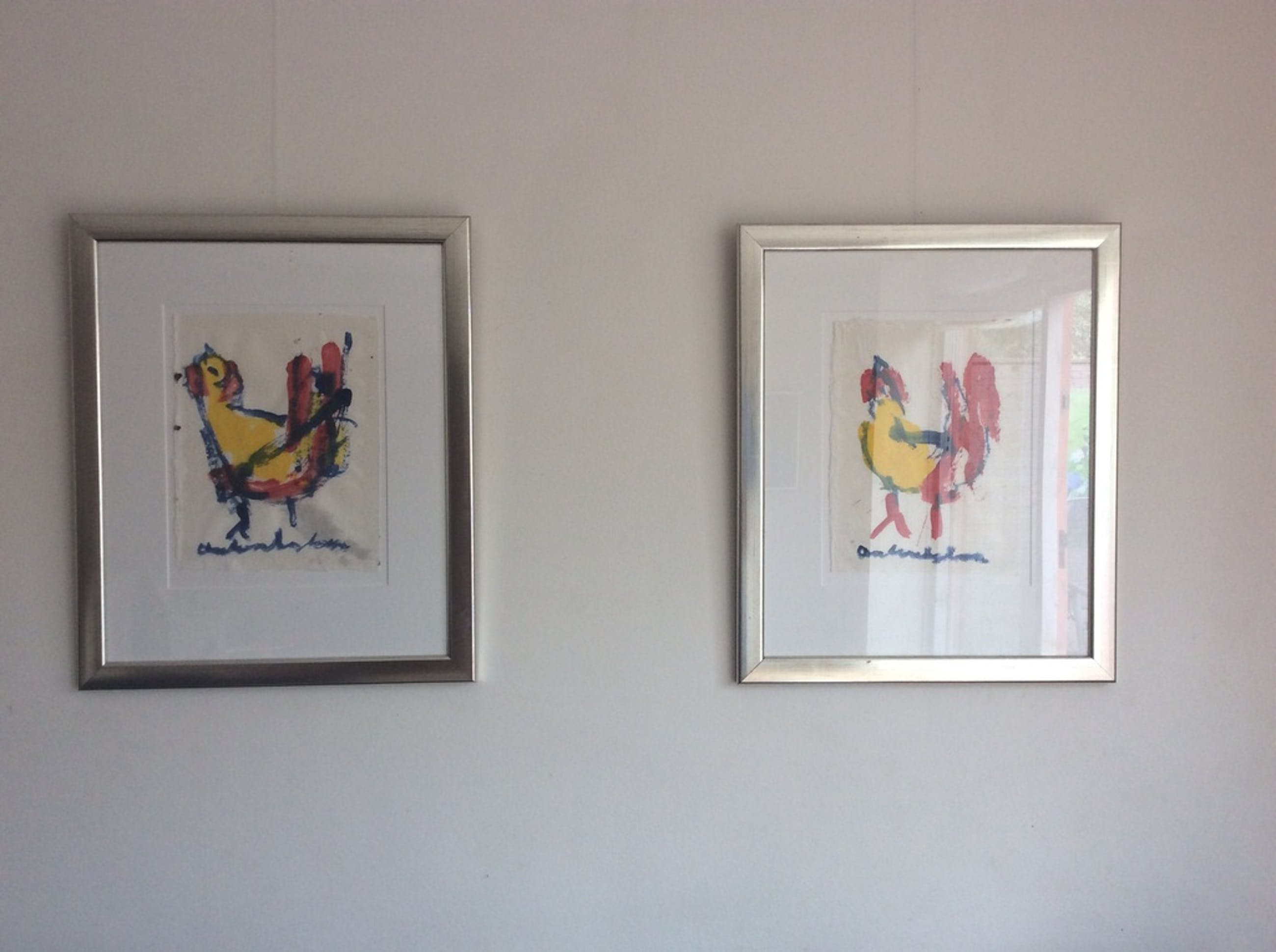 Orginele set van 2 schilderijen van Anton Heyboer genaamd de kippen.