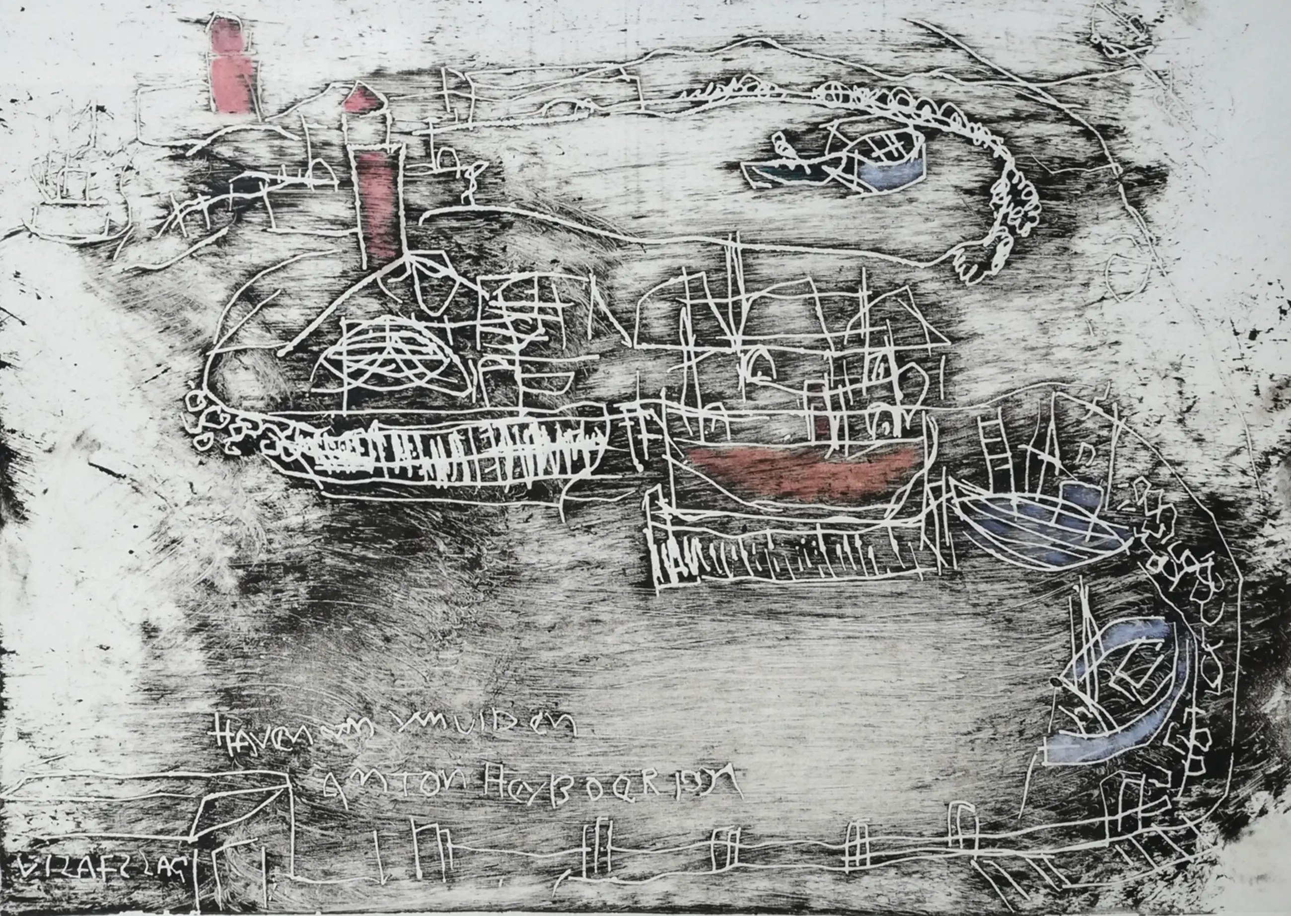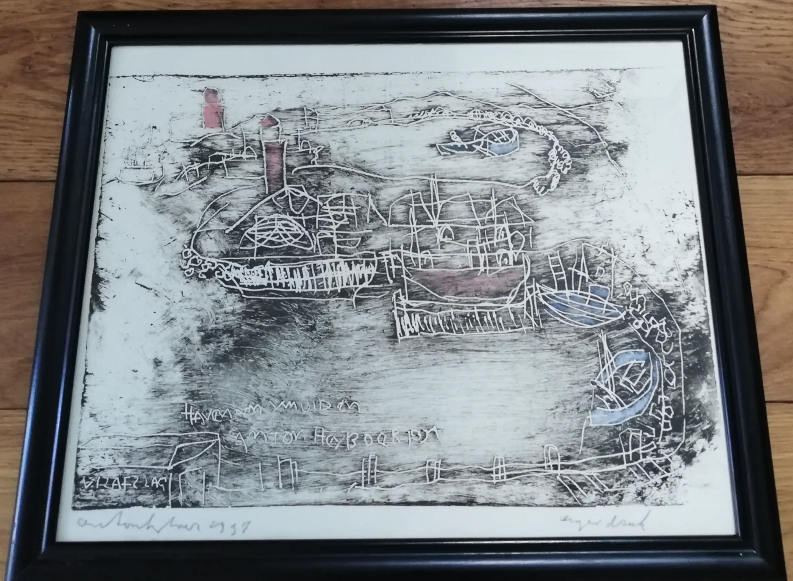 Fraaie grote kleurets van de hand van Anton Heyboer. Gesigneerd in potlood. Betreft een eigen druk, zeldzaam werk. In nette lijst, kan zo aan de muur.
