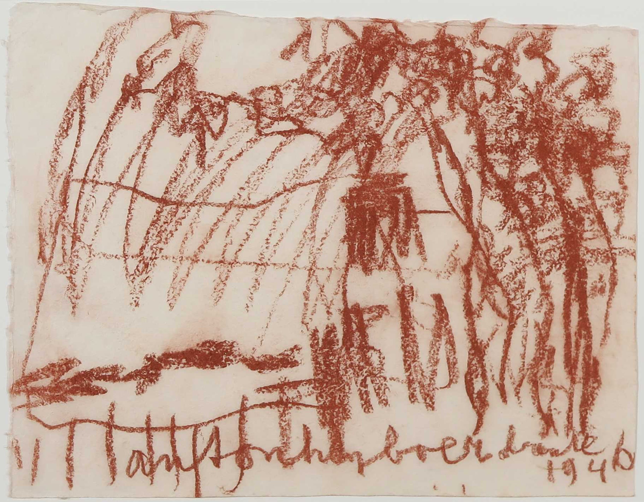 Anton Heyboer - Krijttekening op geschept papier, Drenthe 1946 - Ingelijst - Verkocht
