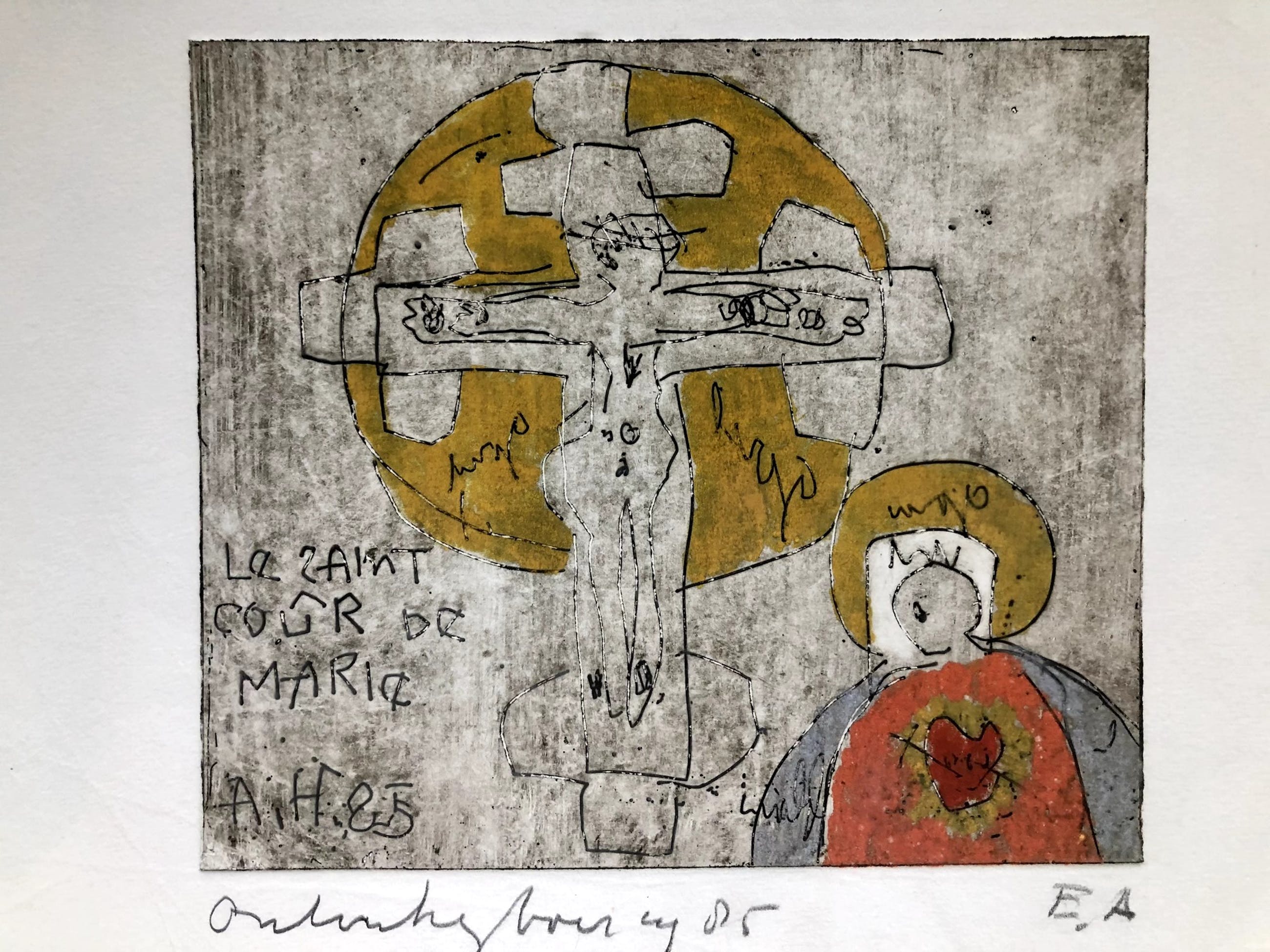 JC 594 Anton Heyboer Kruisiging Ets E.A. 1985 19,5 x 22,5 cm 41,5 x 52 cm