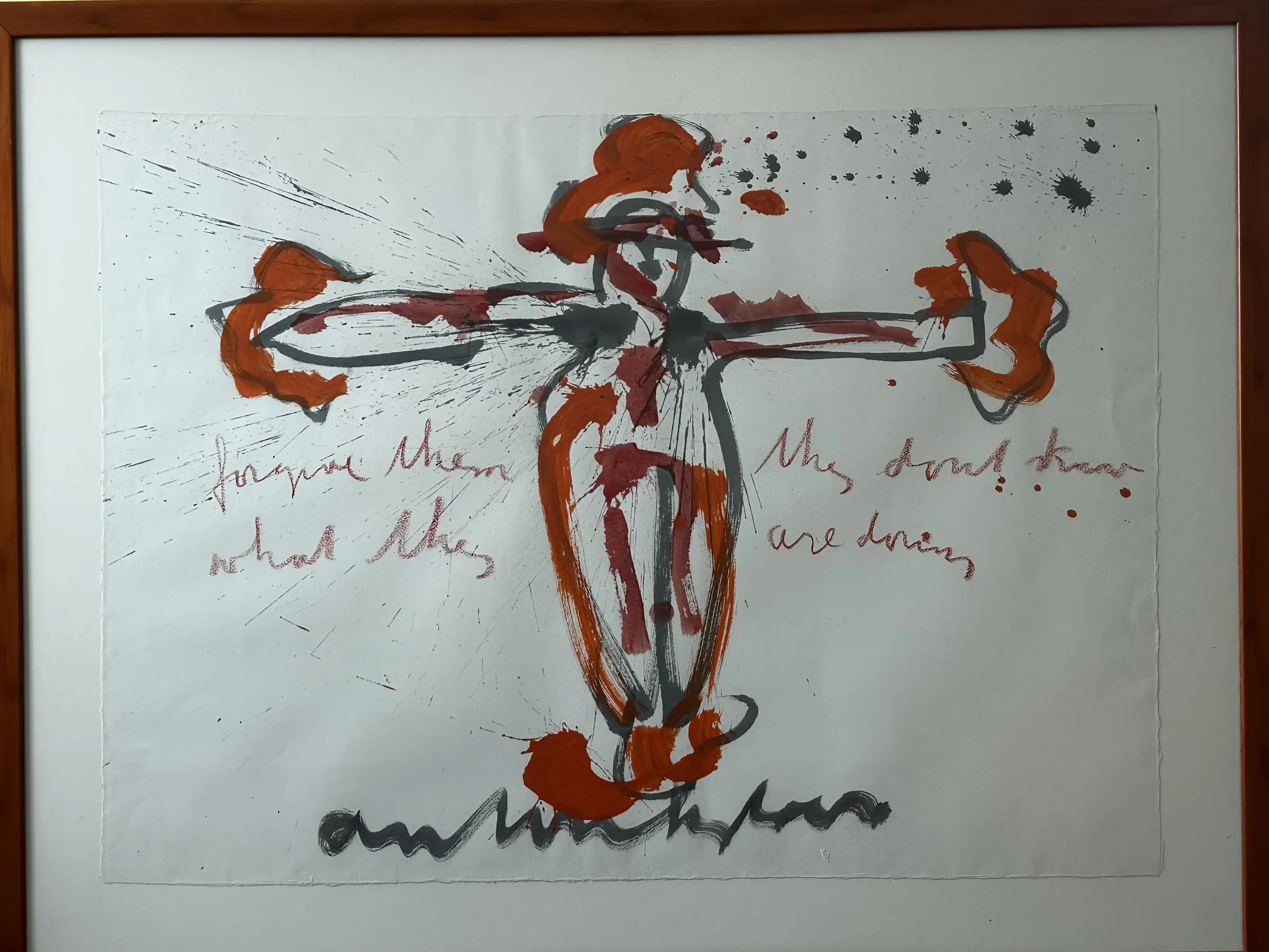 Met Engelse tekst “forgive them, they don’t know what they are doing “