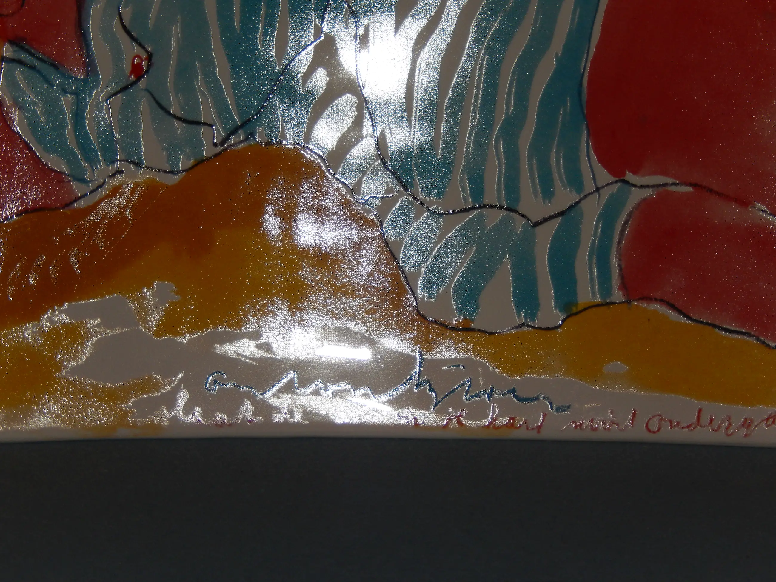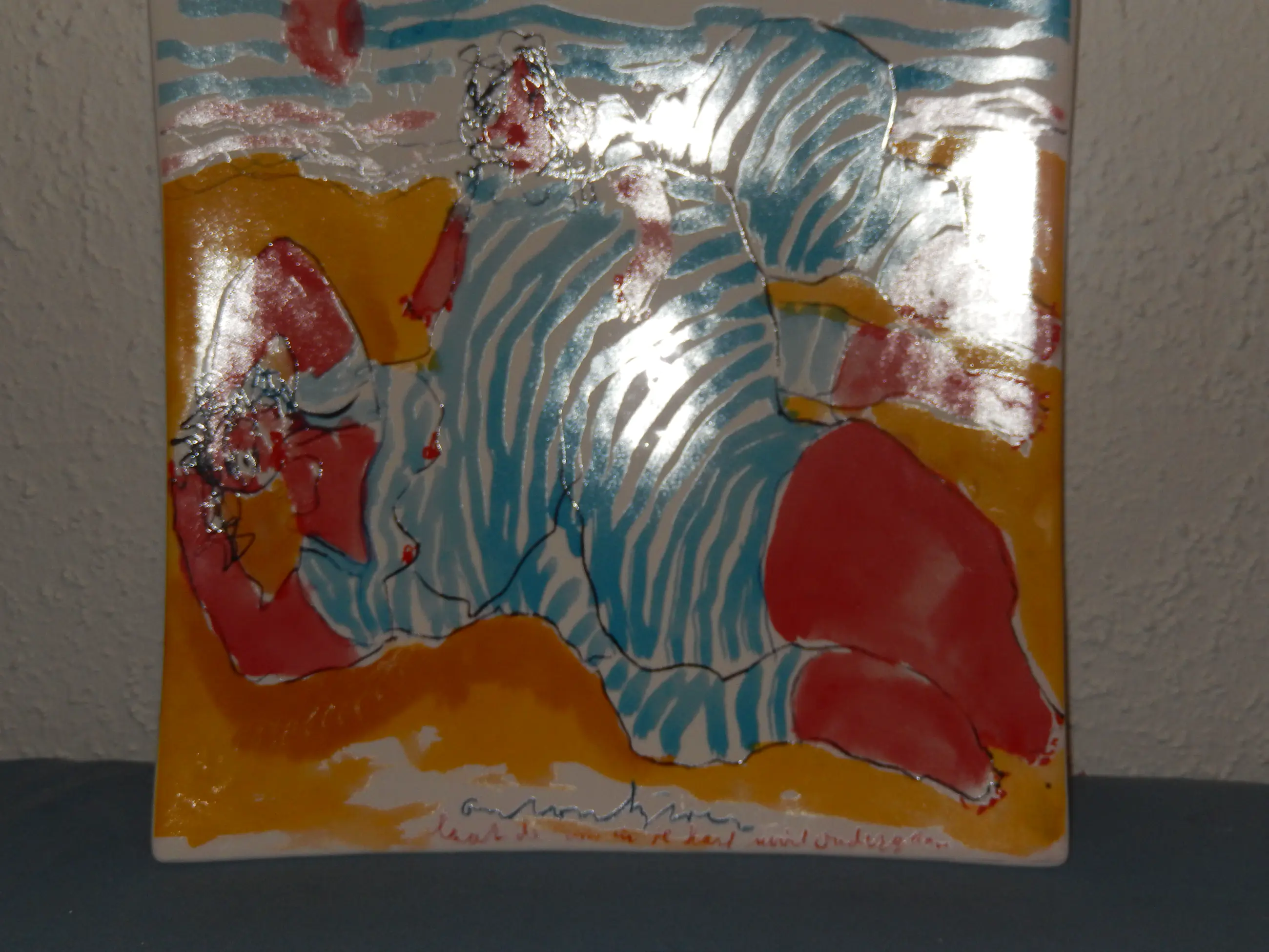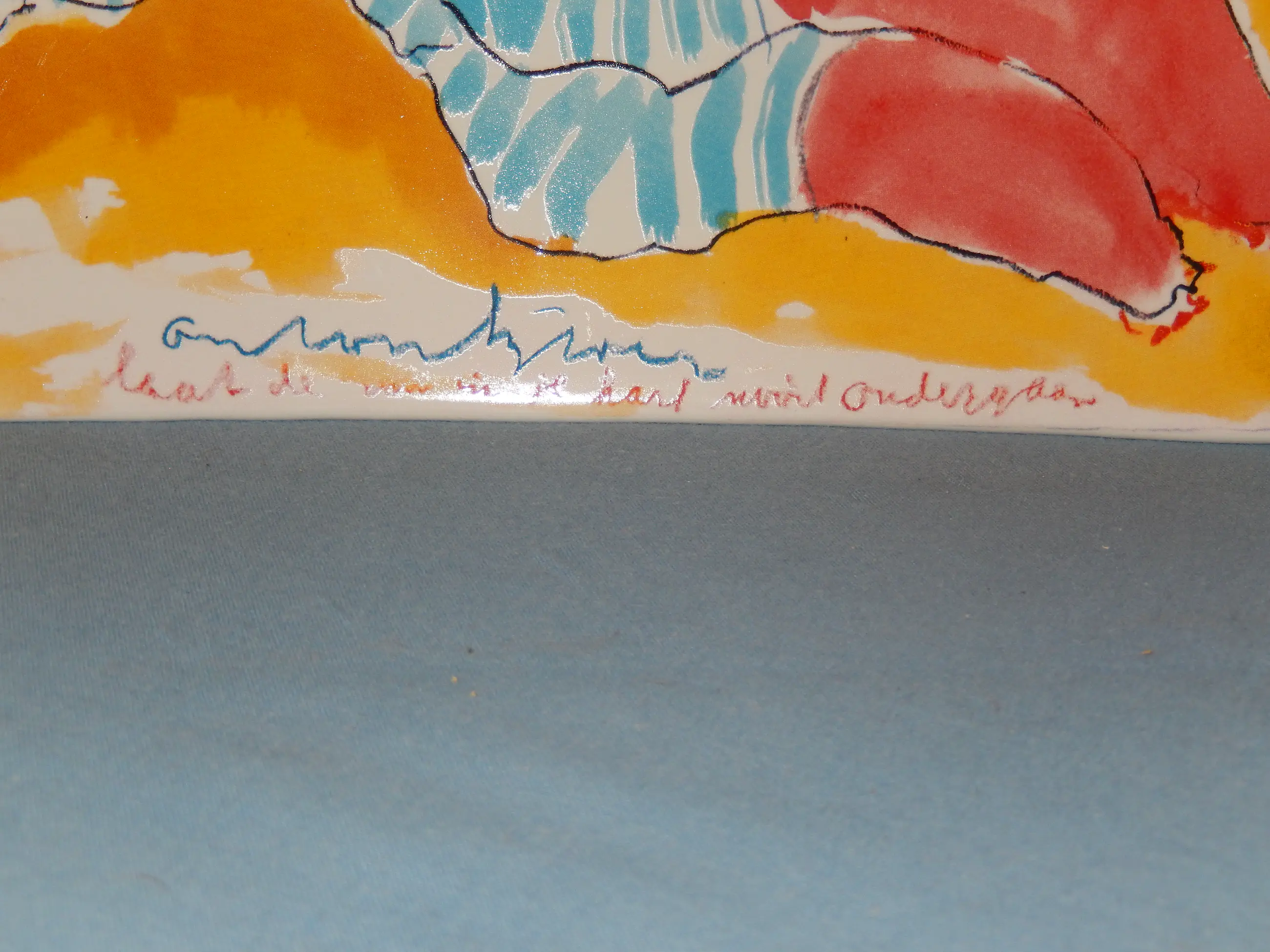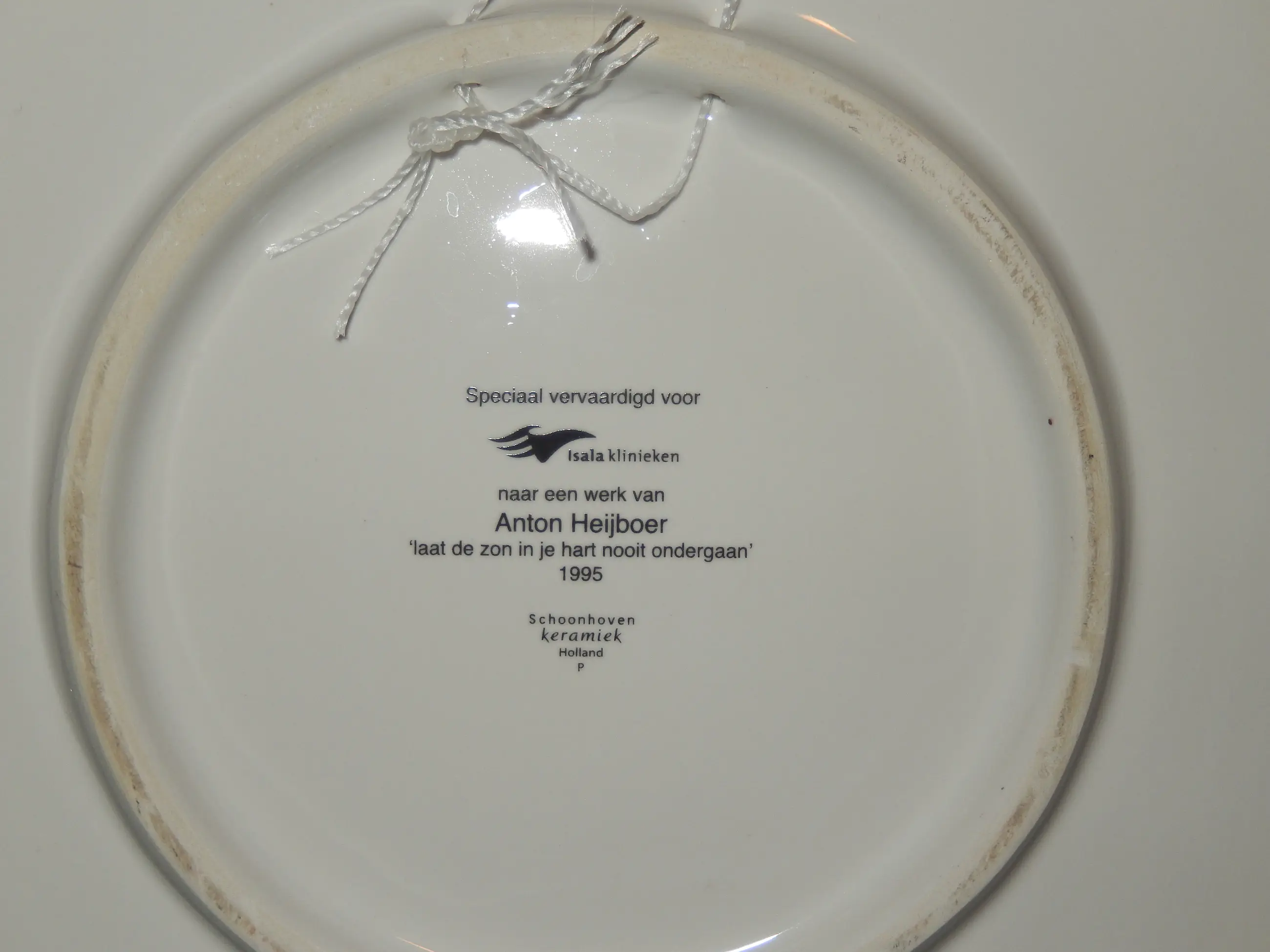 Een wandbord ontworpen door Anton Heijboer, gesigneerd. Vervaardigd door