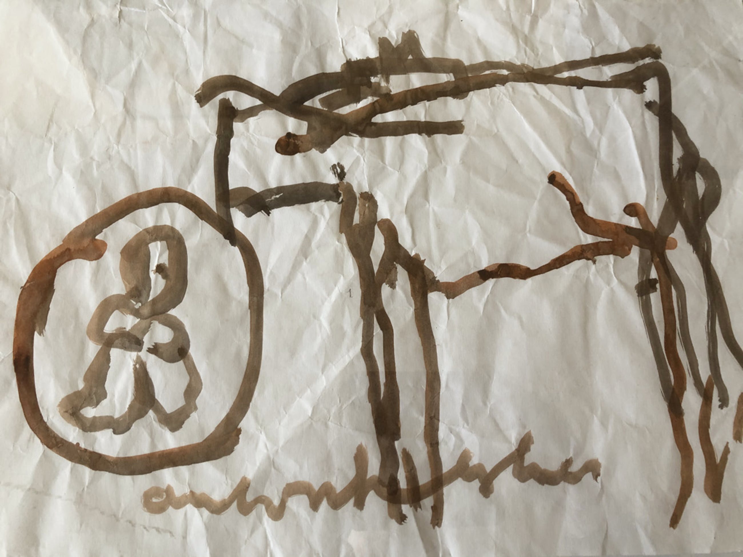 Het papier is gekreukt maat dit is door de kunstenaar zelf zo gedaan.
