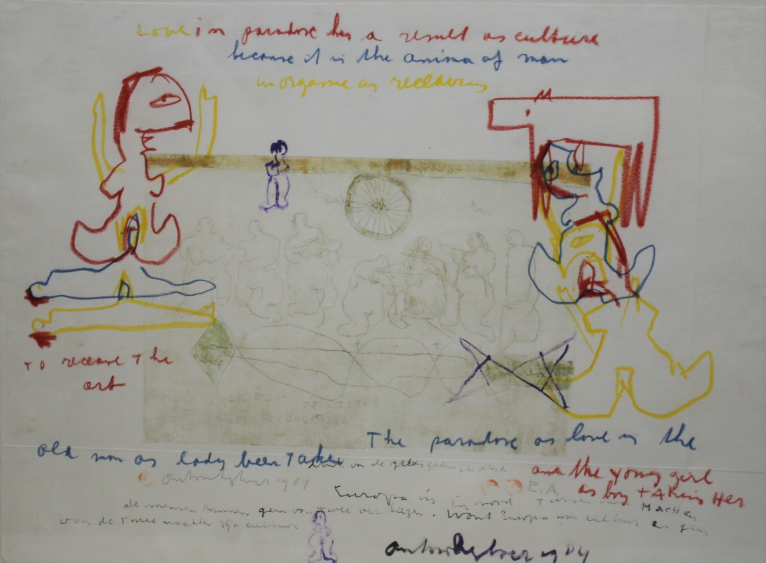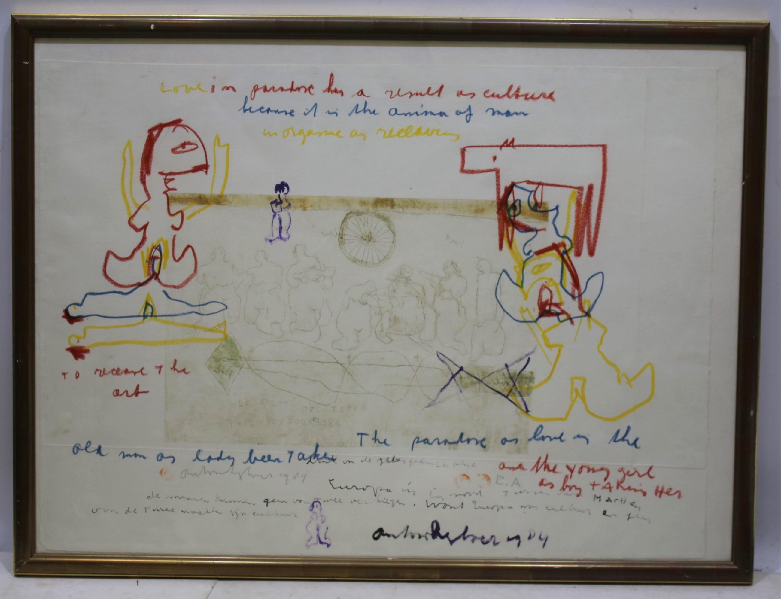 Prachtig groot werk van Heyboer. Gemengde techniek, krijt met een ets. Op geschept papier. Lijst heeft gebruikssporen.