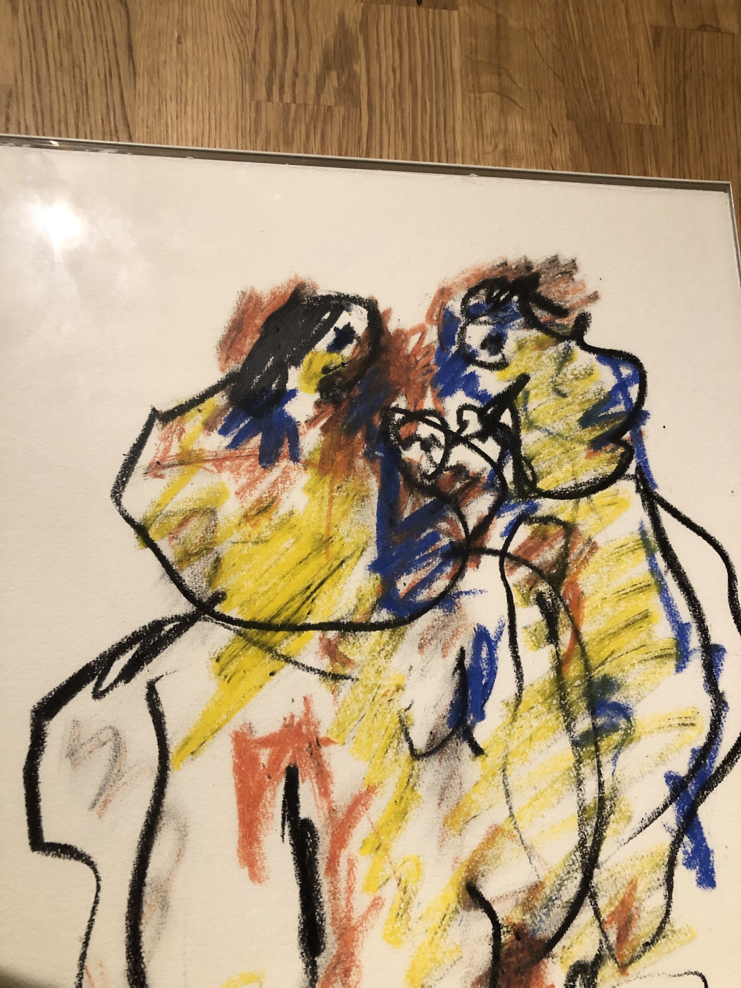 Tekening is op papier met wasco - Moeder en kind In een kunststof frame.