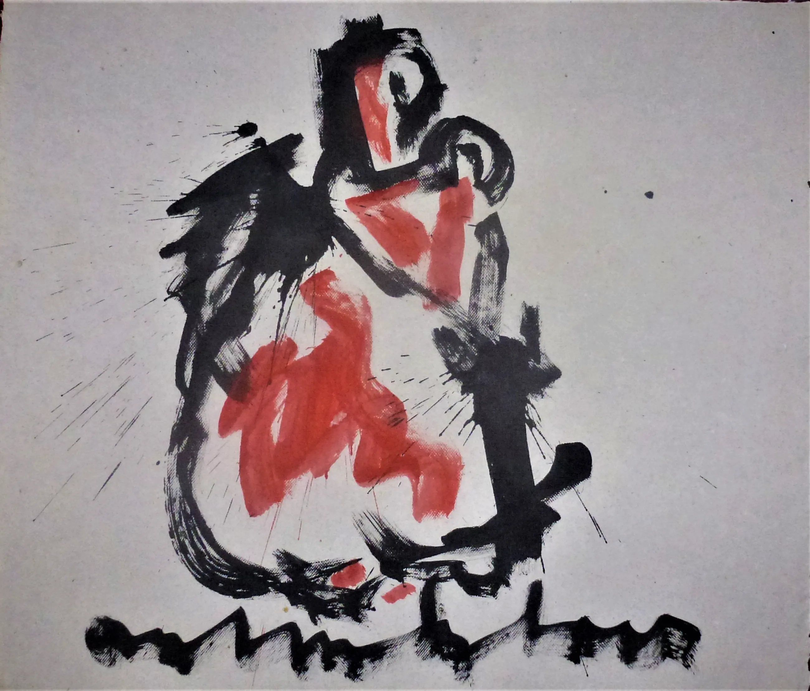 Geschilderd door Anton Heyboer in 1988 met acrylverf en oostindische inkt op hand geschept papier . Papier gemaakt door papiermolen de Schoolmeester te Westzaan van lompen . Afmetingen : 62,5 cm x 72,5 cm . Voorstelling : Moeder en kind De oermoeder Kleurrijke krachtige heldere schildering . Conditie : Zo goed als nieuw . Herkomst : Gekocht in 1988 van Anton Heyboer . Wordt aangetekend verzonden .