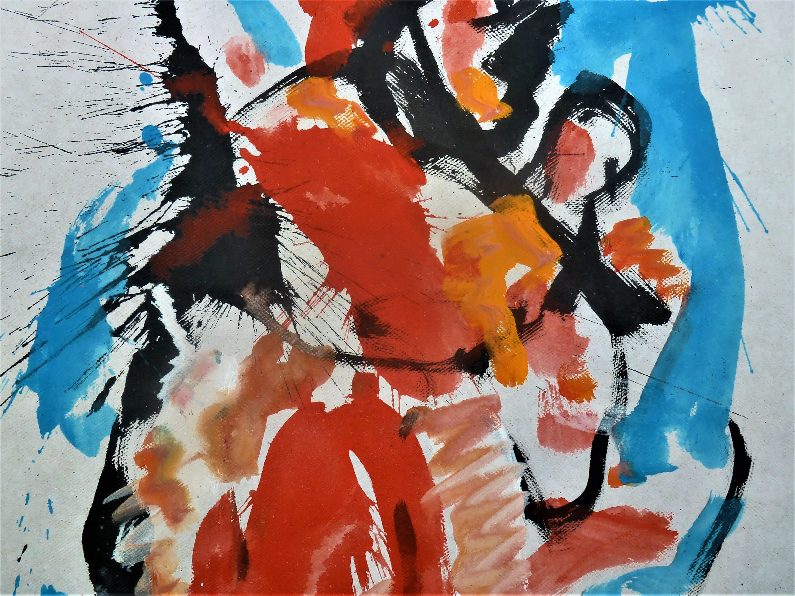 Geschilderd door Anton Heyboer in 1988 met acrylverf en oostindische inkt op hand geschept papier . Papier gemaakt door papiermolen de Schoolmeester te Westzaan van lompen . Afmetingen : 71,5 cm x 62 cm . Voorstelling : Moeder en kind De oermoeder Kleurrijke krachtige heldere schildering . Conditie : Zo goed als nieuw . Herkomst : Gekocht in 1988 van Anton Heyboer . Wordt aangetekend verzonden .