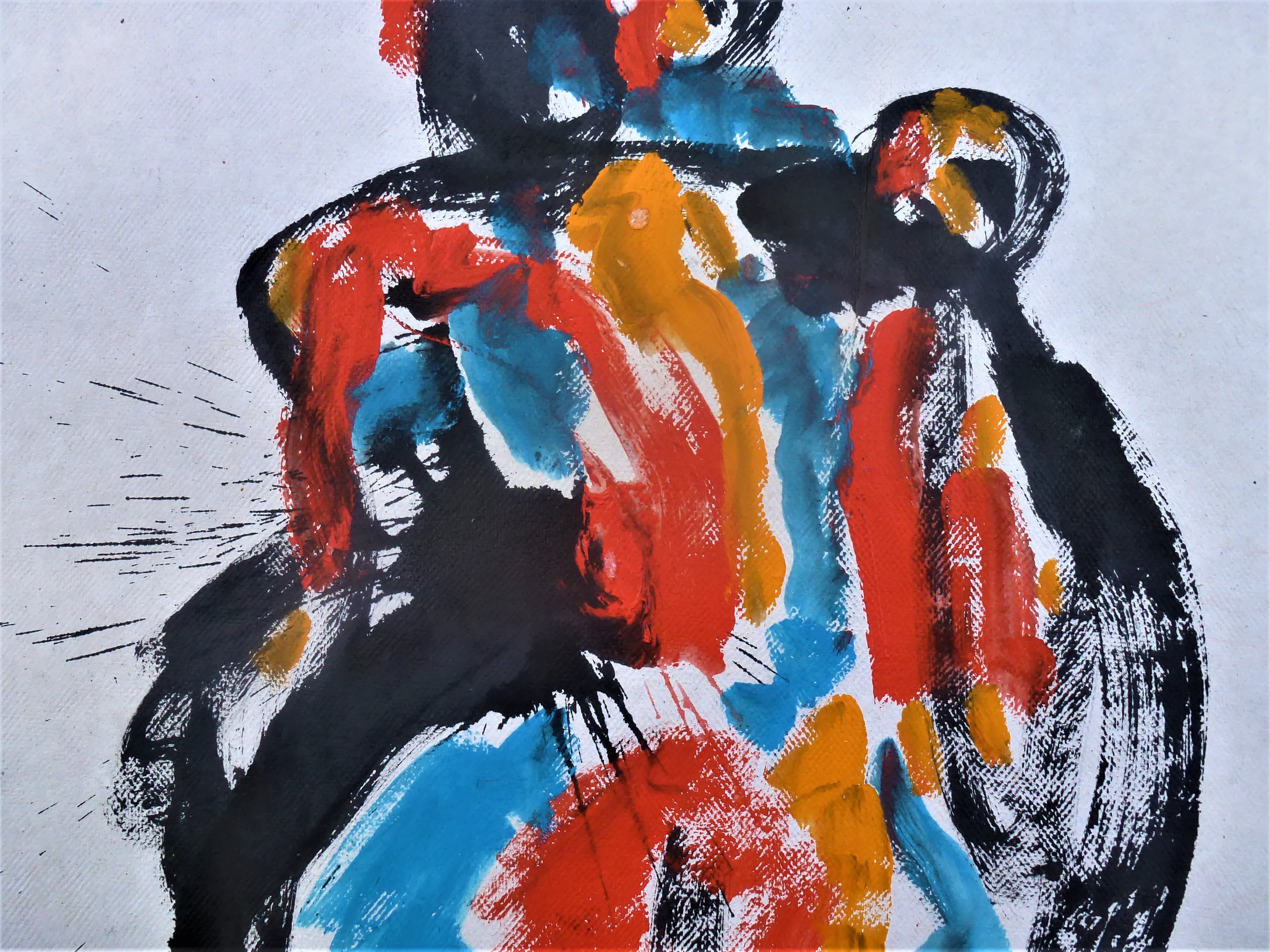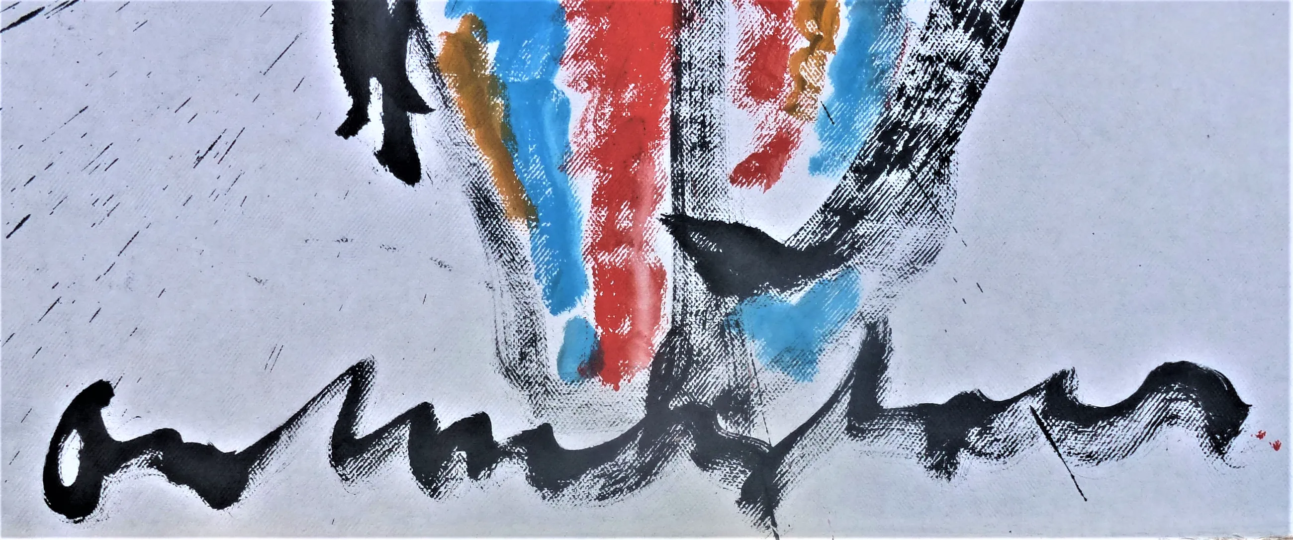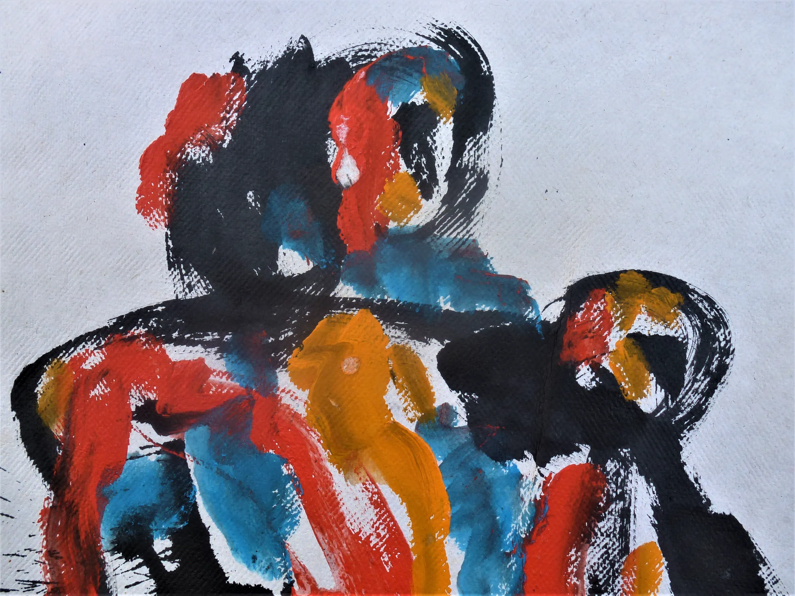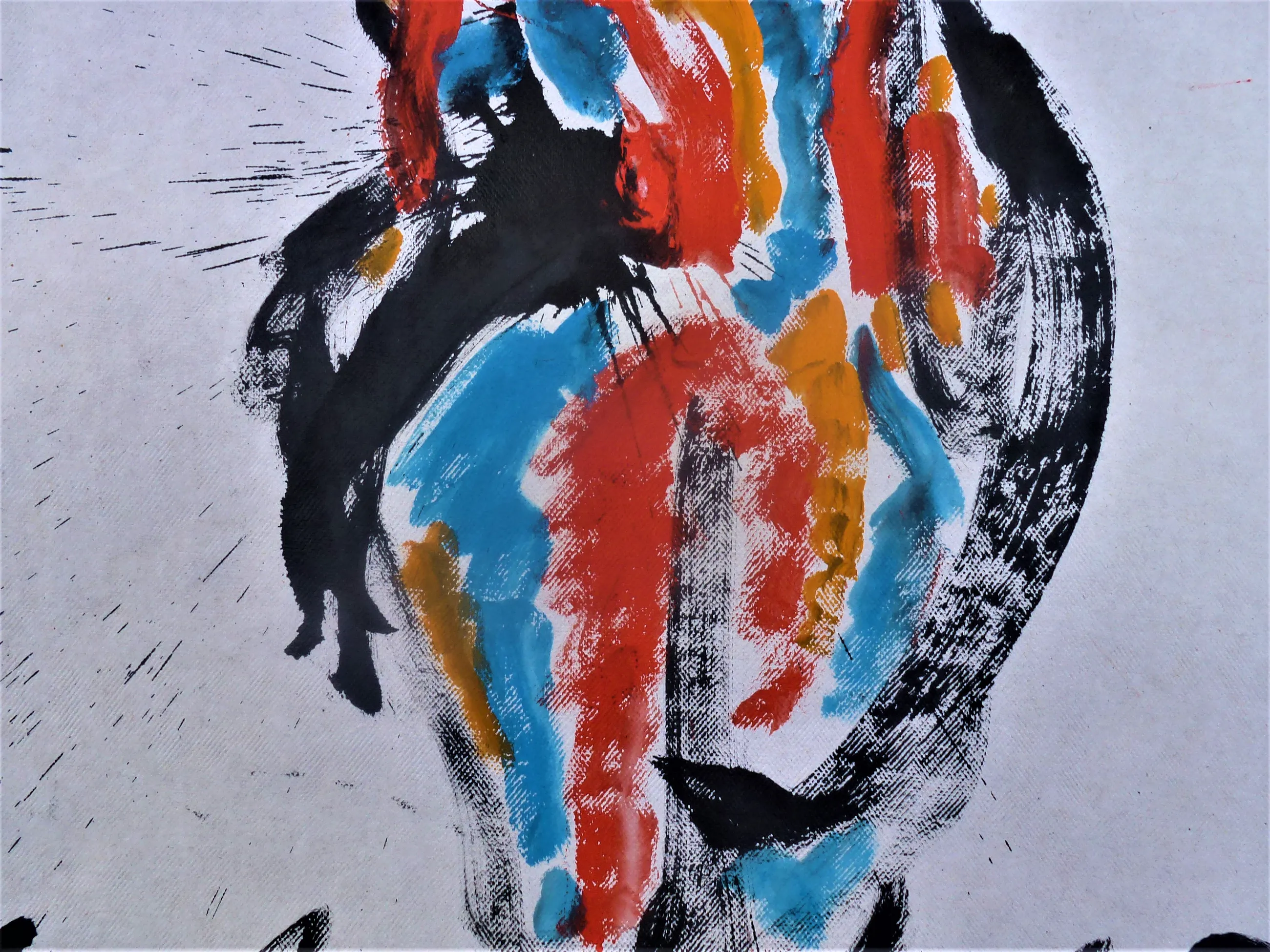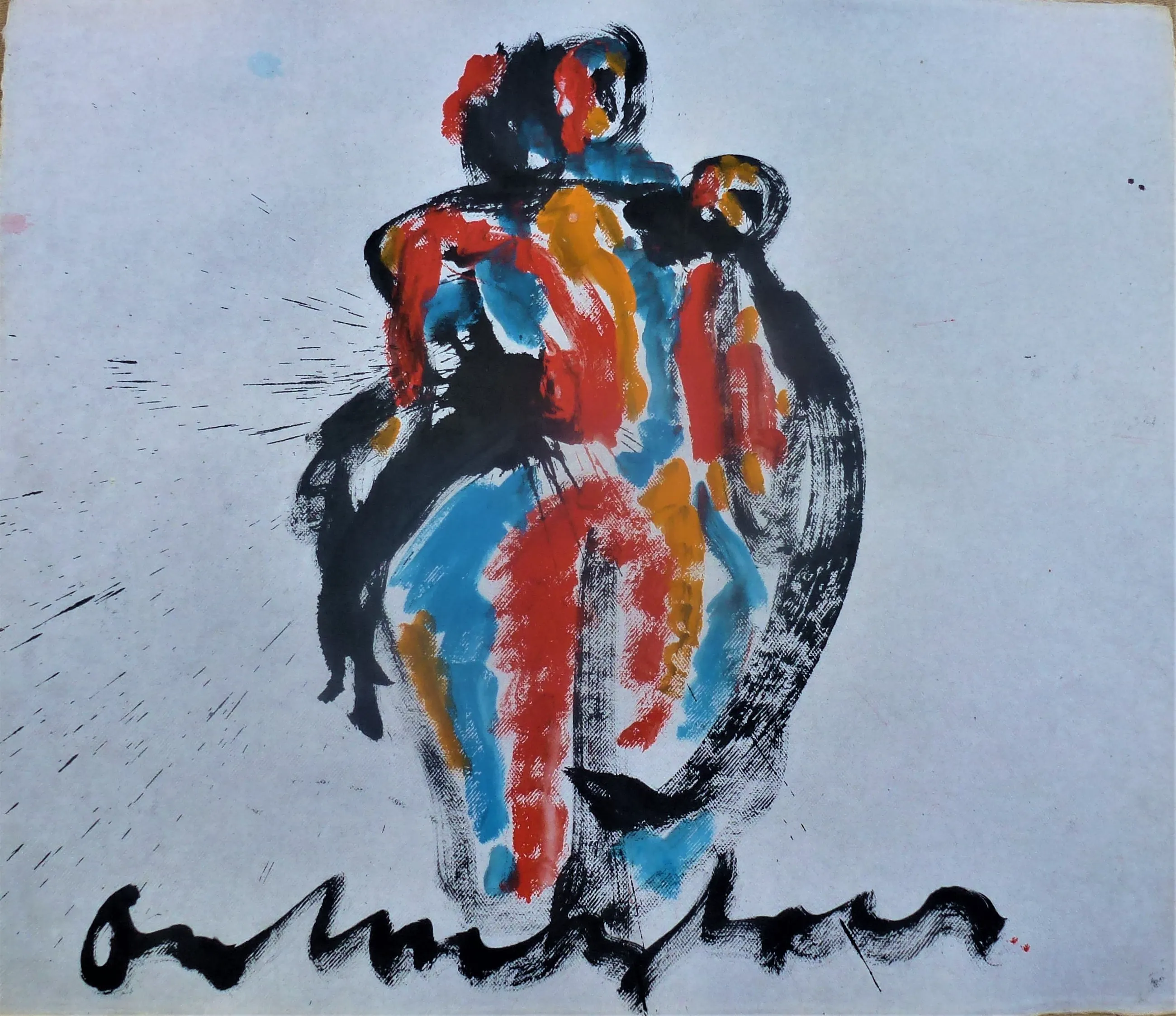 Geschilderd door Anton Heyboer in 1988 met acrylverf en oostindische inkt op hand geschept papier . Papier gemaakt van lompen door papiermolen de Schoolmeester te Westzaan . Afmetingen : 62 cm x 72 cm . Voorstelling : Moeder en kind De oermoeder . Mooie krachtige sierlijke schildering van Anton Heyboer . Conditie : Zo goed als nieuw . Herkmst : Gekocht in 1988 van Anton Heyboer . Wordt aangetekend verzonden .