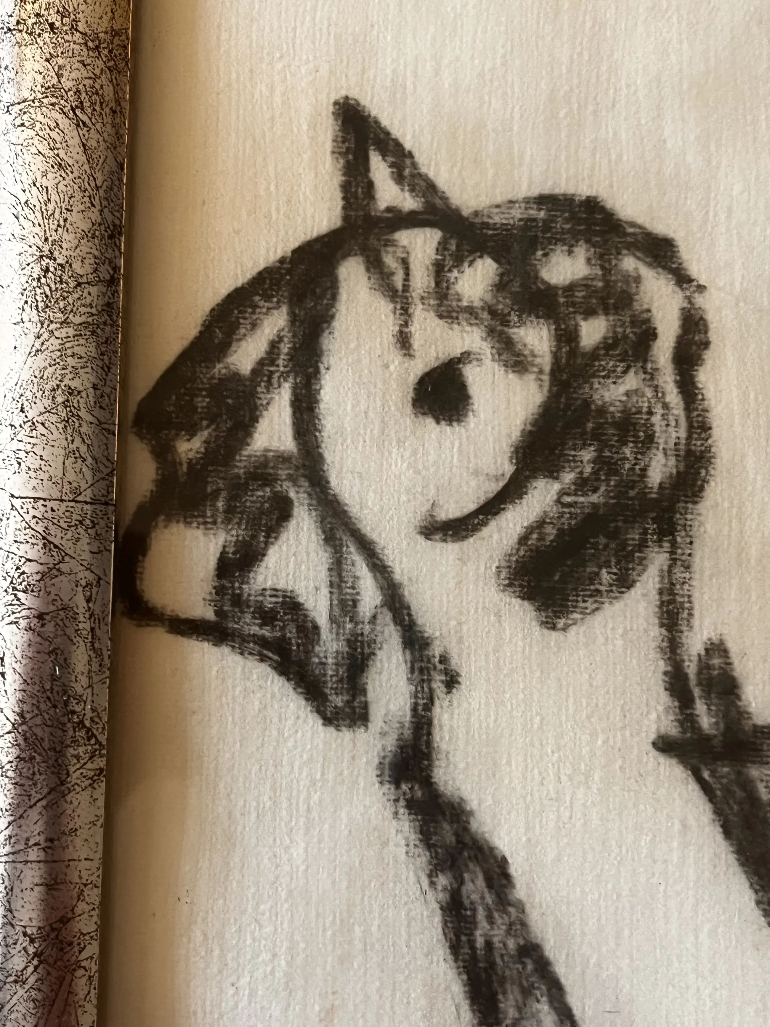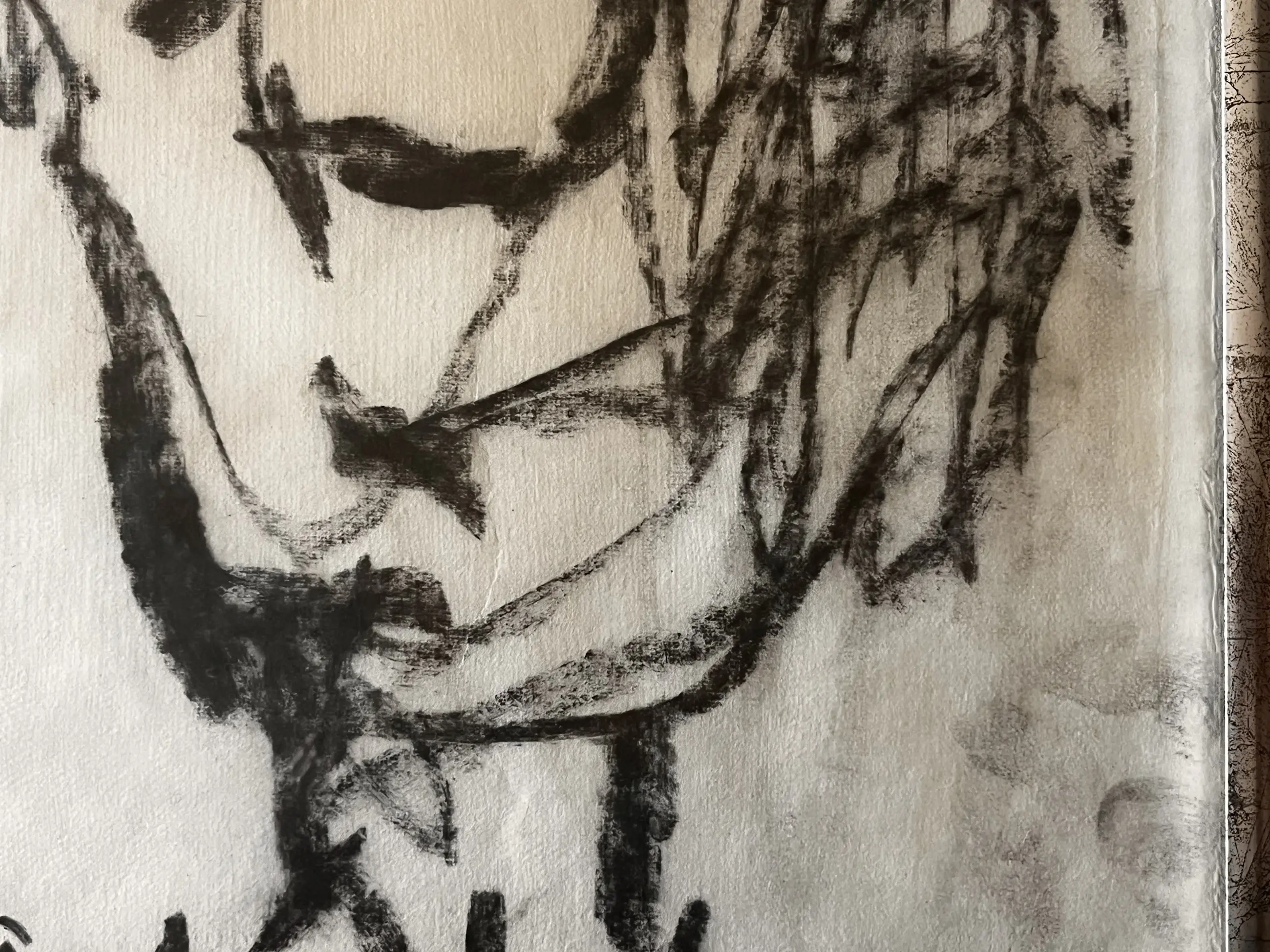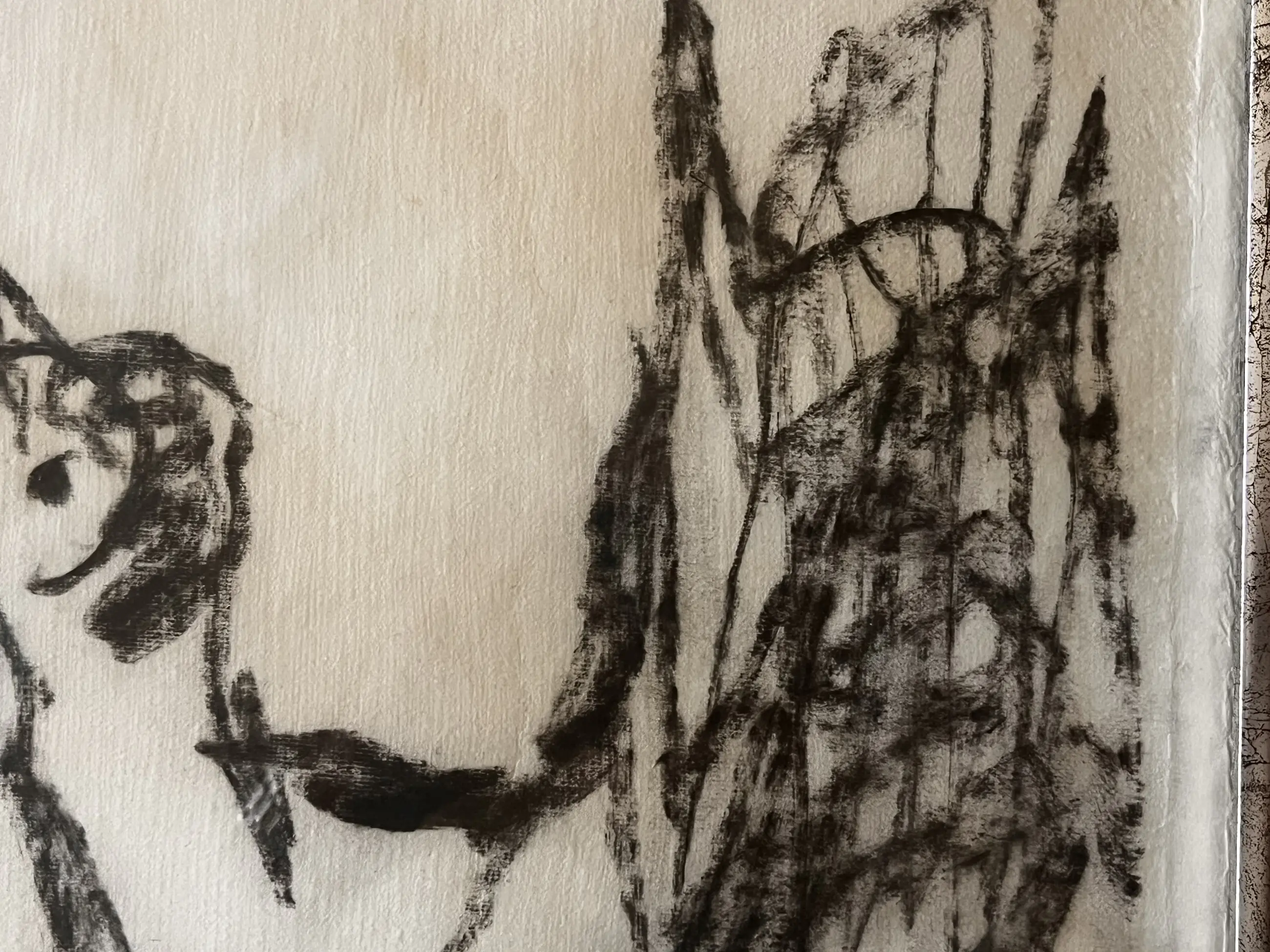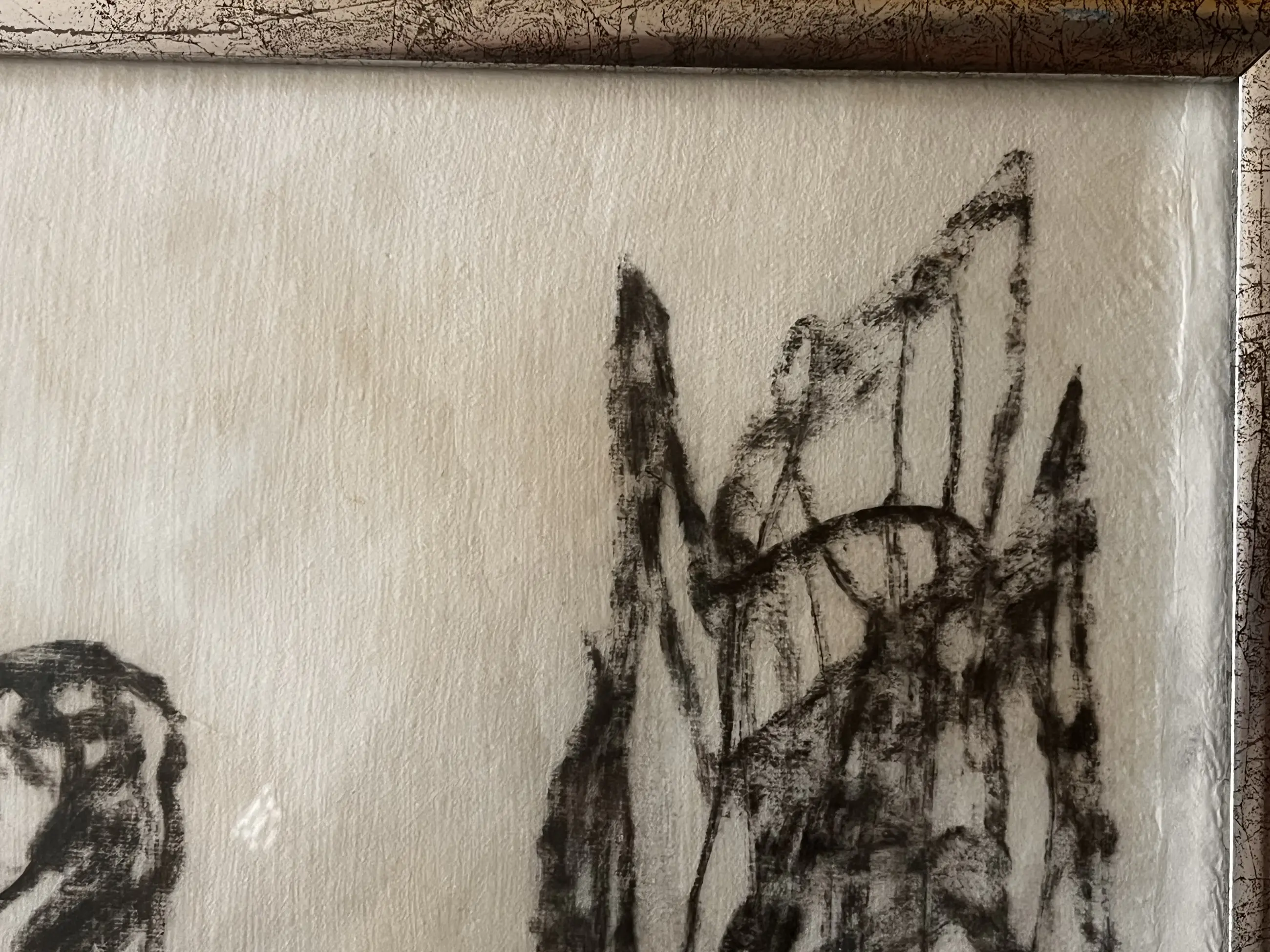 Kijk vooral naar de foto's. Er zitten wat houtskoolvlekken (vingers?) op het papier rechtsonder en een klein ander vlekje linksboven (zie de foto's) Omdat het relatief klein model is van de Oervogel is het startbedrag ook wat lager.