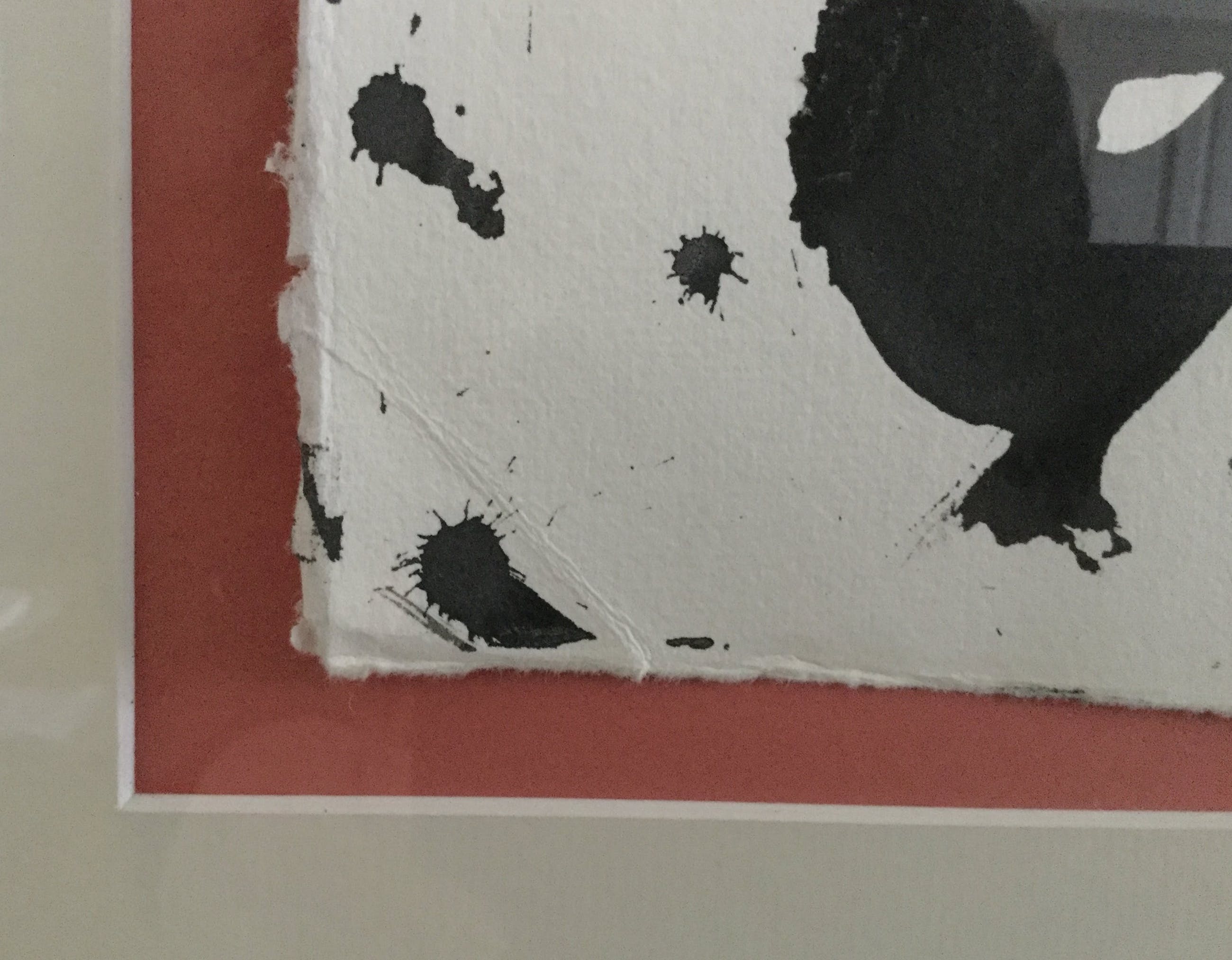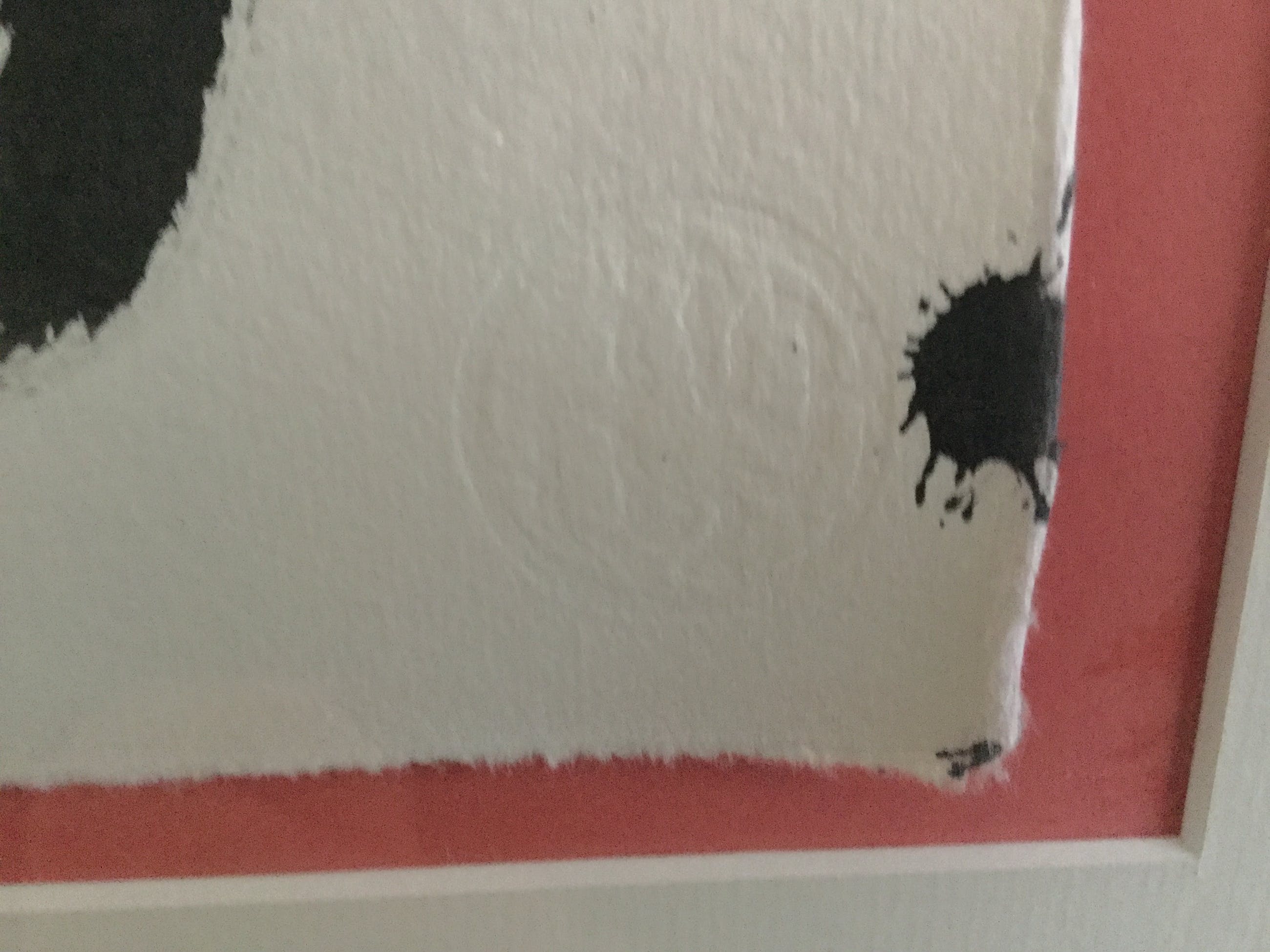Conditie: Zeer goed, ingelijst in prachtige goudkleurige lijst in pars partout op rode achtergrond. De lijst is 5 cm breed en 2 cm dik. Hierdoor een prachtig werk met hoge artistieke waarde.