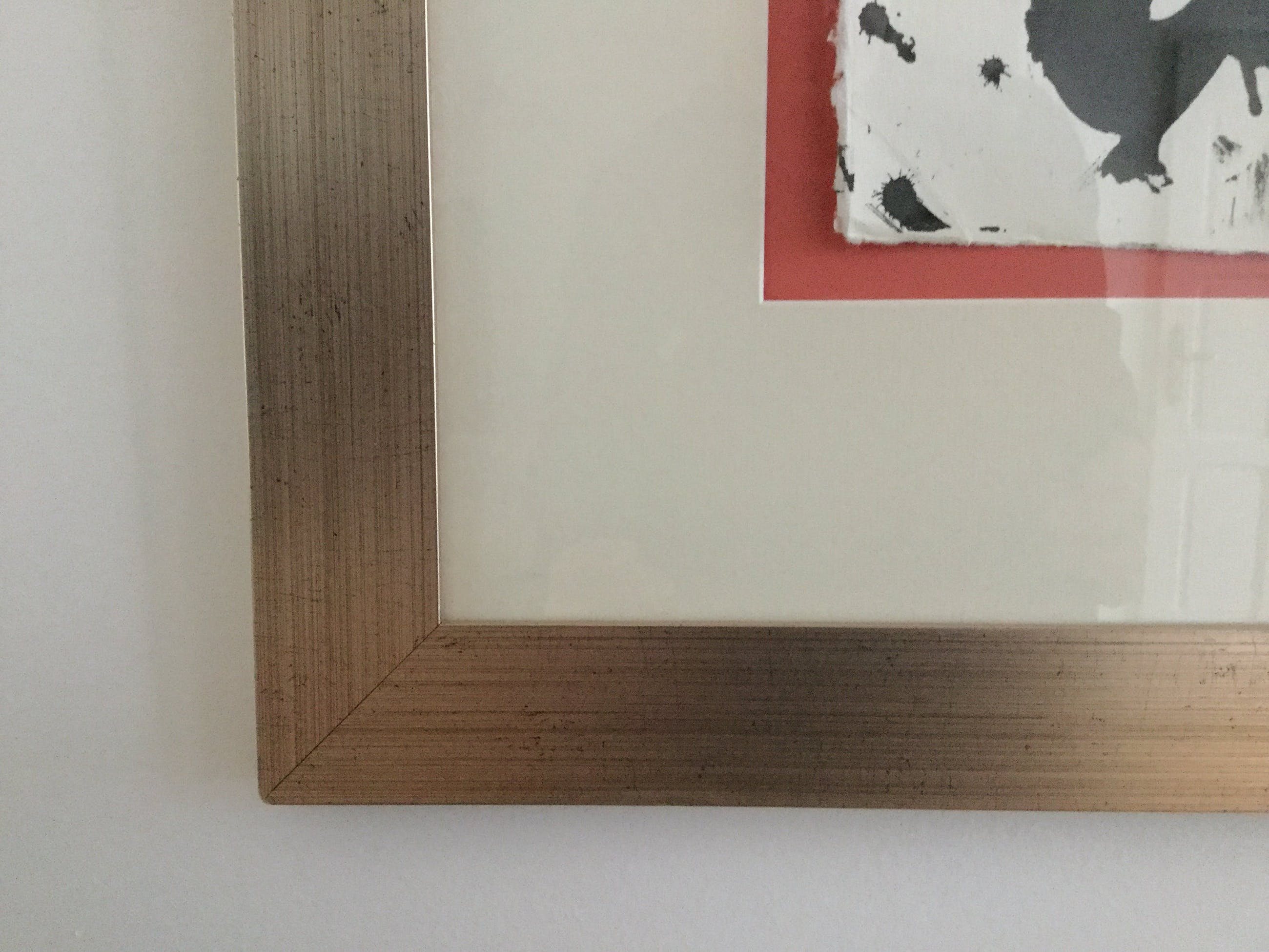 | Zeer goed, ingelijst in prachtige goudkleurige lijst in pars partout op rode achtergrond. De lijst is 5 cm breed en 2 cm dik. Hierdoor een prachtig werk met hoge artistieke waarde. | |