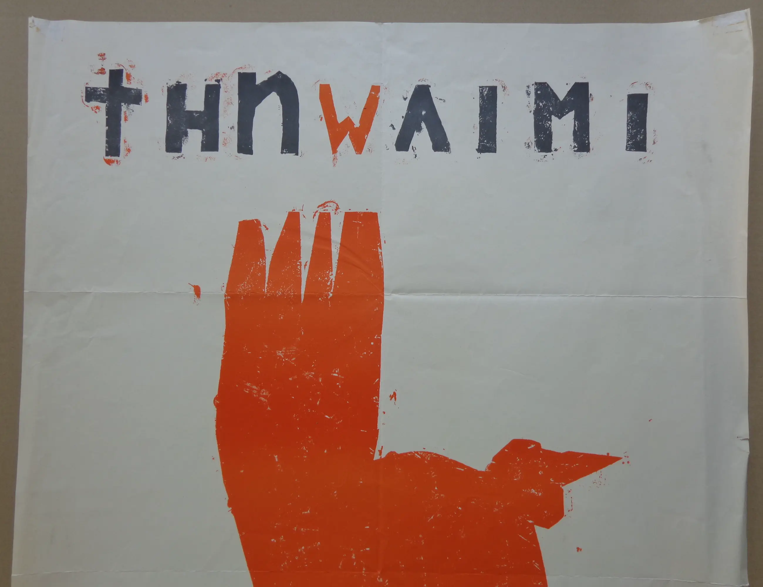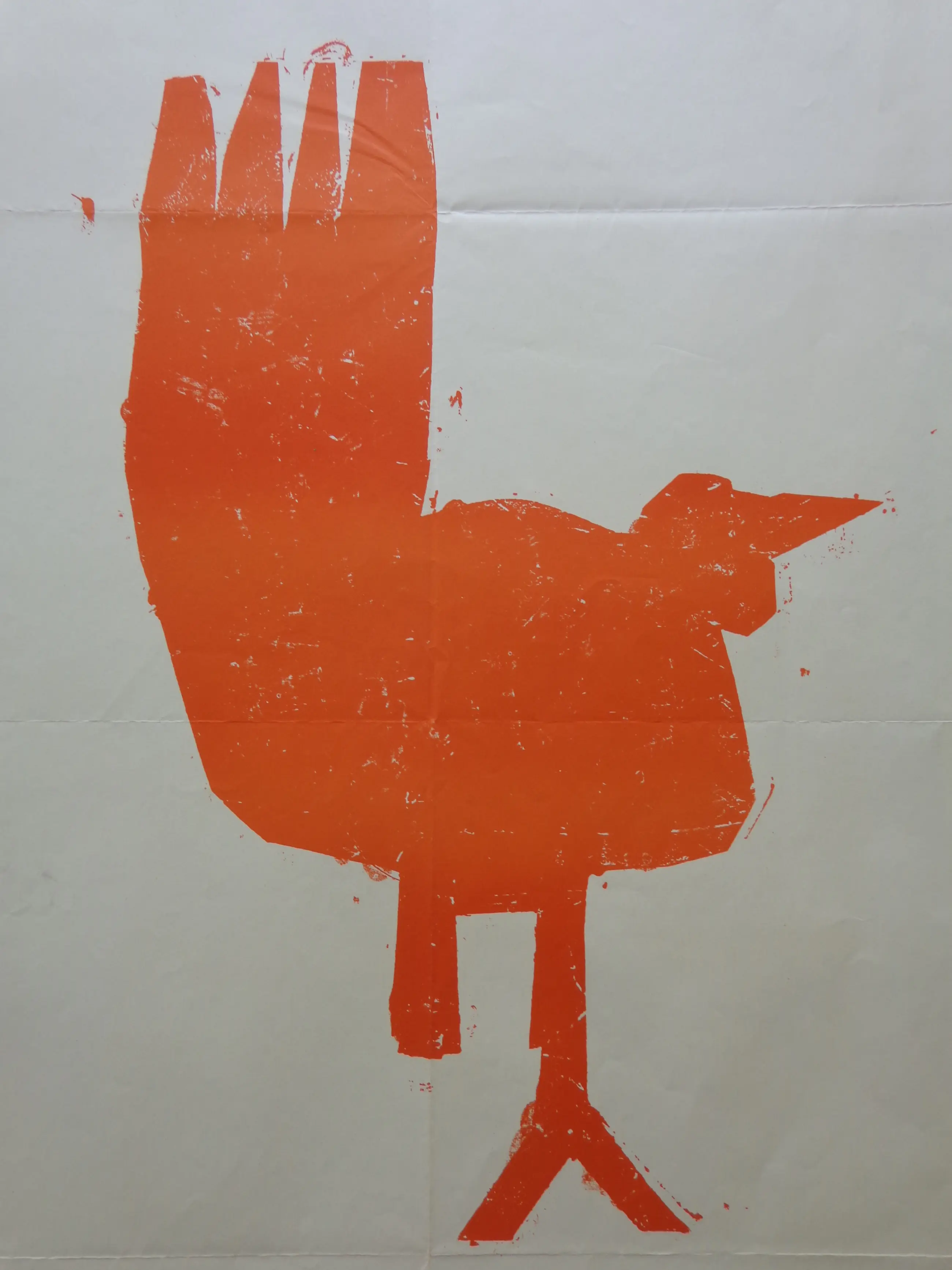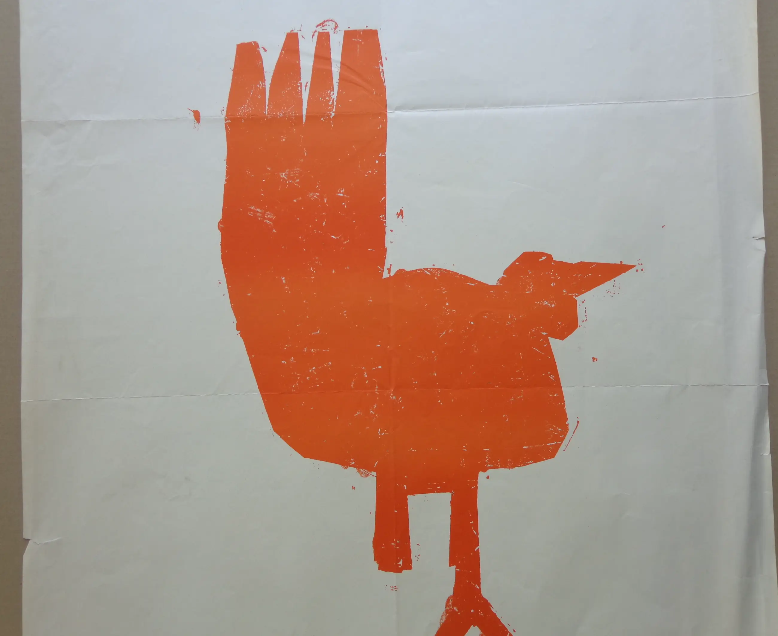 Anton Heyboer (1924-2005). Oranje vogel. Kleurzeefdruk op papier. Affiche. Niet gesigneerd. Niet genummerd. Boorden slechte staat. Conditie C-. Mechanische 8-vouw. Afmetingen: 90x65cm.