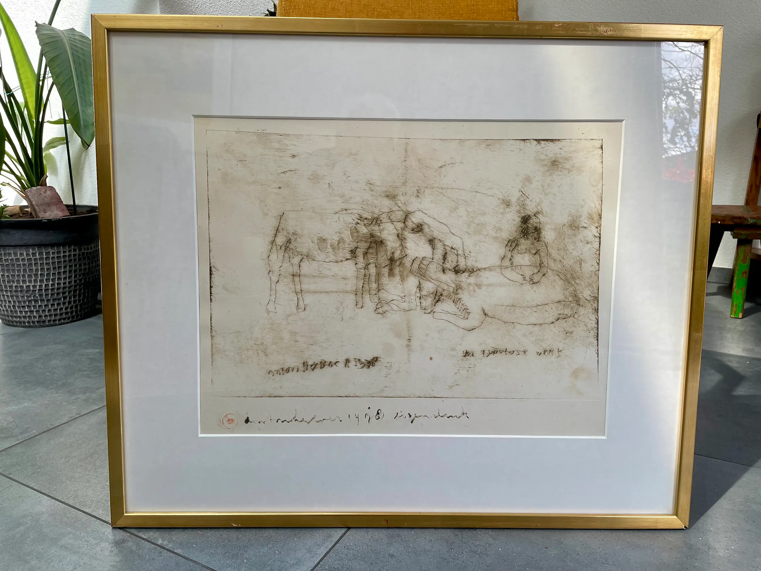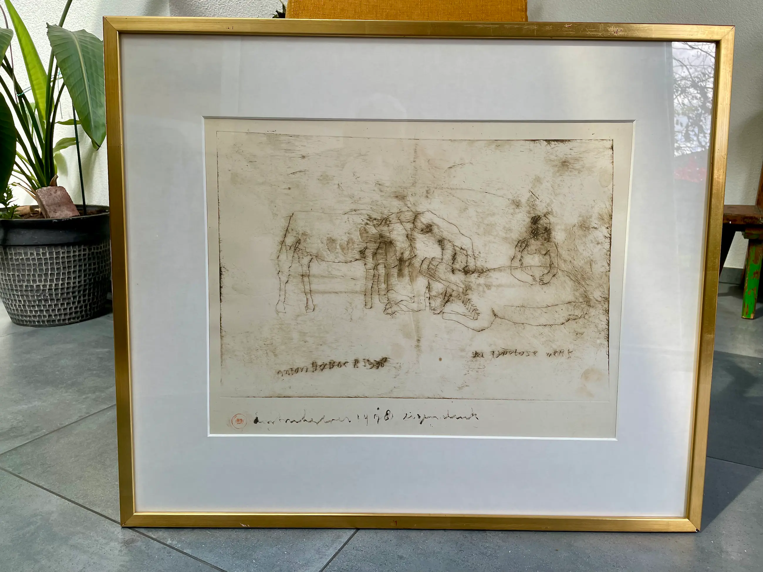 Omschrijving Mooie ingelijste ets door Anton Heyboer