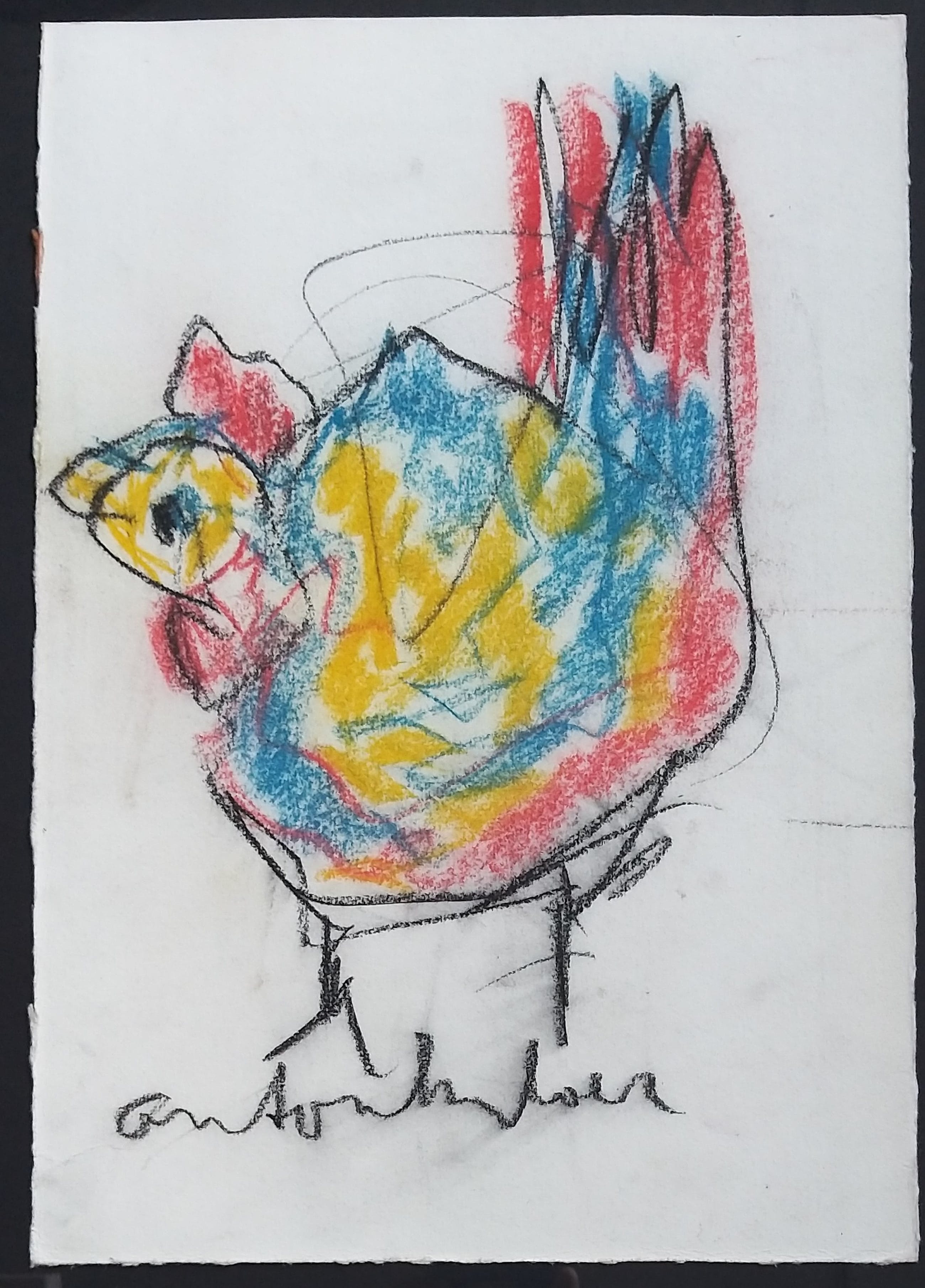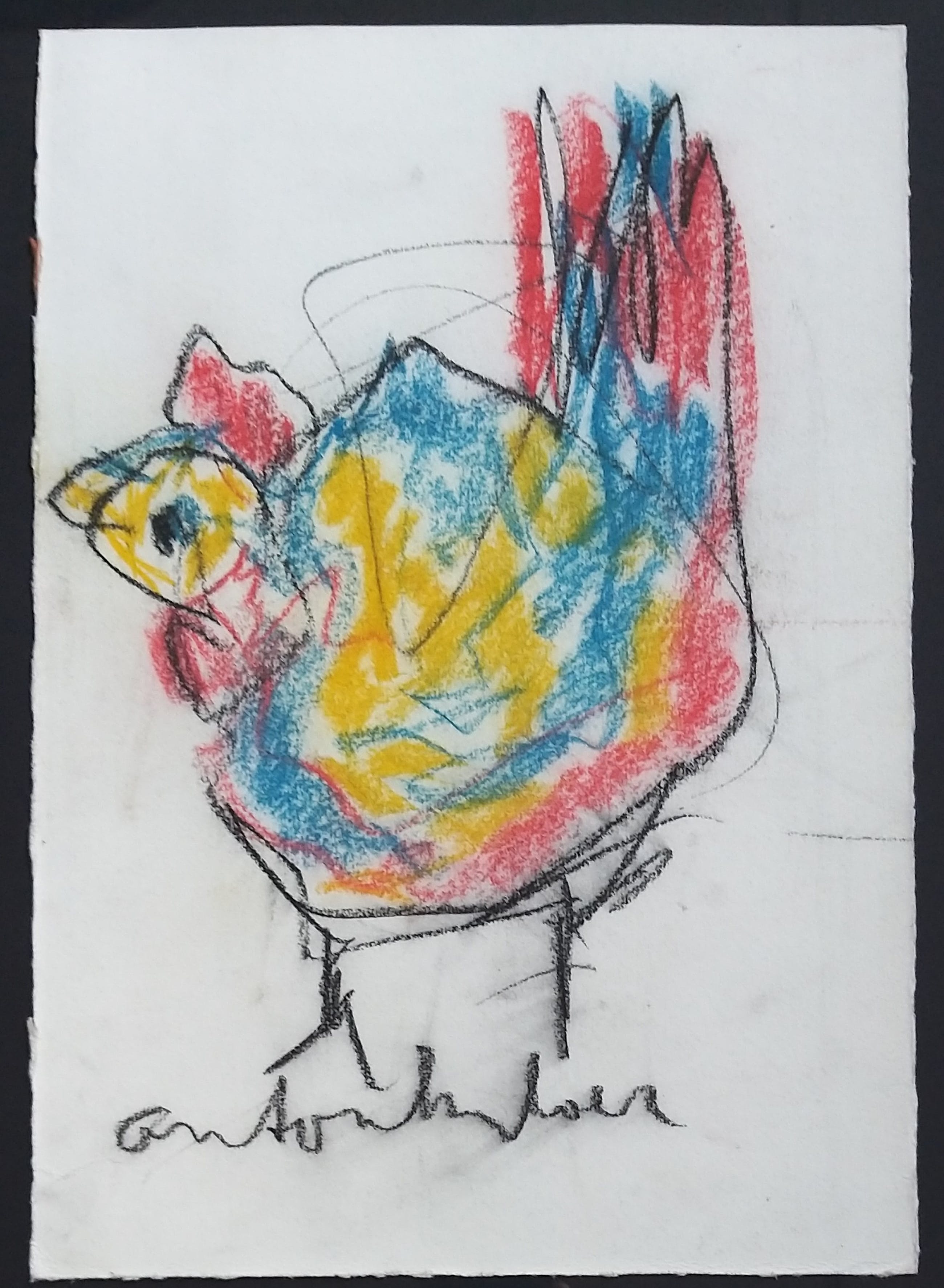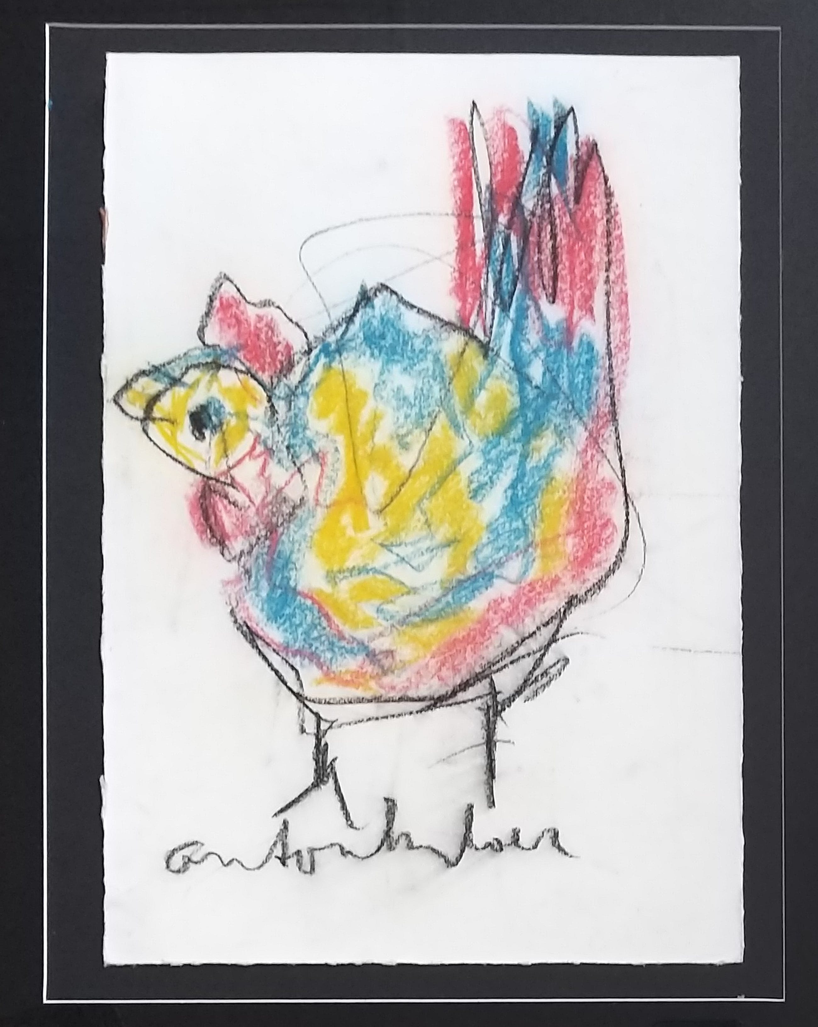 Anton Heyboer KippetjePastel op papier van een kippetjeMidden onder gesigneerd en mooi ingekaderd onder zuurvrij passepartoutAfmeting 37x25 cm