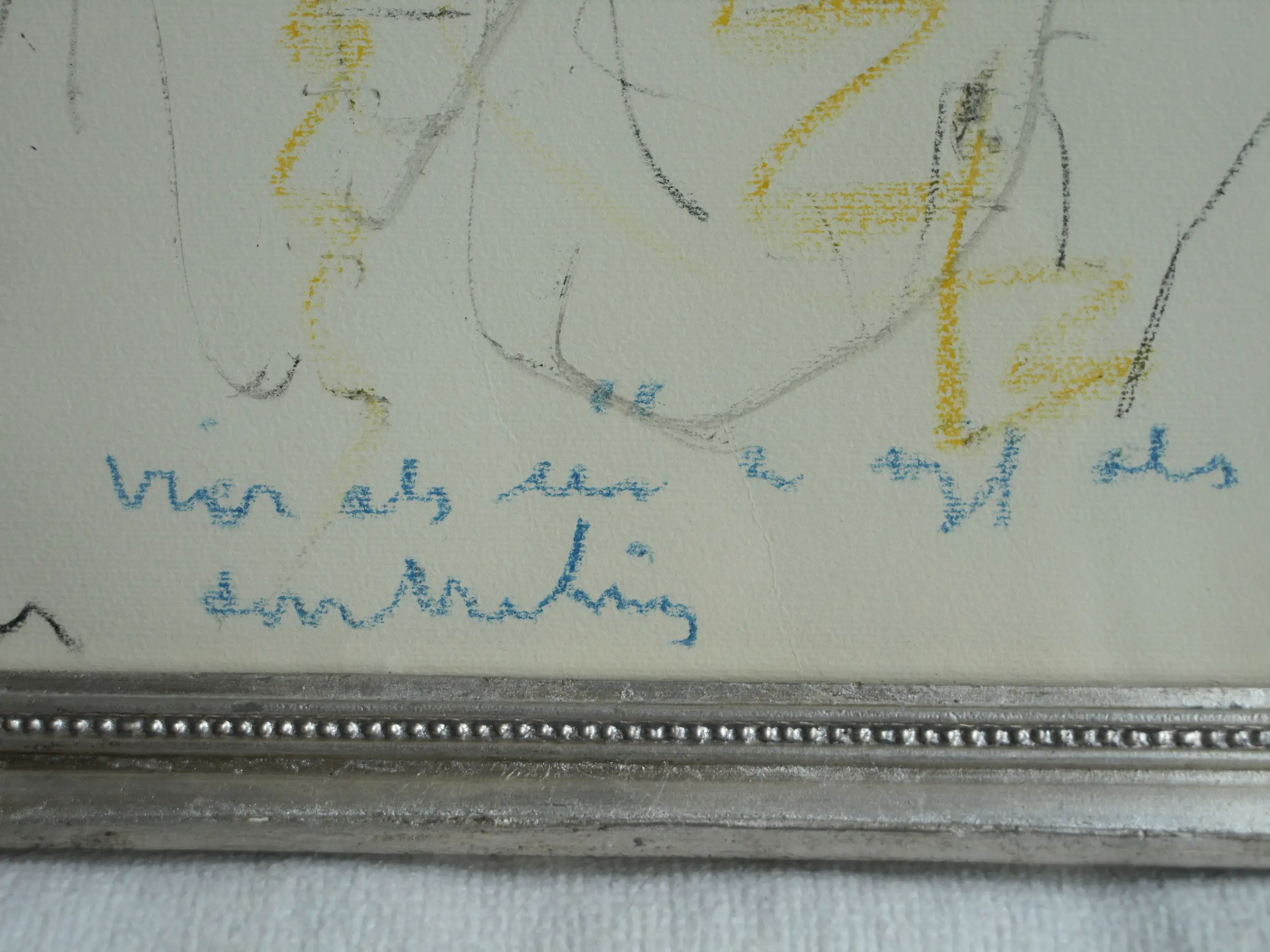 Een ingelijst werk uit ca. 1985 van de Nederlandse kunstenaar Anton Heyboer (1924-2005). -Gemengde techniek van pastelkrijt en acrylverf. -Gesigneerd middenonder. -Ingelijst in een houten lijst met passe-partout en glasplaat. -Afmetingen: Lijst, 55 x 75 cm. Beeld, 48 x 68,5 cm. -Herkomst: Uit een nalatenschap. Het werk is destijds verkregen via de kunstenaar. -Conditie: Het werk is in zeer goede staat. De houten lijst heeft slijtplekjes. Zie ook alle foto’s voor een eigen indruk. Kan zo aan de muur.